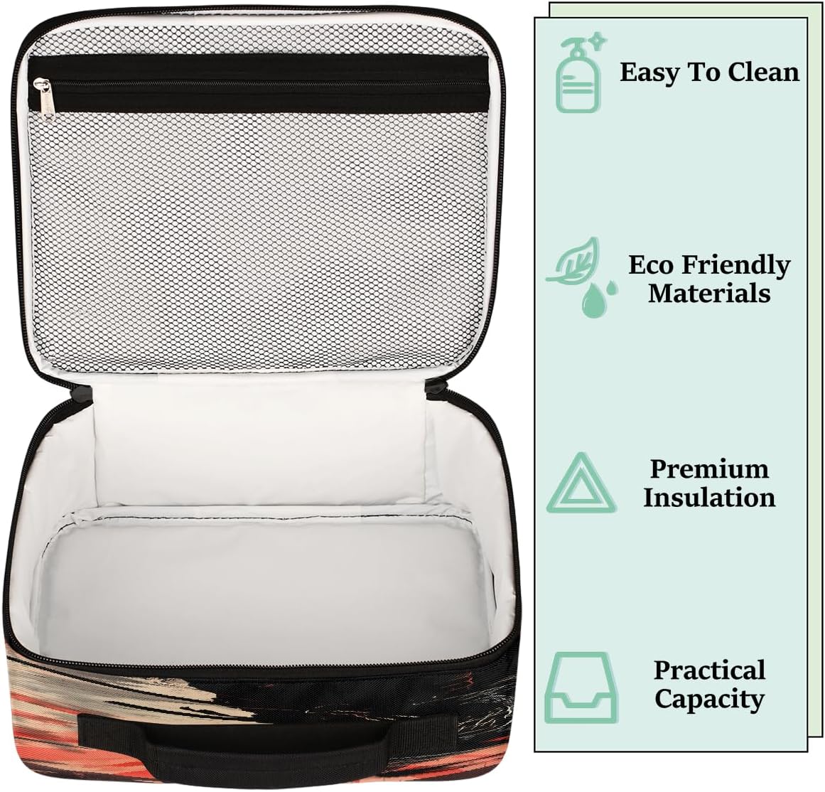 ✿ Dimensioni della borsa portapranzo: 21 x 10 x 26 cm, si adatta perfettamente al tuo portapranzo, frutta, snack e persino bottiglia per frullati proteici ✿ Materiale del contenitore per il pranzo isolato: la borsa per il pranzo riutilizzabile è realizzata in poliestere altamente resistente, facile da pulire, mantiene il cibo o le bevande fresche, calde o fredde per diverse ore, a prova di perdite per l'uso quotidiano Grande capacità: 1 tasca principale con cerniera per riporre facilmente molte cose, come bevande, snack, panini, frutta o verdura; 1 tasca frontale esterna con cerniera per riporre caramelle, chiavi, telefono e altri piccoli oggetti da portare in ufficio, escursioni, viaggi, feste ✿ Piume: la nostra borsa per il pranzo ha 1 tasca principale con cerniera per mantenere cibi e bevande caldi o freschi, 1 grande tasca frontale per chiavi, carte, telefoni e così via. È molto facile da portare ovunque come viaggi, spiaggia e sport; è facile da trasportare, a tracolla, inoltre, la tracolla può essere rimossa e trasformata in una borsa portatile per i pasti ✿ Regalo perfetto: motivi unici, regali unici, ideali per gli amici durante il festival, come compleanno, Natale, giorno della scuola