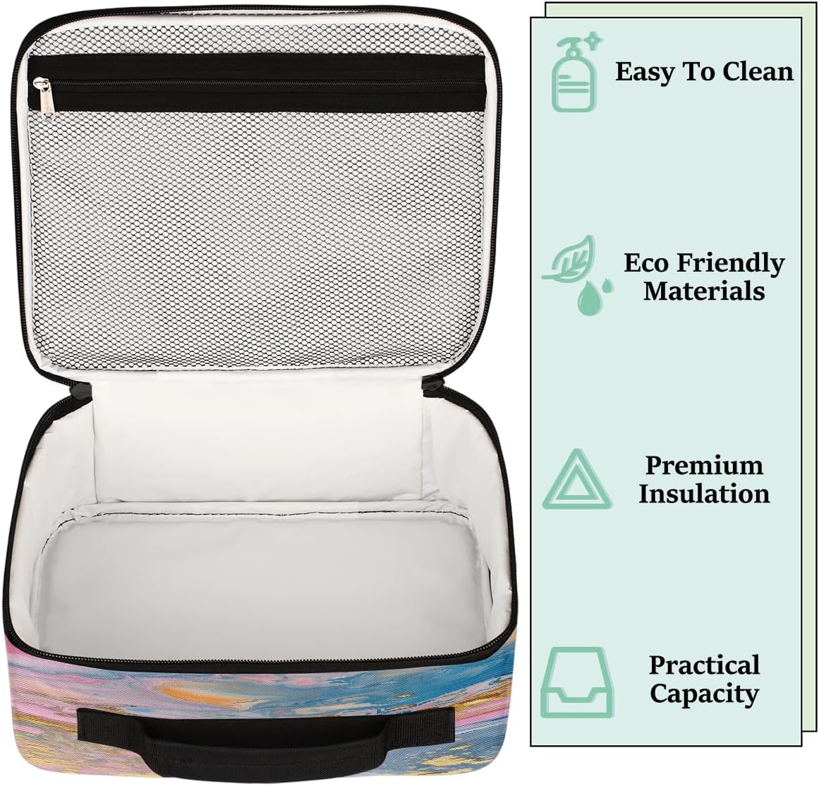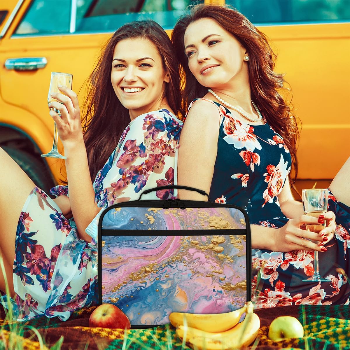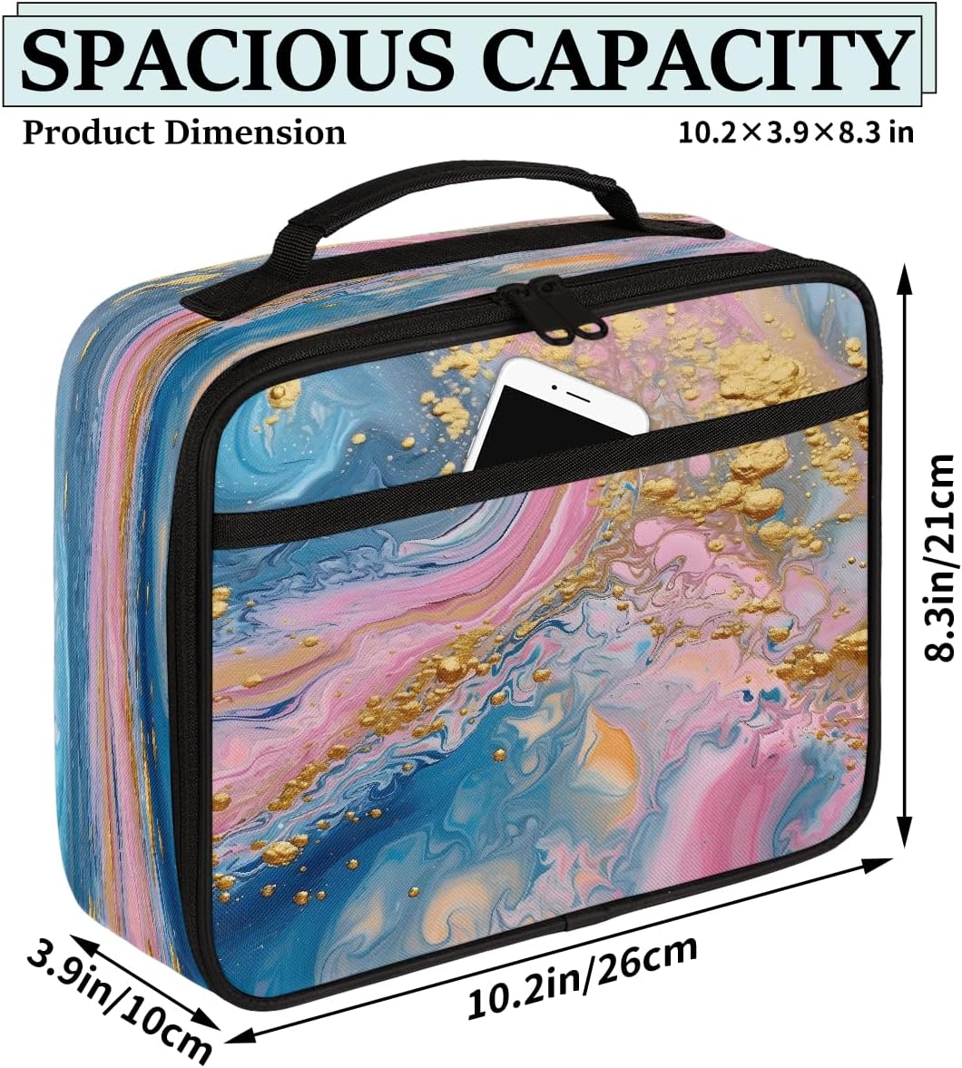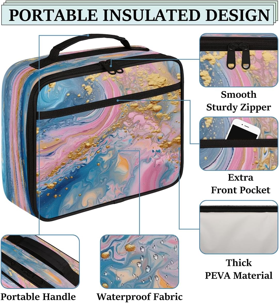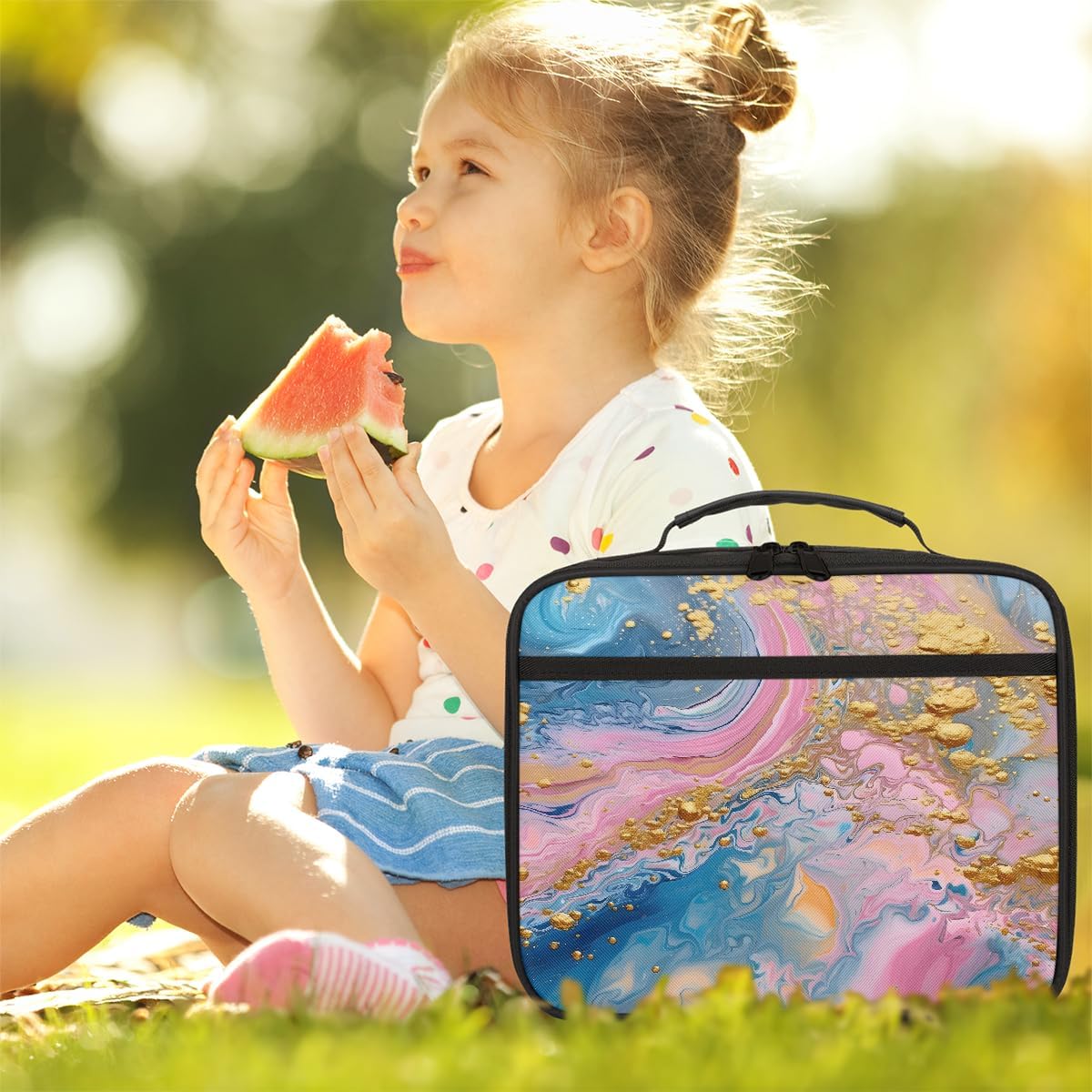 Borsa per il pranzo per bambini, rosa pastello, blu, dorata, con texture matble, borsa per il pranzo per ragazzi e ragazze, borsa bento isolata, riutilizzabile, per scuola, picnic, lavoro