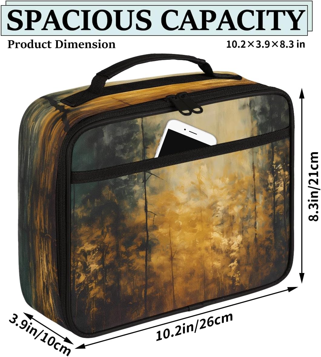 Borsa per il pranzo per bambini, vintage, autunnale, foresta, pittura artistica, borsa per il pranzo per ragazzi e ragazze, riutilizzabile, isolata, bento, borsa tote per scuola, picnic