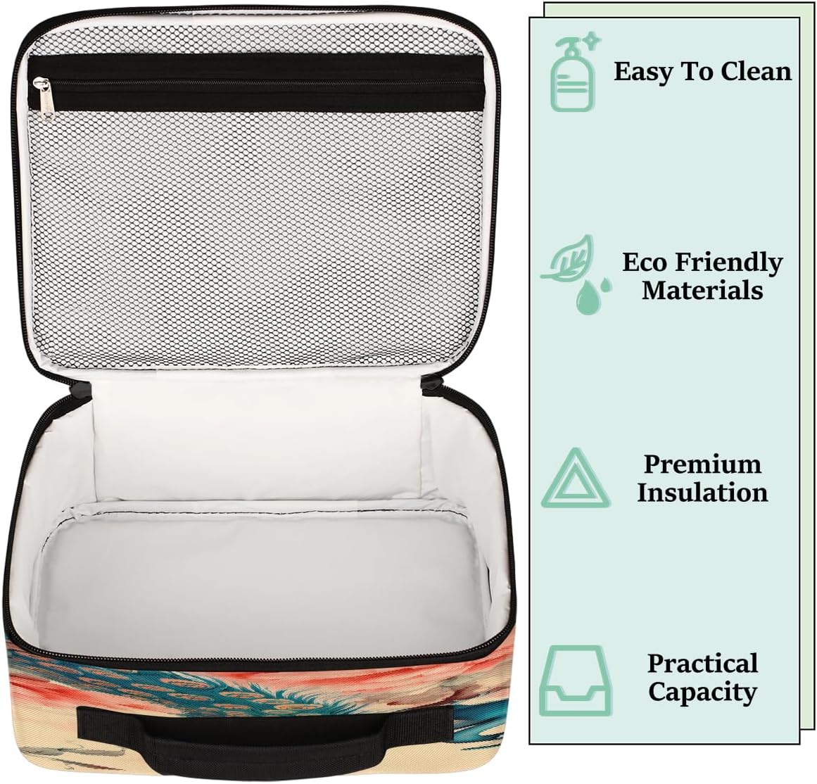 ✿ Dimensioni della borsa portapranzo: 21 x 10 x 26 cm, si adatta perfettamente al tuo portapranzo, frutta, snack e persino bottiglia per frullati proteici ✿ Materiale del contenitore per il pranzo isolato: la borsa per il pranzo riutilizzabile è realizzata in poliestere altamente resistente, facile da pulire, mantiene il cibo o le bevande fresche, calde o fredde per diverse ore, a prova di perdite per l'uso quotidiano Grande capacità: 1 tasca principale con cerniera per riporre facilmente molte cose, come bevande, snack, panini, frutta o verdura; 1 tasca frontale esterna con cerniera per riporre caramelle, chiavi, telefono e altri piccoli oggetti da portare in ufficio, escursioni, viaggi, feste ✿ Piume: la nostra borsa per il pranzo ha 1 tasca principale con cerniera per mantenere cibi e bevande caldi o freschi, 1 grande tasca frontale per chiavi, carte, telefoni e così via. È molto facile da portare ovunque come viaggi, spiaggia e sport; è facile da trasportare, a tracolla, inoltre, la tracolla può essere rimossa e trasformata in una borsa portatile per i pasti ✿ Regalo perfetto: motivi unici, regali unici, ideali per gli amici durante il festival, come compleanno, Natale, giorno della scuola