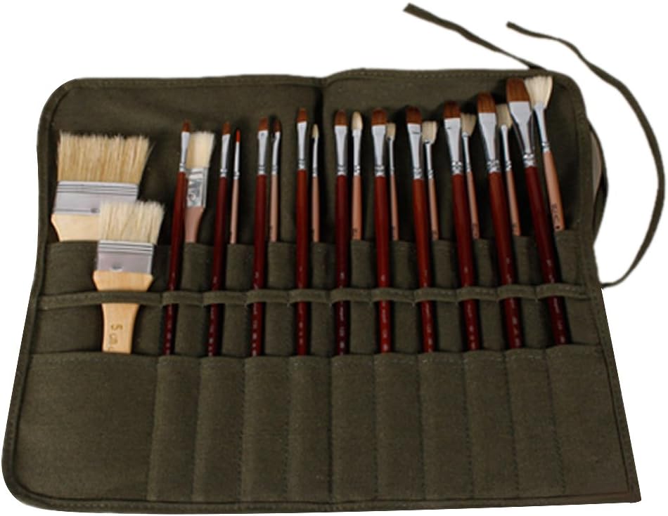 Utilizzare per installare i pennelli da pittura, sistemati in modo ordinato, possono essere arrotolati, comodi e facili da trasportare. materiale in tela, totale di 22 buste separate. Due strati di tasche per pennelli possono ospitare più pennelli. Puoi mettere il pennello, il raschietto, il taglierino e altri accessori per la pittura, in modo che il pennello non sia più in disordine. Solo borsa per pennelli, gli altri accessori dimostrativi nella foto non sono inclusi!