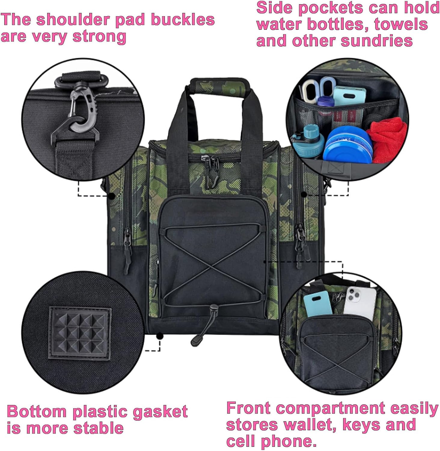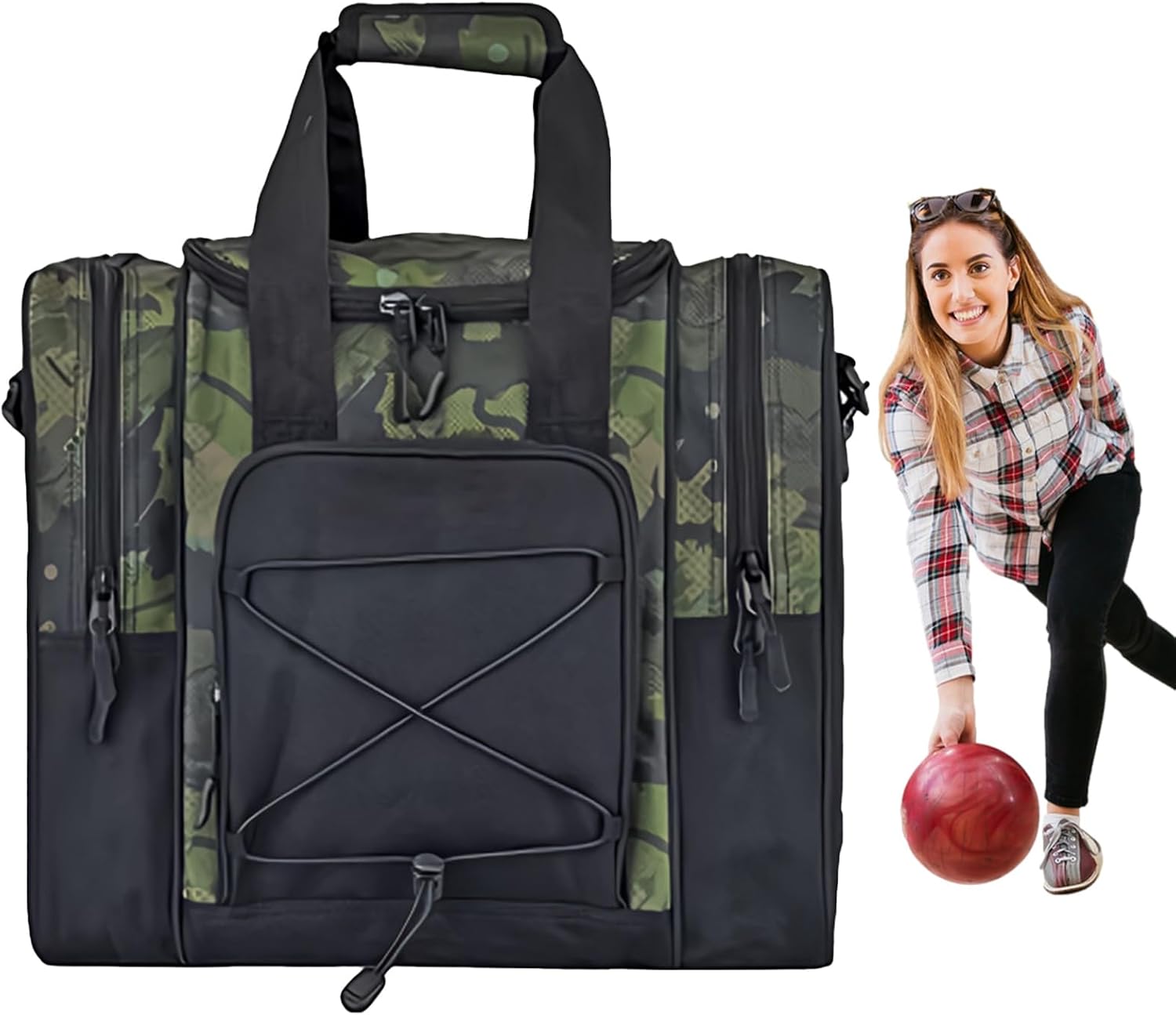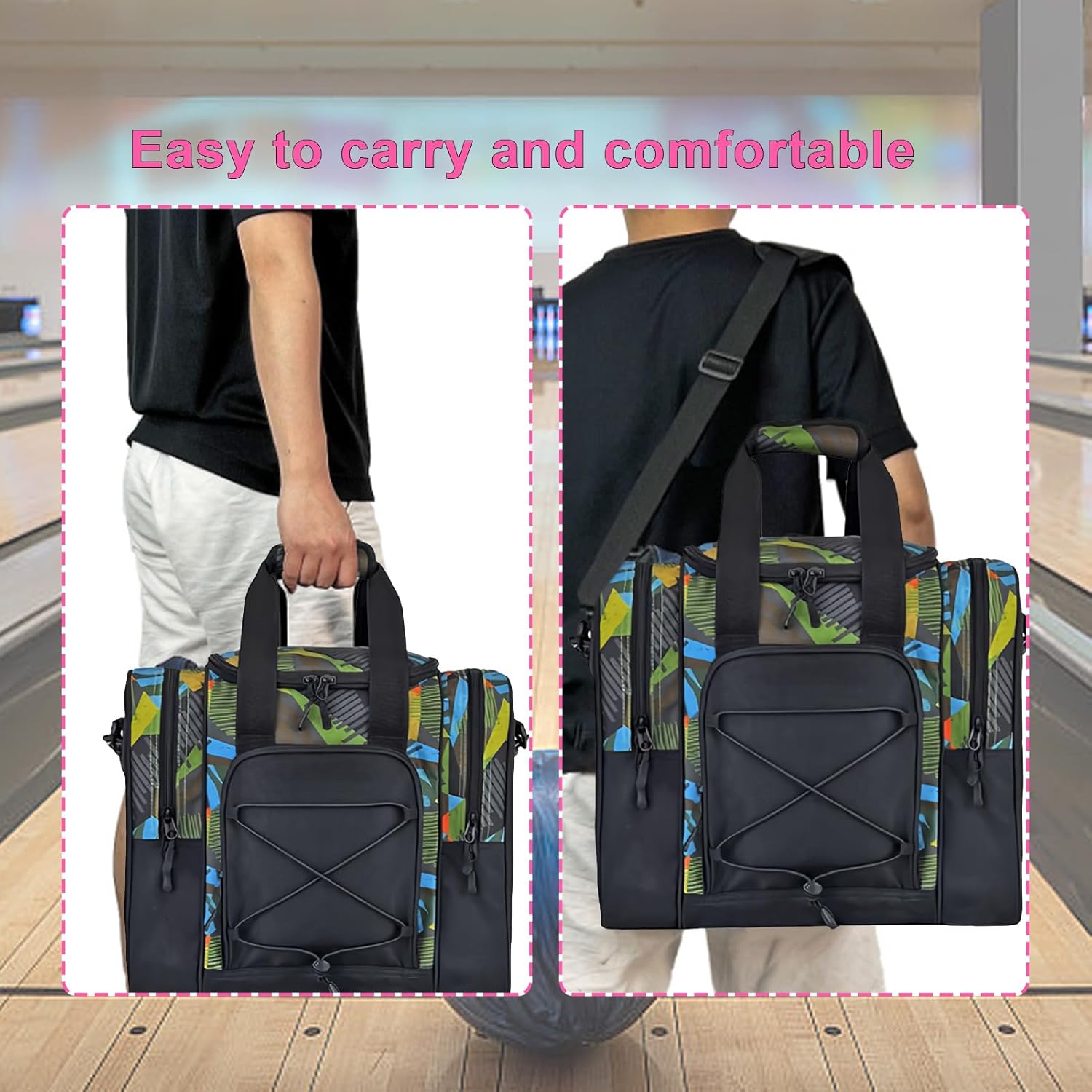 Funzionalità: portare la palla da bowling non è mai stato così facile con la nostra borsa per palline da bowling di alta qualità. Realizzato con materiali di qualità, tiene saldamente 1 palla da bowling e dispone di due tasche laterali ventilate. Inoltre, lo scomparto frontale offre spazio sufficiente per riporre il portafoglio e le chiavi. Facile da trasportare: porta facilmente la palla da bowling ovunque tu vada, grazie alla borsa imbottita che fissa la tua attrezzatura in uno scomparto protetto con un supporto per palline e una cerniera resistente. spalle: includendo una cintura regolabile e una tracolla, questa borsa per palle da bowling riduce la pressione sulle spalle e fornisce una vestibilità personalizzata per un trasporto confortevole. Durevole ed elegante: questa borsa per palline da bowling è realizzata in poliestere resistente all'usura di alta qualità. La pregevole fattura garantisce una cerniera morbida e una maniglia resistente. La borsa è disponibile anche in diversi colori e disegni secondo le tue preferenze. REGALO PERFETTO: sorprendete i vostri cari con questa elegante e resistente borsa a sfera da bowling, ideale per tutte le occasioni e livelli di abilità, sia che si tratti di Pasqua, compleanno o semplicemente di un gioco casual.