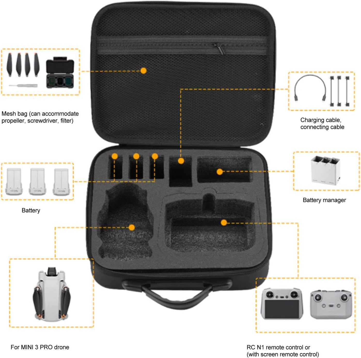 [Opzioni di trasporto versatili] Adatto per droni mini 3 pro, con tracolla regolabile per diversi stili di trasporto [Comodo spazio per gli accessori] Conserva piccoli oggetti come droni, telecomandi, batterie e altro ancora [Design multifunzionale] Dispone di una borsa a rete per cavi, schede di memoria e filtri [Materiali eccellenti] Adotta materiali resistenti all'usura per proteggere droni e accessori [Comodo e portatile] Facile da trasportare per i viaggi, offre comodità nella tua vita