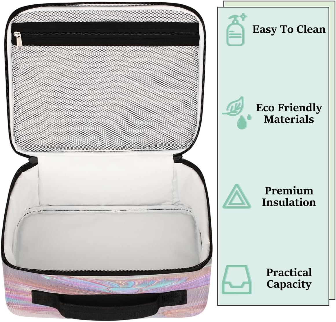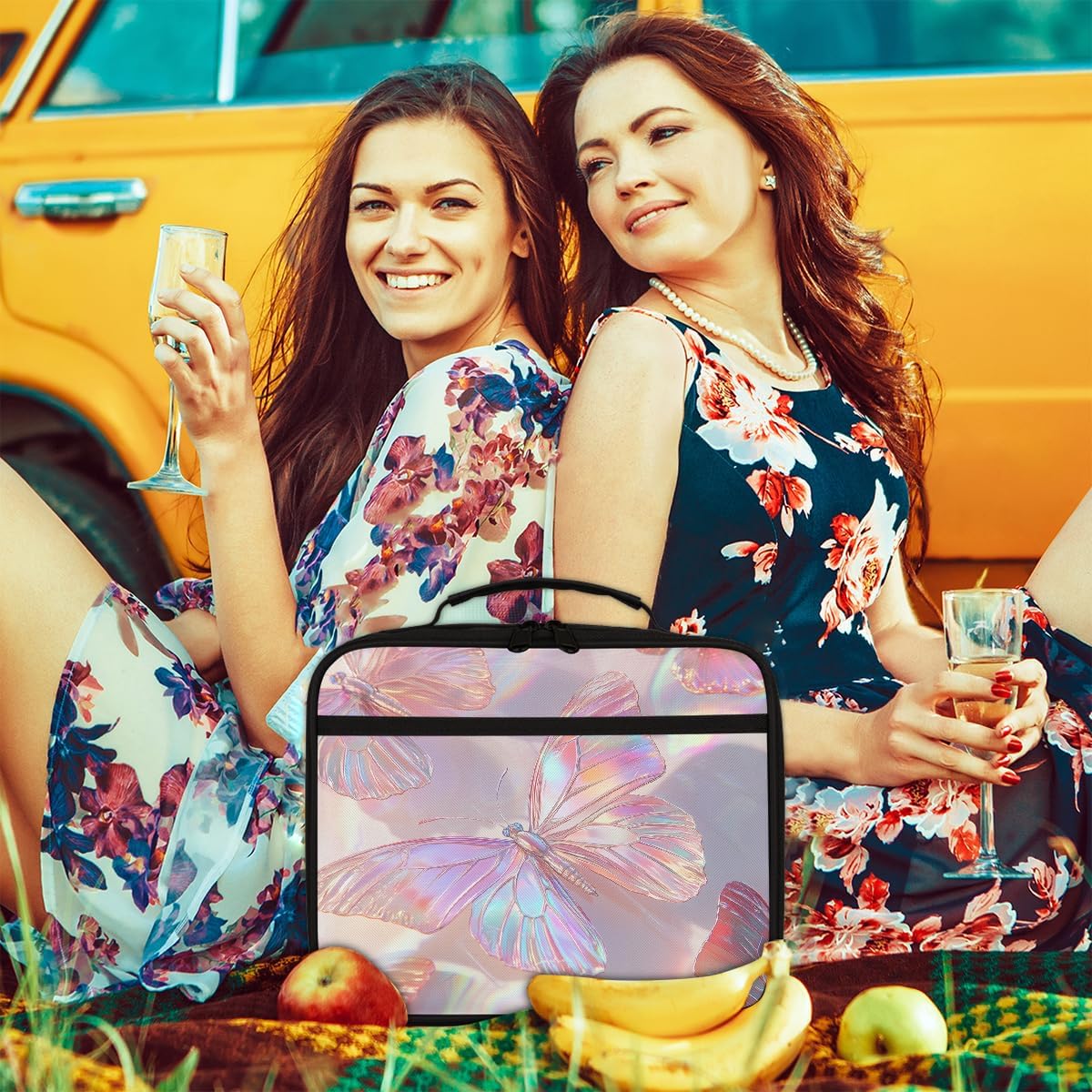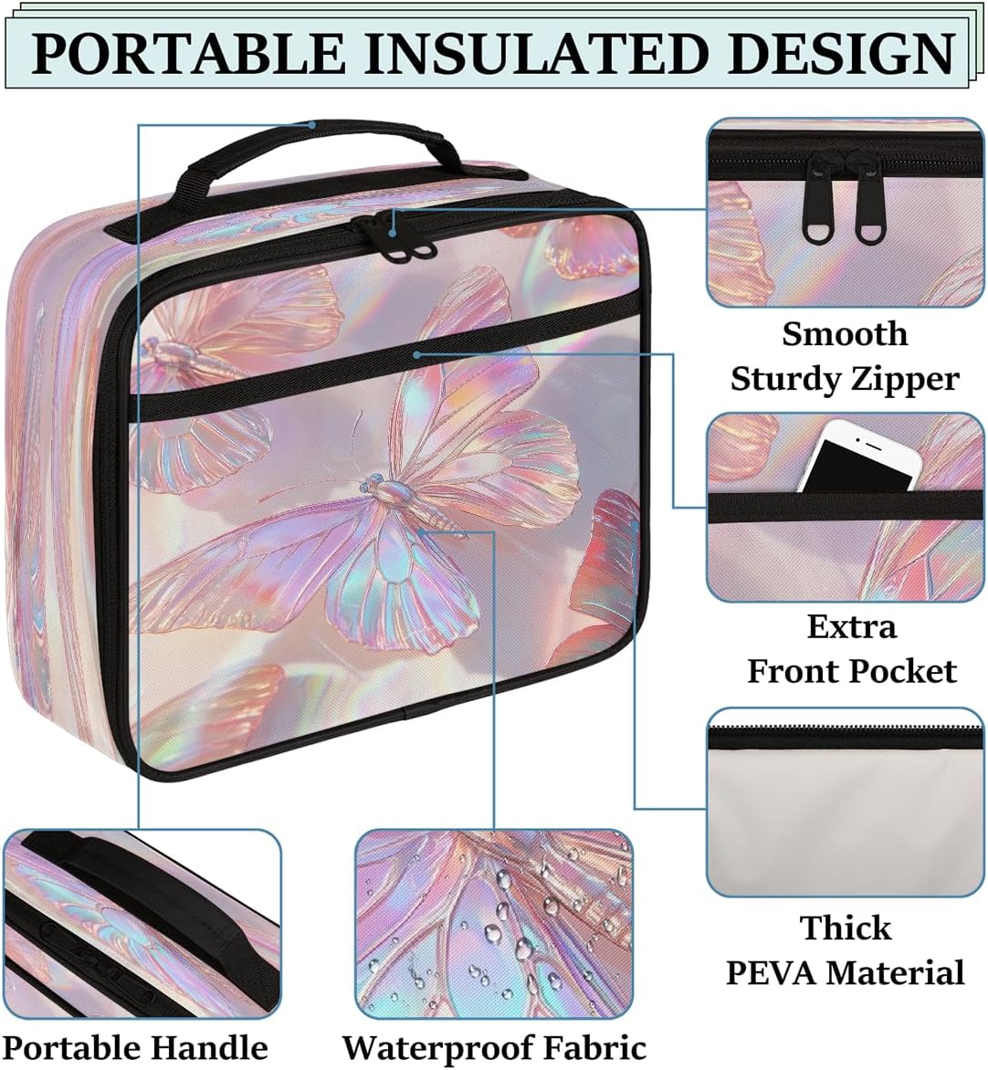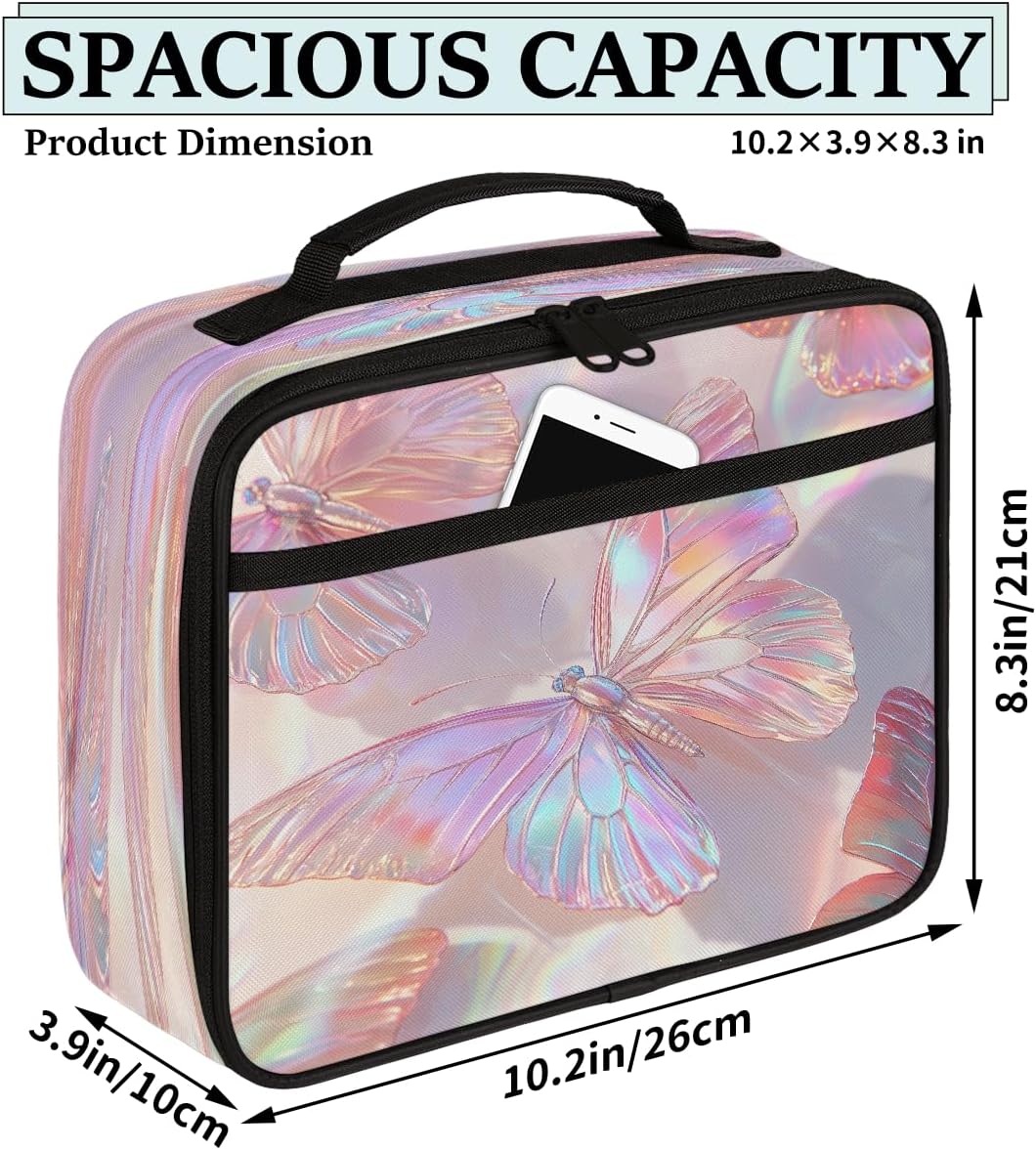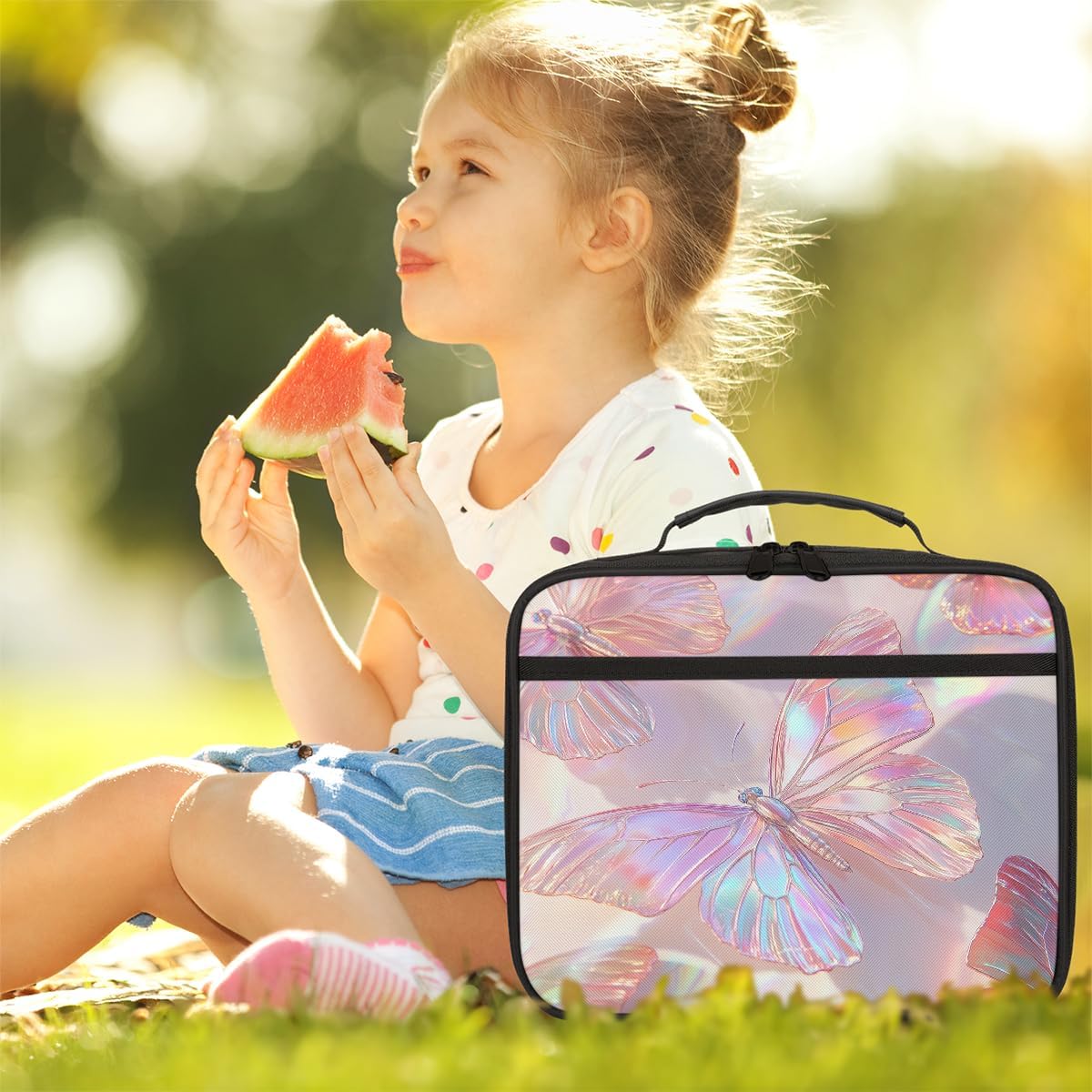Borsa portapranzo per bambini con farfalle estetiche colorate, borsa per il pranzo per ragazzi e ragazze, riutilizzabile, isolata, bento, per scuola, picnic, lavoro