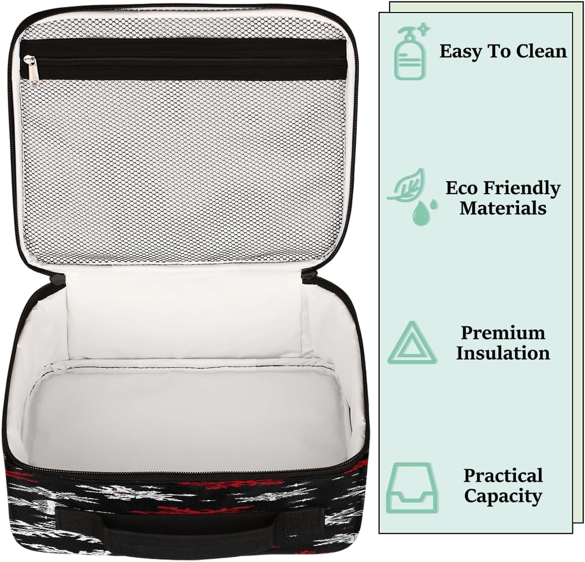 Borsa portapranzo per bambini, con fiocchi di neve, colore rosso e nero, borsa per il pranzo per ragazzi e ragazze, riutilizzabile, isolata, bento, per scuola, picnic, lavoro