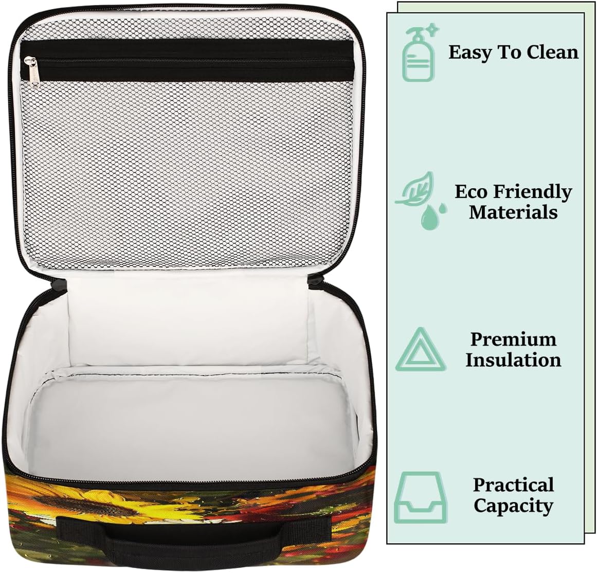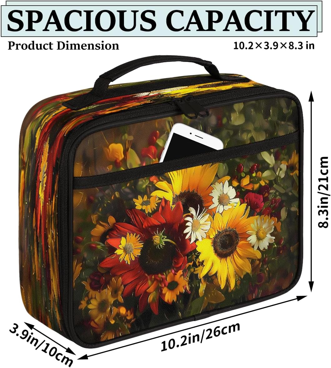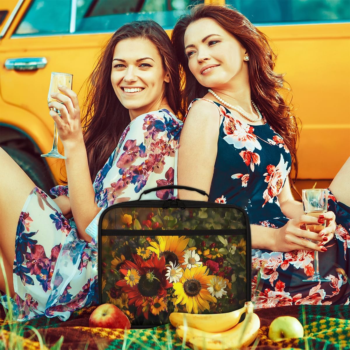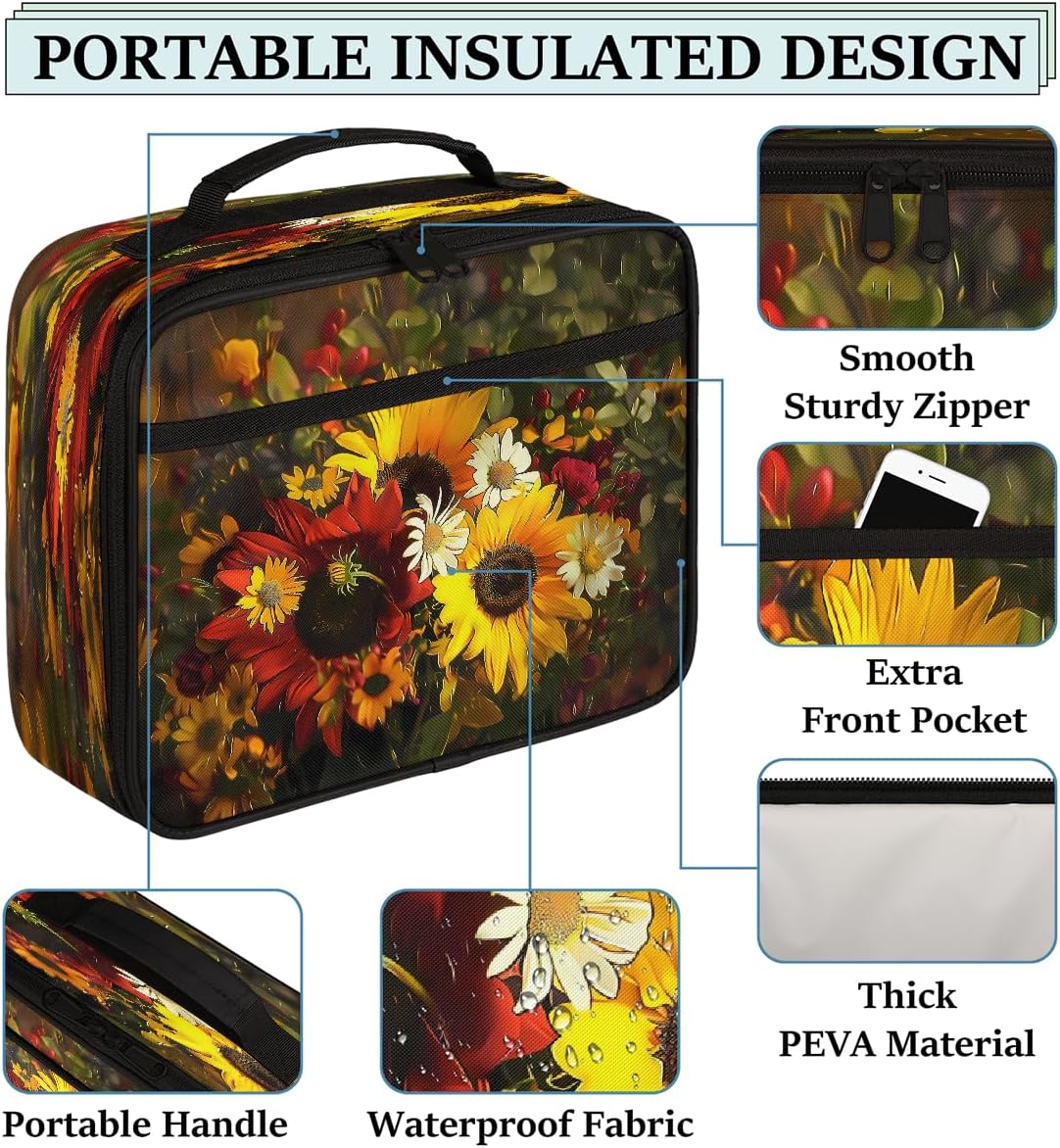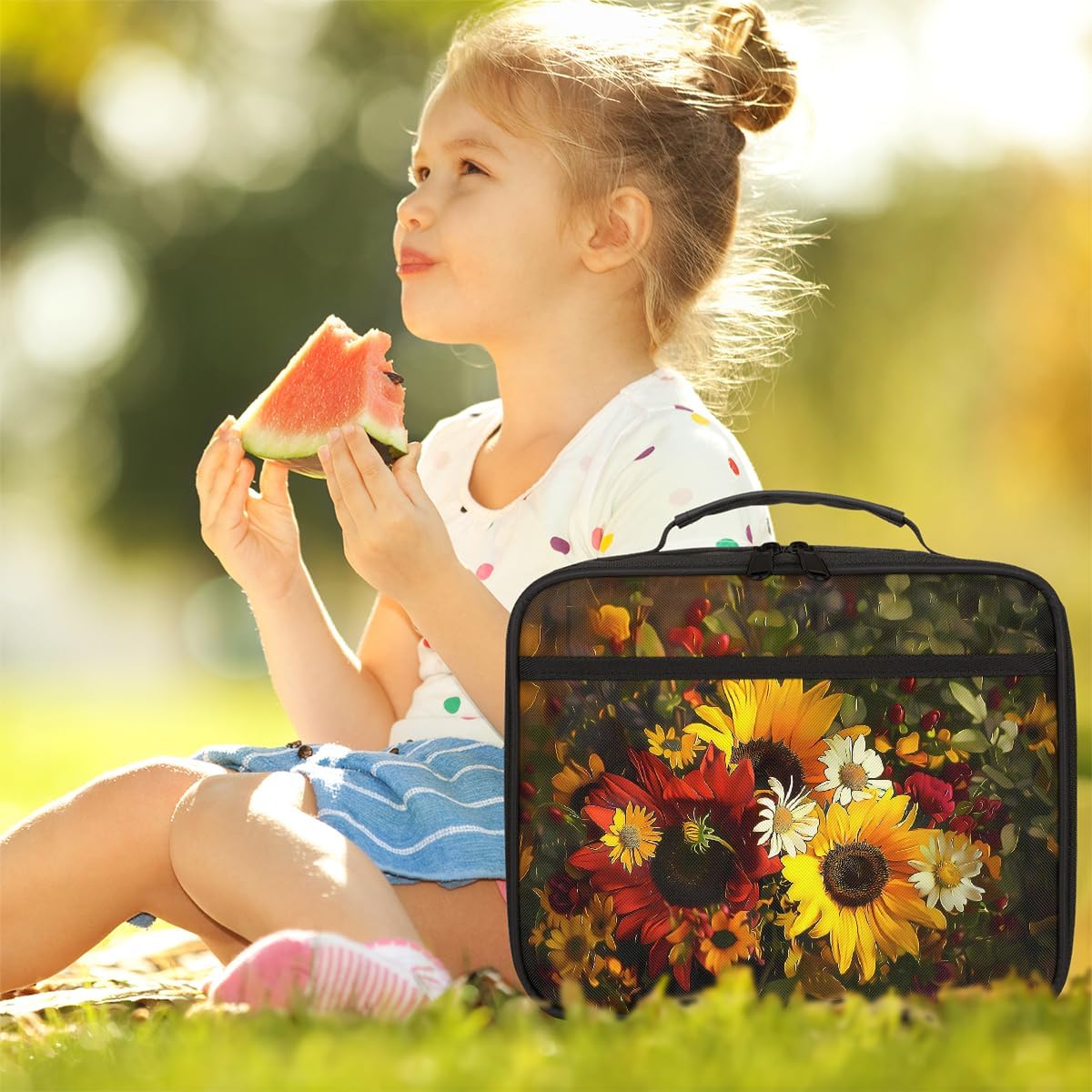Borsa portapranzo per bambini, con girasole e margherite, borsa per il pranzo per ragazzi e ragazze, riutilizzabile, isolata, bento, per scuola, picnic, lavoro