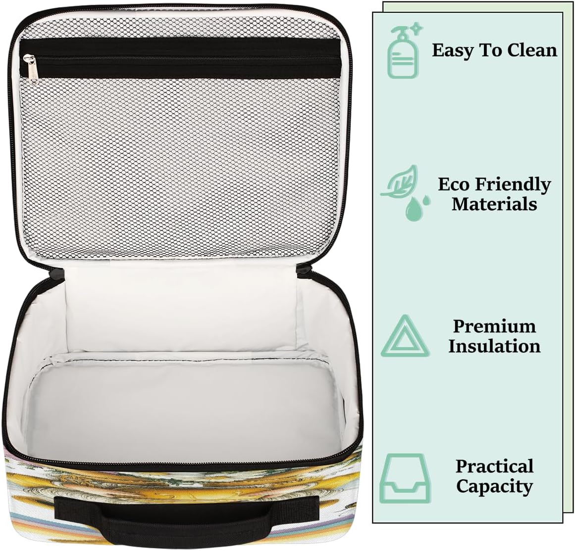 ✿ Dimensioni della borsa portapranzo: 21 x 10 x 26 cm, si adatta perfettamente al tuo portapranzo, frutta, snack e persino bottiglia per frullati proteici ✿ Materiale del contenitore per il pranzo isolato: la borsa per il pranzo riutilizzabile è realizzata in poliestere altamente resistente, facile da pulire, mantiene il cibo o le bevande fresche, calde o fredde per diverse ore, a prova di perdite per l'uso quotidiano Grande capacità: 1 tasca principale con cerniera per riporre facilmente molte cose, come bevande, snack, panini, frutta o verdura; 1 tasca frontale esterna con cerniera per riporre caramelle, chiavi, telefono e altri piccoli oggetti da portare in ufficio, escursioni, viaggi, feste ✿ Piume: la nostra borsa per il pranzo ha 1 tasca principale con cerniera per mantenere cibi e bevande caldi o freschi, 1 grande tasca frontale per chiavi, carte, telefoni e così via. È molto facile da portare ovunque come viaggi, spiaggia e sport; è facile da trasportare, a tracolla, inoltre, la tracolla può essere rimossa e trasformata in una borsa portatile per i pasti ✿ Regalo perfetto: motivi unici, regali unici, ideali per gli amici durante il festival, come compleanno, Natale, giorno della scuola