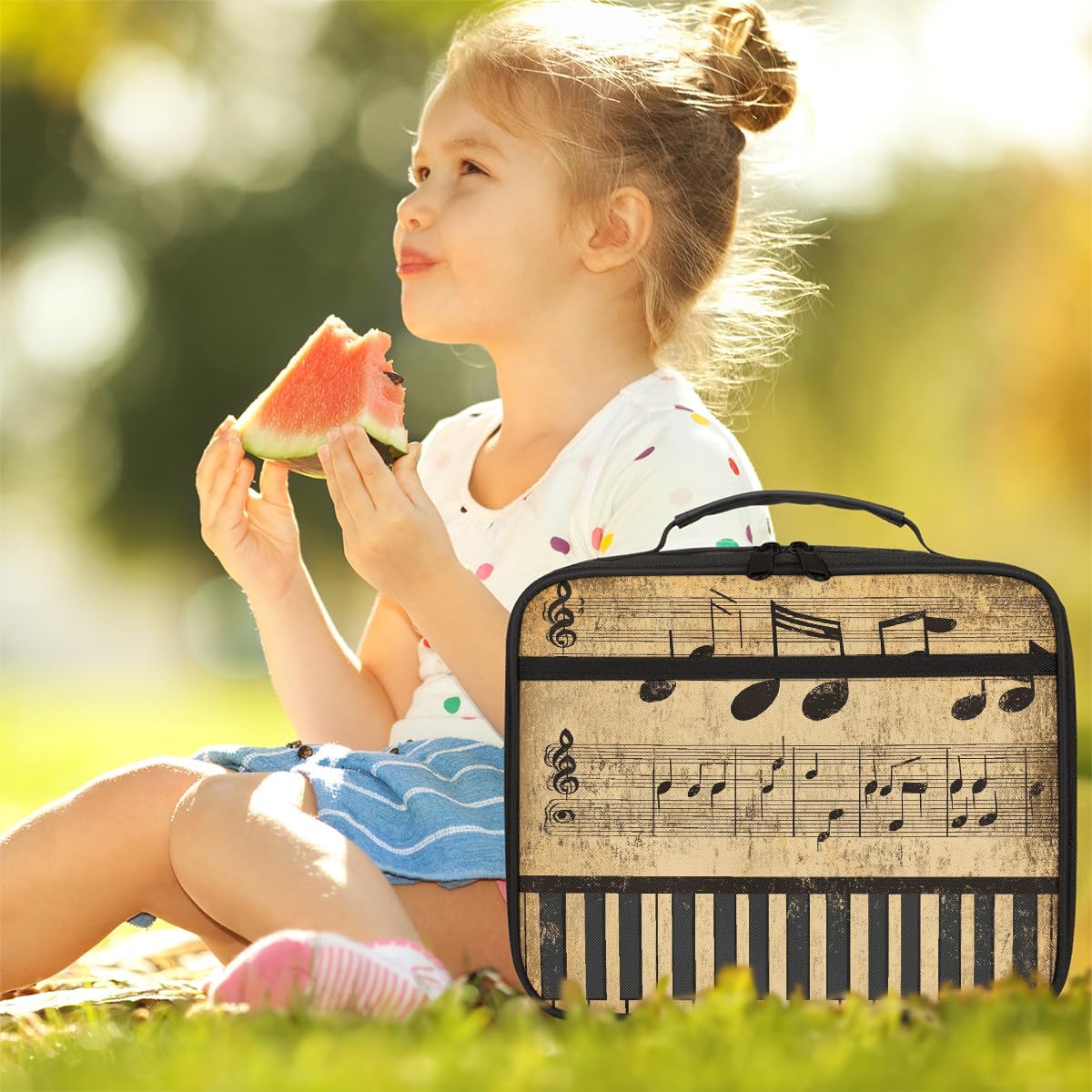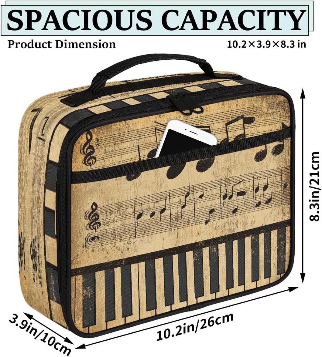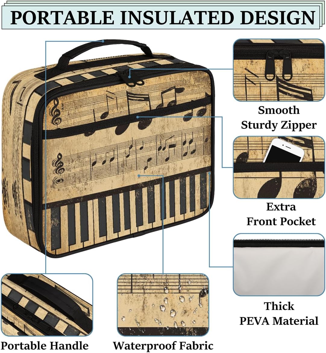 Borsa portapranzo per bambini con note musicali retrò con tasti di pianoforte, borsa per il pranzo per ragazzi e ragazze, riutilizzabile, isolata, bento, per scuola, picnic, lavoro