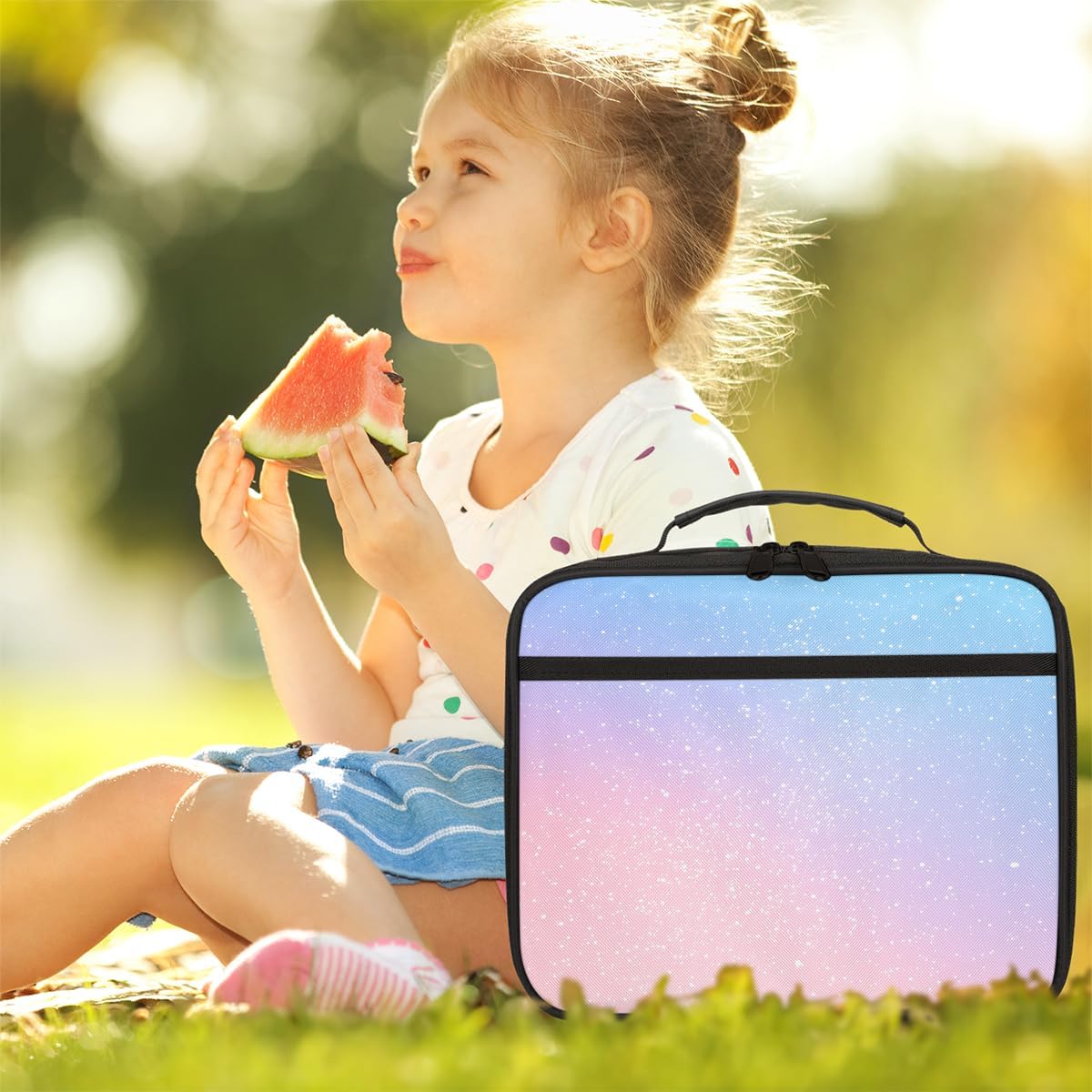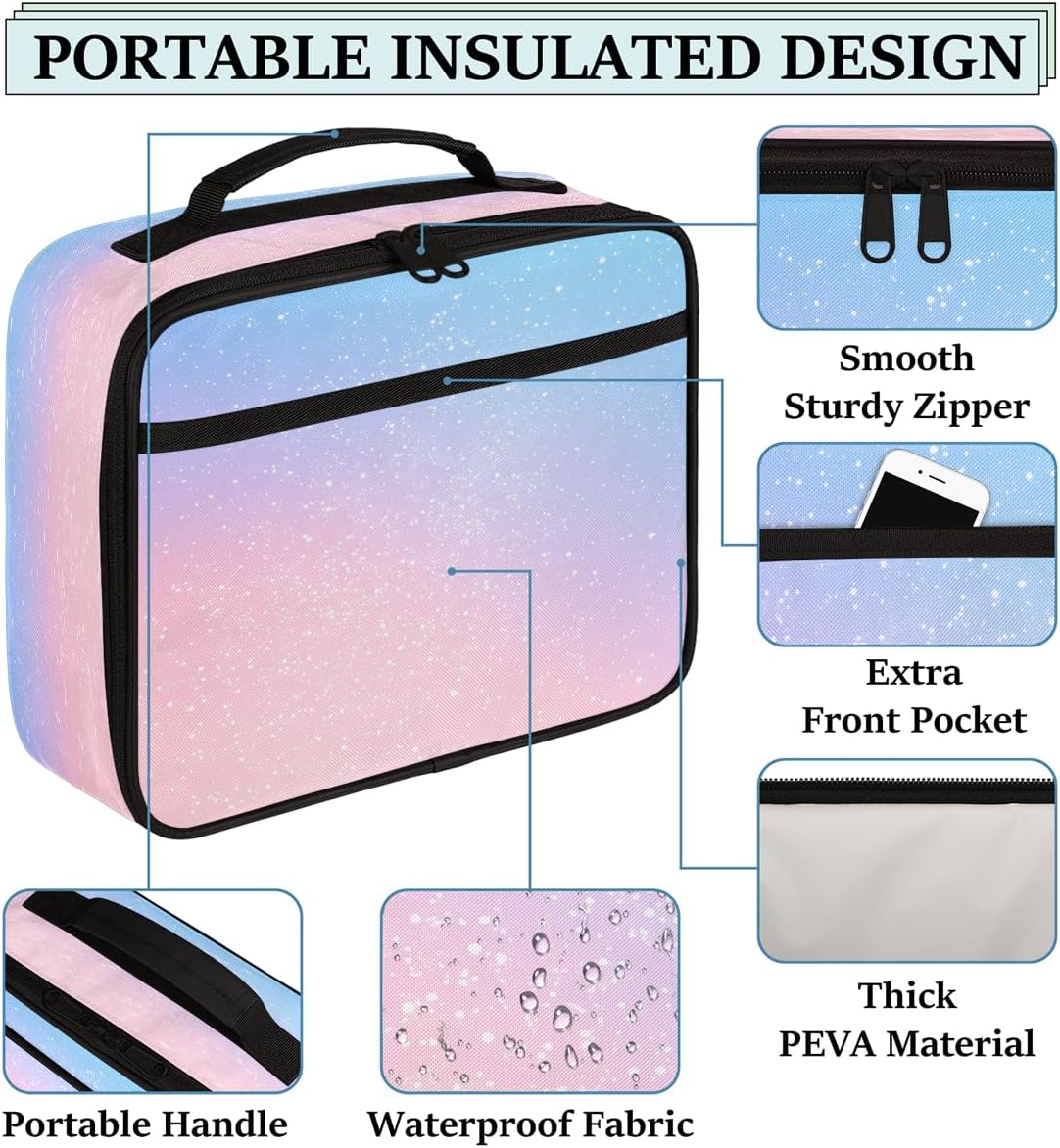 Borsa portapranzo per bambini con sfumature pastello sfumate blu e rosa, borsa per il pranzo per ragazzi e ragazze, riutilizzabile, isolata, bento, per scuola, picnic, lavoro