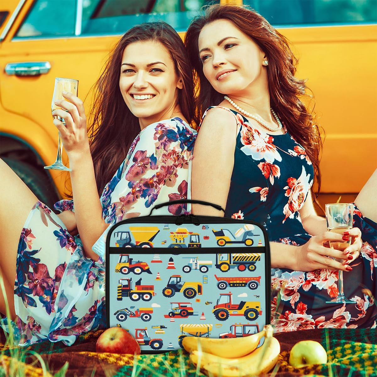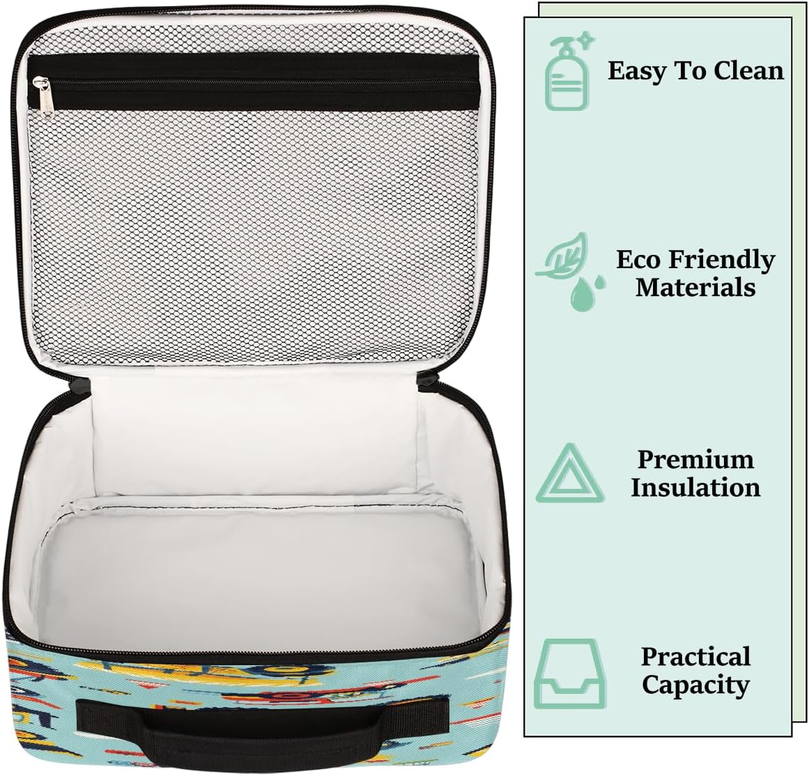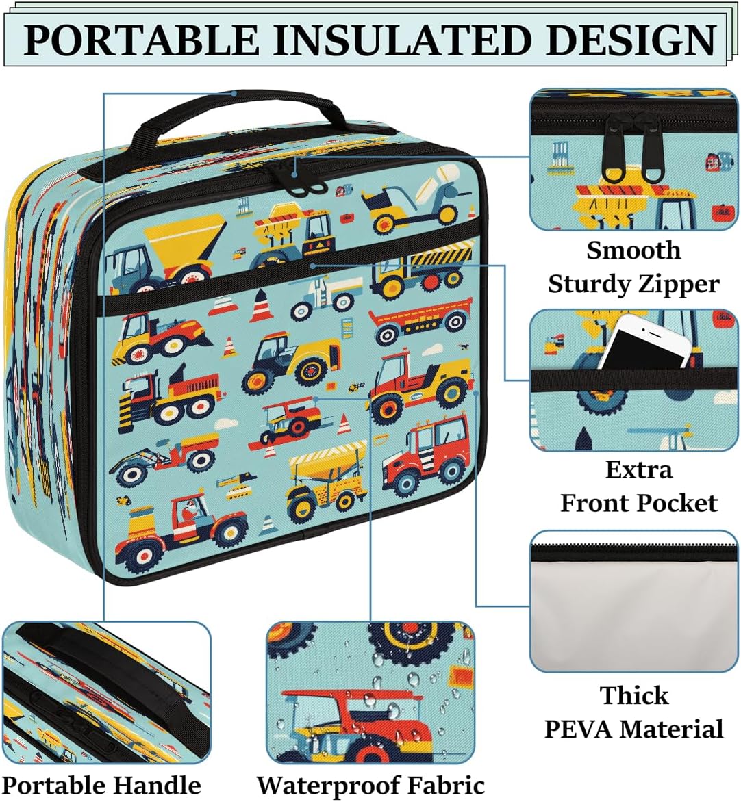Borsa portapranzo per bambini, con veicoli da costruzione, per bambini, per ragazzi e ragazze, riutilizzabile, isolata, bento, per scuola, picnic, lavoro