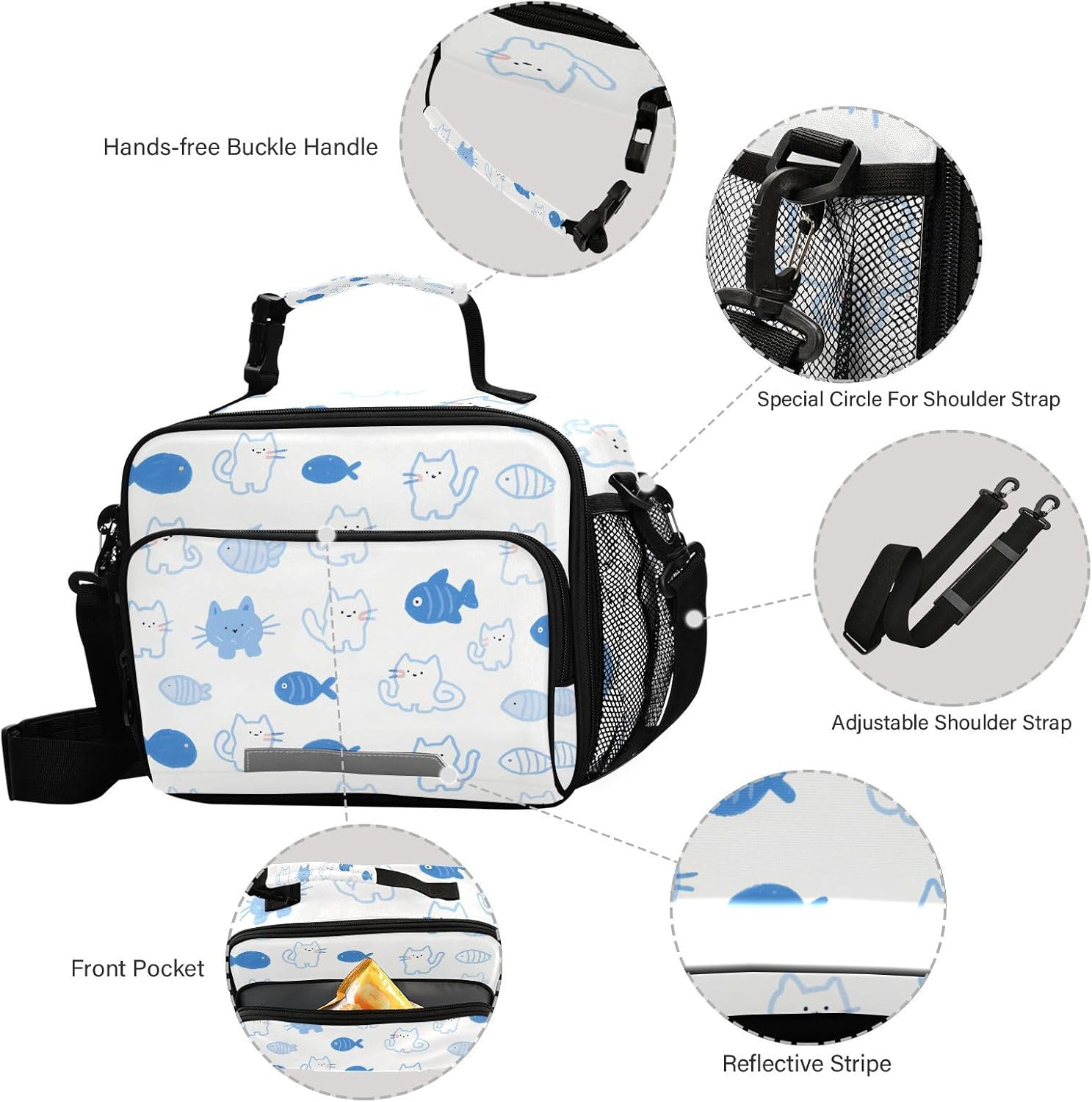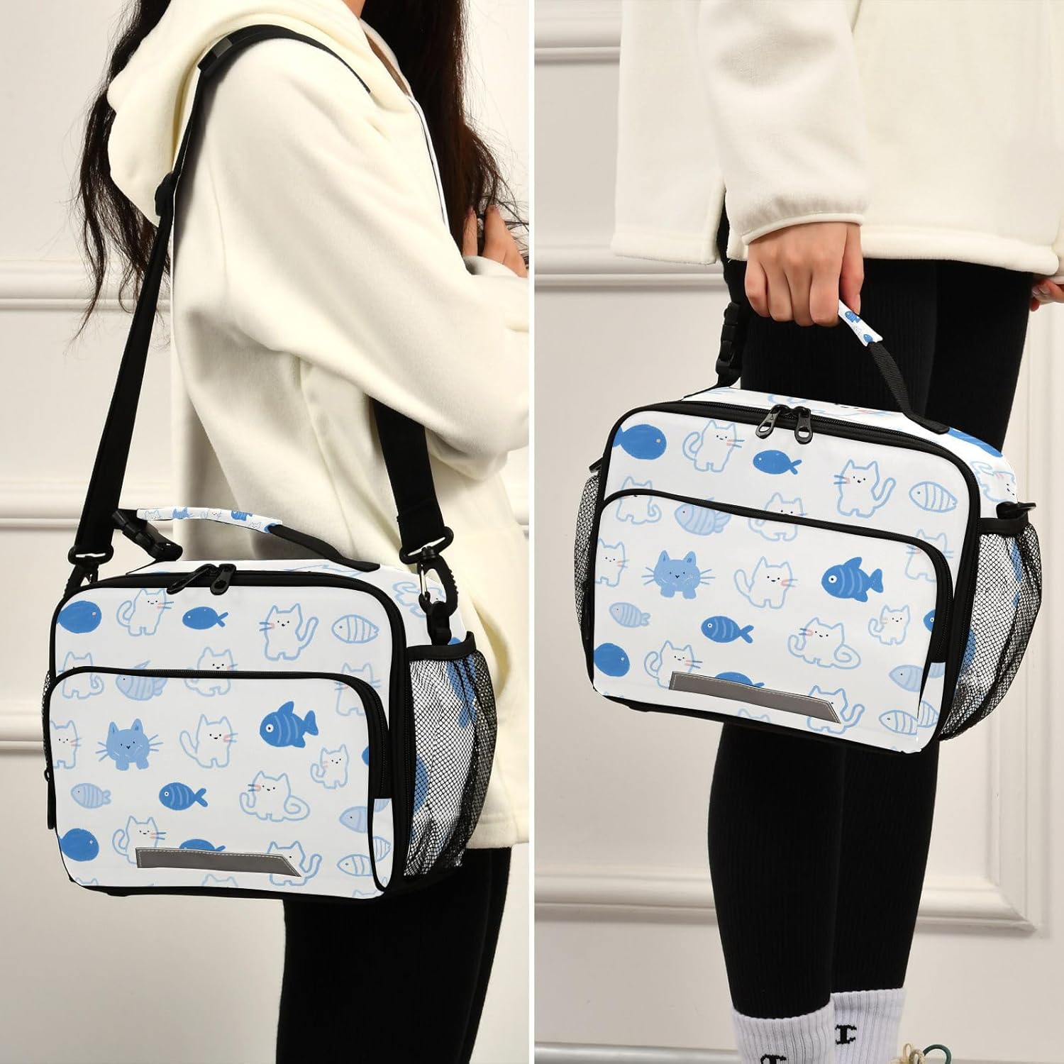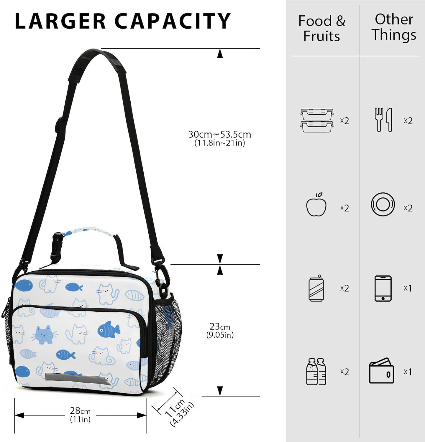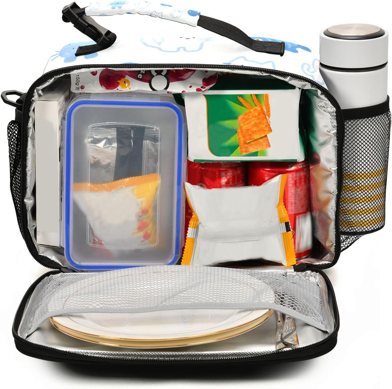 Grande capacità: 28 x 11 x 23 cm. Dimensioni perfette per contenere colazione, latte, pane, panini, portapranzo termico e frutta. Inoltre, la grande borsa per il pranzo è dotata di tasca posteriore con cerniera e 2 tasche laterali in rete. Materiale: pellicola di alluminio isolata spessa viene utilizzata all'interno e tessuto in poliestere sulla parte esterna. Con una conservazione duratura del calore, il Lunch Box può mantenere il pranzo, la colazione, il brunch, la frutta, il cibo fresco e caldo per ore. A tenuta stagna e isolamento termico: il nostro portapranzo da donna è realizzato in alluminio isolato, resistente agli strappi, a prova di perdite, impermeabile e facile da pulire. Il tessuto esterno è in poliestere spesso, garantendo una buona conservazione del calore, migliorando la freschezza e il gusto, dando una sana abitudine alimentare. Facile da trasportare: con grande capacità, tracolla regolabile e comoda maniglia robusta, la borsa portatile per il pranzo per bambini rende semplice il trasporto del pranzo. Non è necessario trasportare borse piccole o grandi per il pranzo, la bottiglia, le necessità per lavorare, scuola, viaggi, ecc. Basta prendere e andare con un carico leggero. Il design della tracolla può liberare le mani! Molteplici occasioni: la nostra borsa portapranzo riutilizzabile per il lavoro si adatta a un sacco di oggetti, come la magia, perfetta per campeggio, picnic, viaggi, pendolarismo, ufficio, lavoro e qualsiasi attività all'aperto.