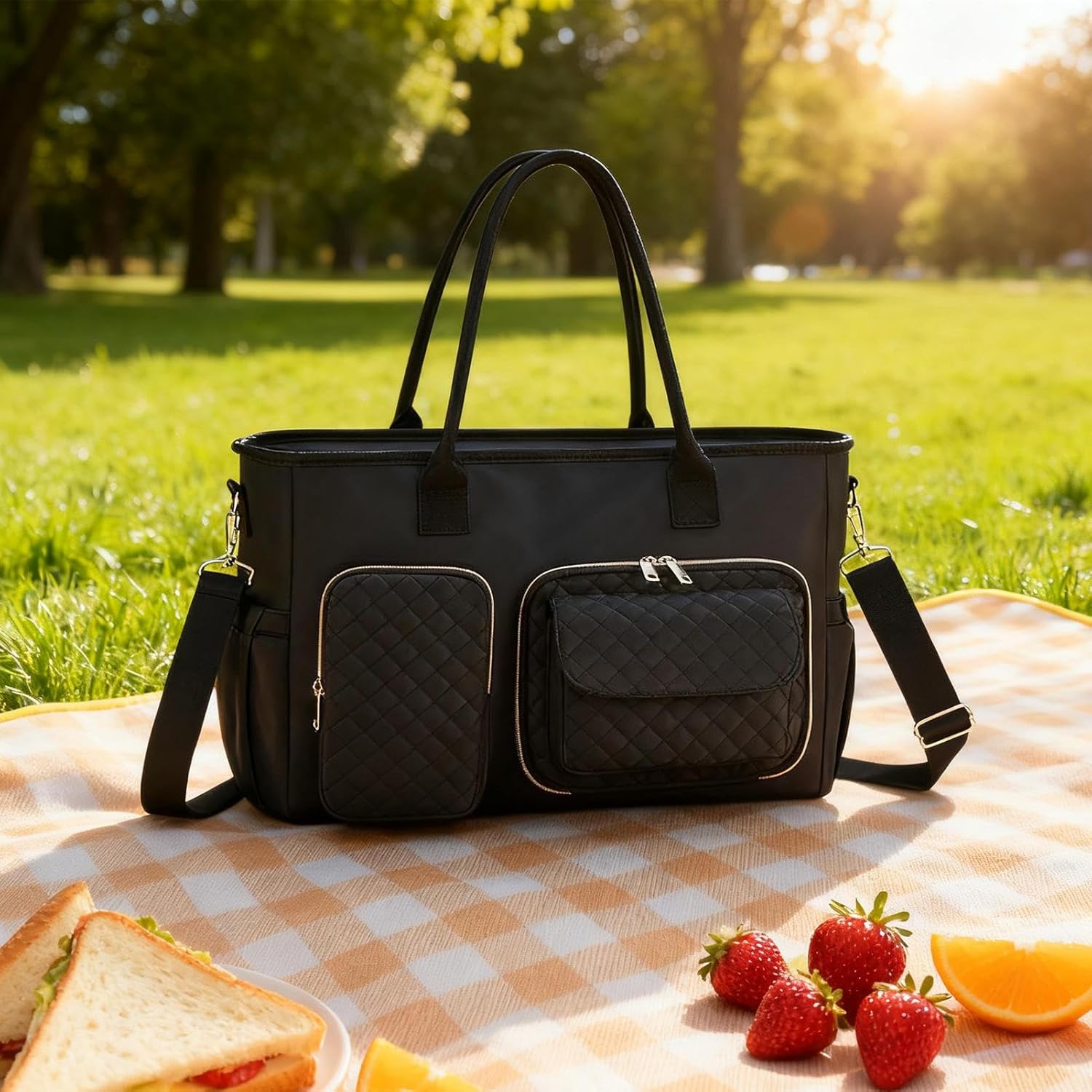 Vantaggio Impermeabile: La borsa pranzo incorpora un esterno in poliestere resistente all'usura che mantiene la struttura, offrendo una protezione da schizzi e abrasioni e un design eretto autoportante. È perfetta per trasportare cibo in sicurezza durante i viaggi o le routine quotidiane, resistendo all'umidità per preservare la freschezza dei contenuti in modo pratico e duraturo. Design Comfortevole a Tracolla: La borsa pranzo per donna include un cinturino regolabile che offre opzioni di portata versatile come a tracolla o in stile tote, assicurando massima comodità durante l'utilizzo. Grazie a questa caratteristica, trasportare i pasti e gli oggetti necessari diventa semplice e senza sforzo, sia nei giorni lavorativi che nelle attività del weekend, con un focus sul comfort e la praticità per le donne sempre in movimento. Borsa Quotidiana per Donne: Questo modello di borsa pranzo duraturo garantisce che i tuoi effetti personali siano al sicuro da spruzzi e pioggerella, fondendo eleganza e funzionalità in un design adattabile. Adatta a insegnanti, pendolari e professionisti, è ideale per l'uso giornaliero o in contesti accademici, fornendo una soluzione pratica e comoda per trasportare oggetti in modo sicuro e organizzato. Organizzatore Senza Cambio: Progettata con versatilità, questa borsa pranzo supporta una soluzione di trasporto lavoro e pasti integrando storage isolato e compartimenti funzionali. Si rivolge a professionisti impegnati che richiedono efficienza durante il commute quotidiano, eliminando la necessità di cambiare borsa grazie alla sua capacità di organizzare oggetti personali e pasti in modo ordinato. L'design intuitivo facilita l'accesso ai contenuti, assicurando prestazioni affidabili senza ingo Idea Regalo di Gusto: Con un design premuroso, questa borsa con scomparto pranzo soddisfa le donne impegnate che cercano una compagna per stile di vita organizzato, assicurando che i pasti siano conservati in modo ordinato e conveniente, rendendola un'opzione regalo elegante adatta per feste e uso quotidiano.