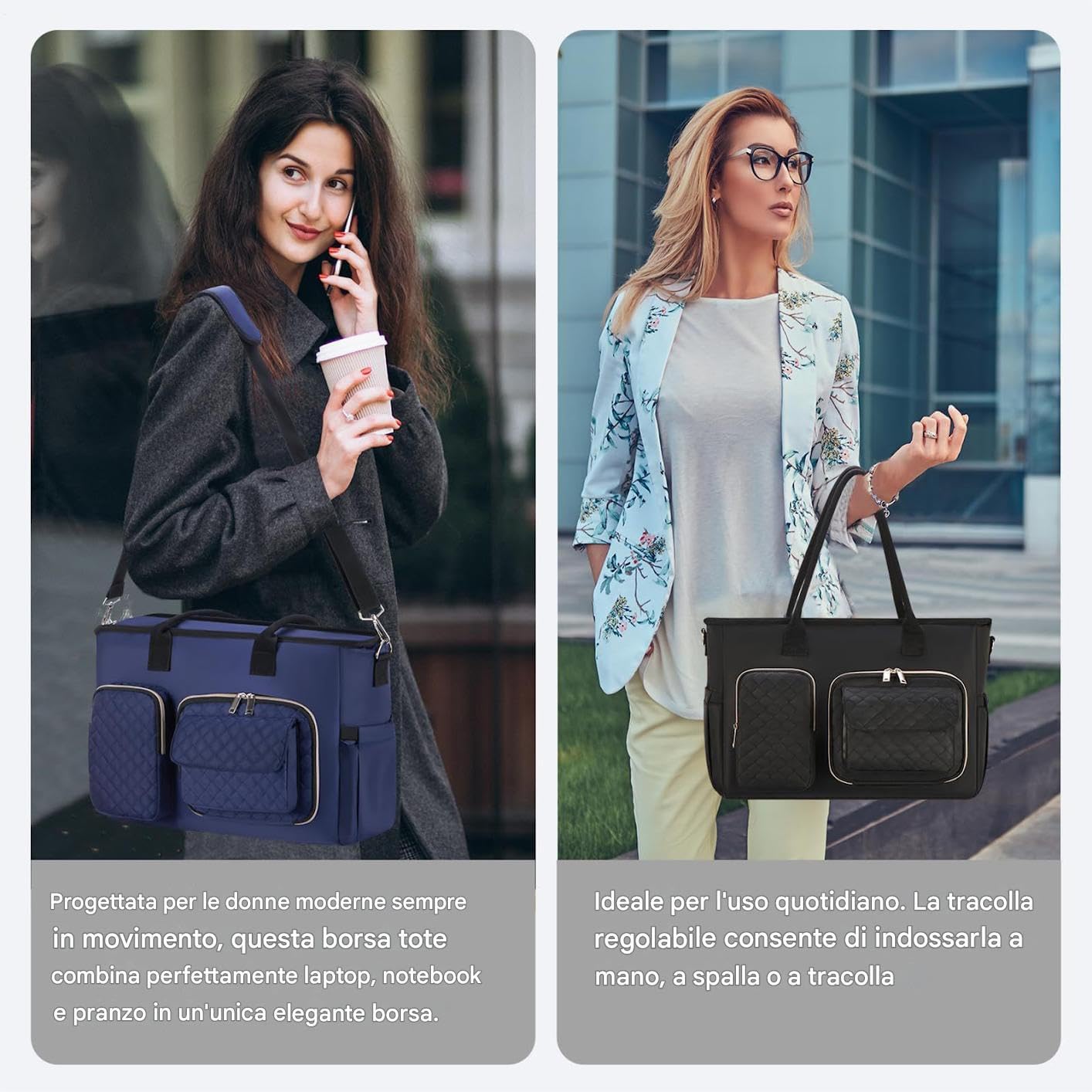 Vantaggio Impermeabile: La borsa pranzo incorpora un esterno in poliestere resistente all'usura che mantiene la struttura, offrendo una protezione da schizzi e abrasioni e un design eretto autoportante. È perfetta per trasportare cibo in sicurezza durante i viaggi o le routine quotidiane, resistendo all'umidità per preservare la freschezza dei contenuti in modo pratico e duraturo. Stile di Trasporto lizzabile: Progettata per le donne, questa borsa pranzo features un cinturino regolabile che permette di passare facilmente tra la portata a tracolla e a spalla, fornendo supporto ergonomico e praticità nel trasporto giornaliero. Ideale per pasti, documenti o effetti li, si adatta alle diverse esigenze con comfort e sicurezza, garantendo un'esperienza d'uso e lizzata in ogni contesto. Design Elegante e Funzionale: La borsa pranzo è progettata per unire e utilità, proteggendo gli oggetti li da schizzi e pioggia leggera con materiali resistenti. Perfetta per donne che necessitano di una borsa affidabile e raffinata per il lavoro, l'insegnamento o le commissioni giornaliere, questo modello combina estetica e praticità in un design versatile, adatto a diverse occasioni e ambienti. Interno Isolato per Pasti: La borsa pranzo include un interno isolato che conserva la freschezza degli alimenti, funzionando sia come borsa daily tote professionale che come portapasti affidabile. Perfetta per i pendolari, integra senza soluzione di continuità le esigenze lavorative e li, con un design versatile che supporta il trasporto di oggetti e pasti in un'unica soluzione. L'isolamento garantisce che i cibi rimangano protetti durante gli spostamenti, massimando la praticità per il c Ideale per Feste e Viaggi: Questa borsa con scomparto pranzo supporta le donne impegnate e i pendolari offrendo una compagna per stile di vita organizzato che mantiene i pasti freschi e pronti per il lavoro o i viaggi, aumentando la convenienza durante le stagioni festive o le fughe weekend mentre funge da regalo di gusto riflesso per una cara.