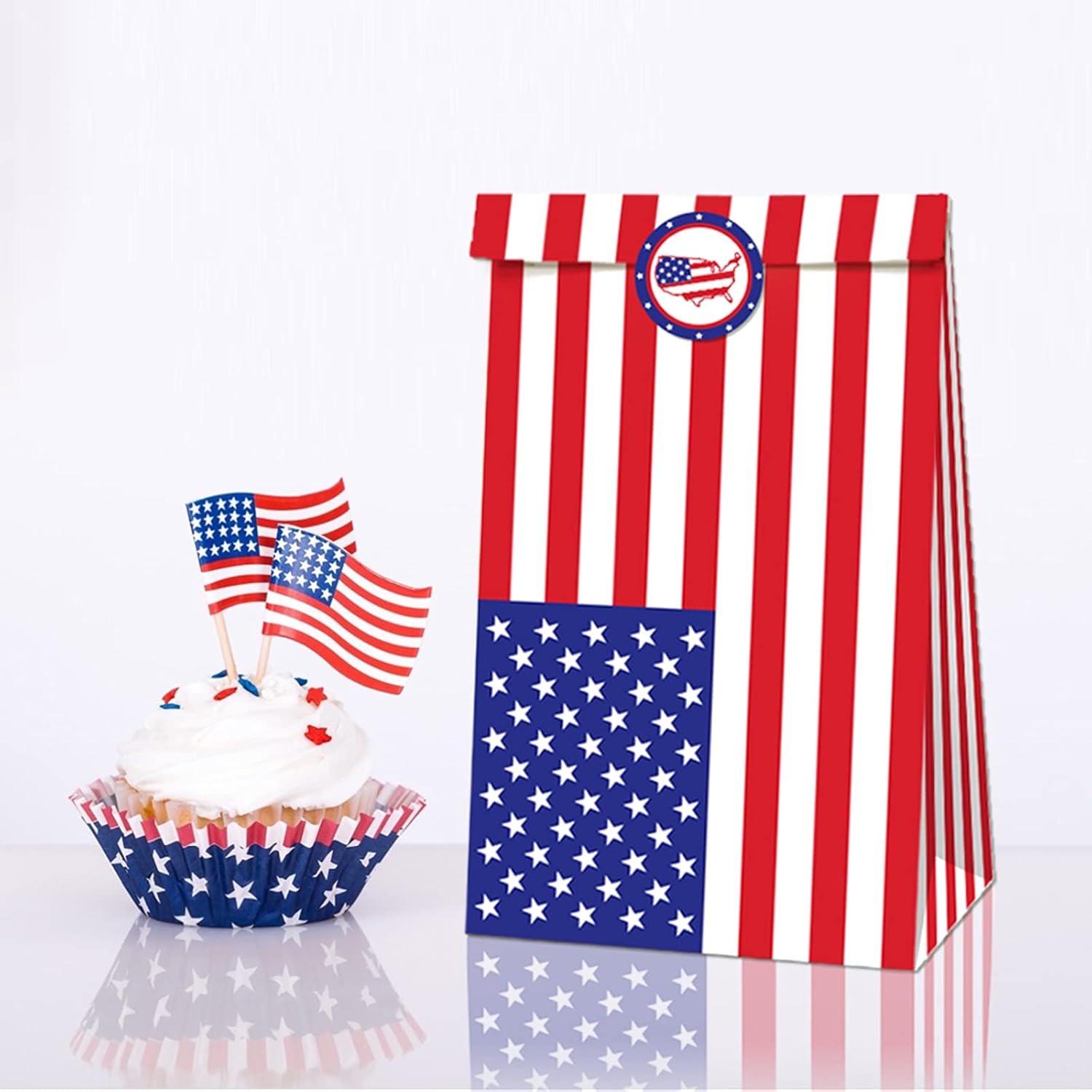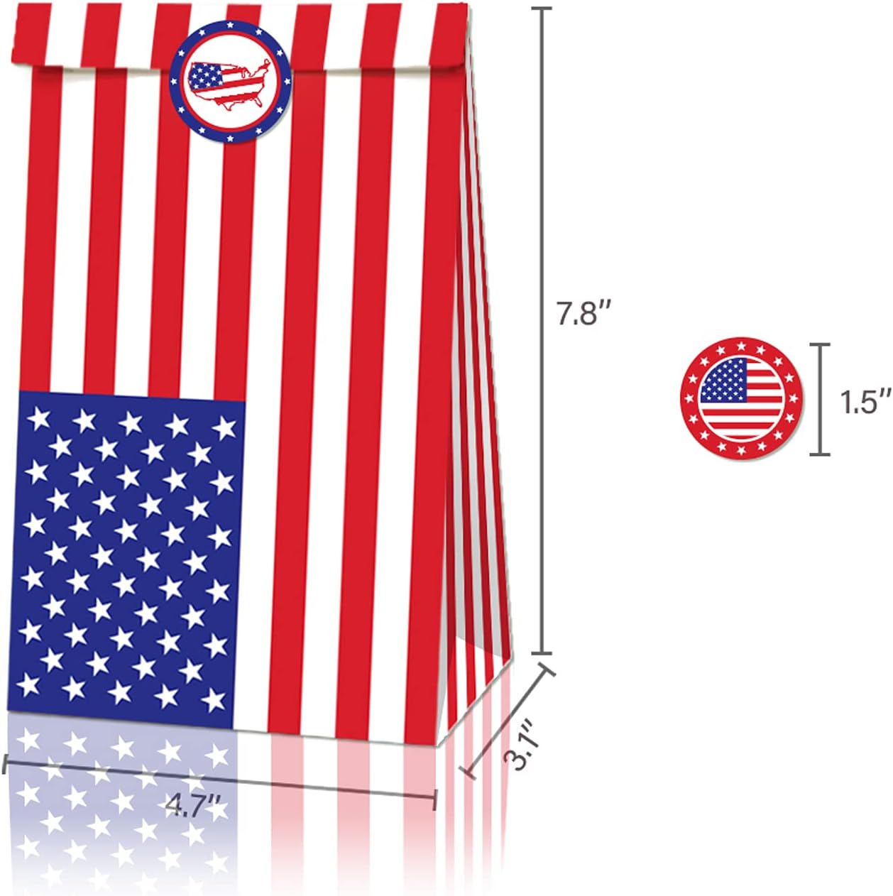 Dimensioni perfette: contenuto della confezione 12 sacchetti per dolcetti, ogni sacchetto ca. 7,8 x 4,7 x 3,1 pollici (19,8 x 11,9 x 7,8 cm) e adesivi ca. 1,5 pollici (3,8 cm). Design a doppia faccia, dimensioni perfette della bandiera americana, perfetto per la festa della bandiera americana del 4 luglio, fornisce sacchetti regalo per piccoli oggetti. Materiale: i sacchetti sono realizzati in carta kraft riciclabile di qualità da 150 g e inchiostri vivaci stampati di alta qualità, sono molto resistenti e inodore. Ogni borsa ha una base solida, abbastanza resistente per dolcetti, giocattoli e borse da festa. DESIGN UNICO: I nostri sacchetti regalo di Natale sono realizzati in carta kraft e abbinano 2 motivi nei classici design della bandiera americana per il 4 luglio, un grazioso sacchetto regalo per le tue vacanze. Ampie applicazioni: ideale per feste per bambini, baby shower per dolcetti, piccoli oggetti. I nostri sacchetti regalo con bandiera americana del 4 luglio sono perfetti per feste di compleanno a tema, feste di Natale e altre celebrazioni gioiose. Garanzia di soddisfazione al 100%: non vogliamo mai deludere i nostri stimati clienti. In caso di problemi con i nostri sacchetti di carta stampati di Halloween, non esitate a contattarci