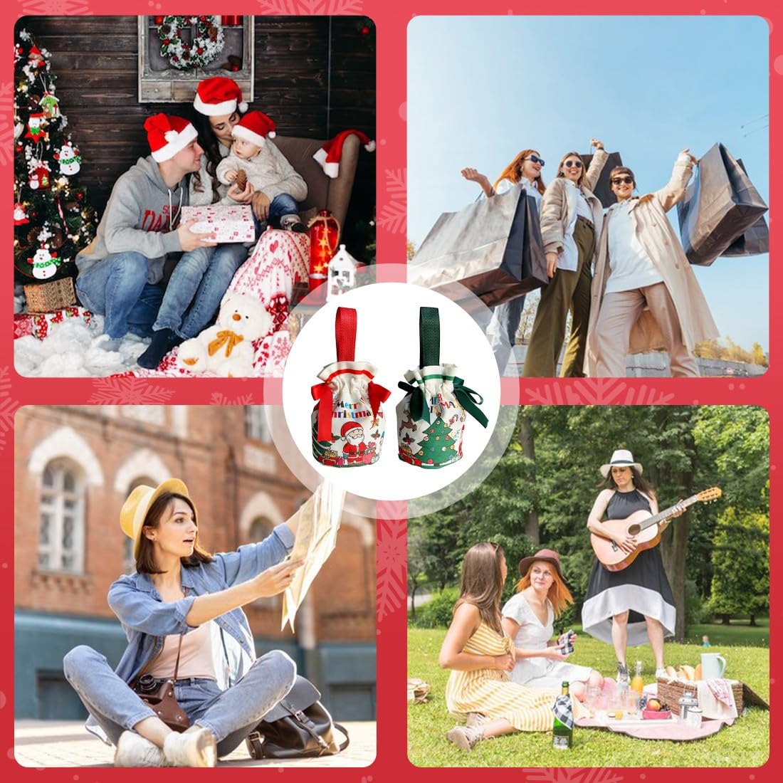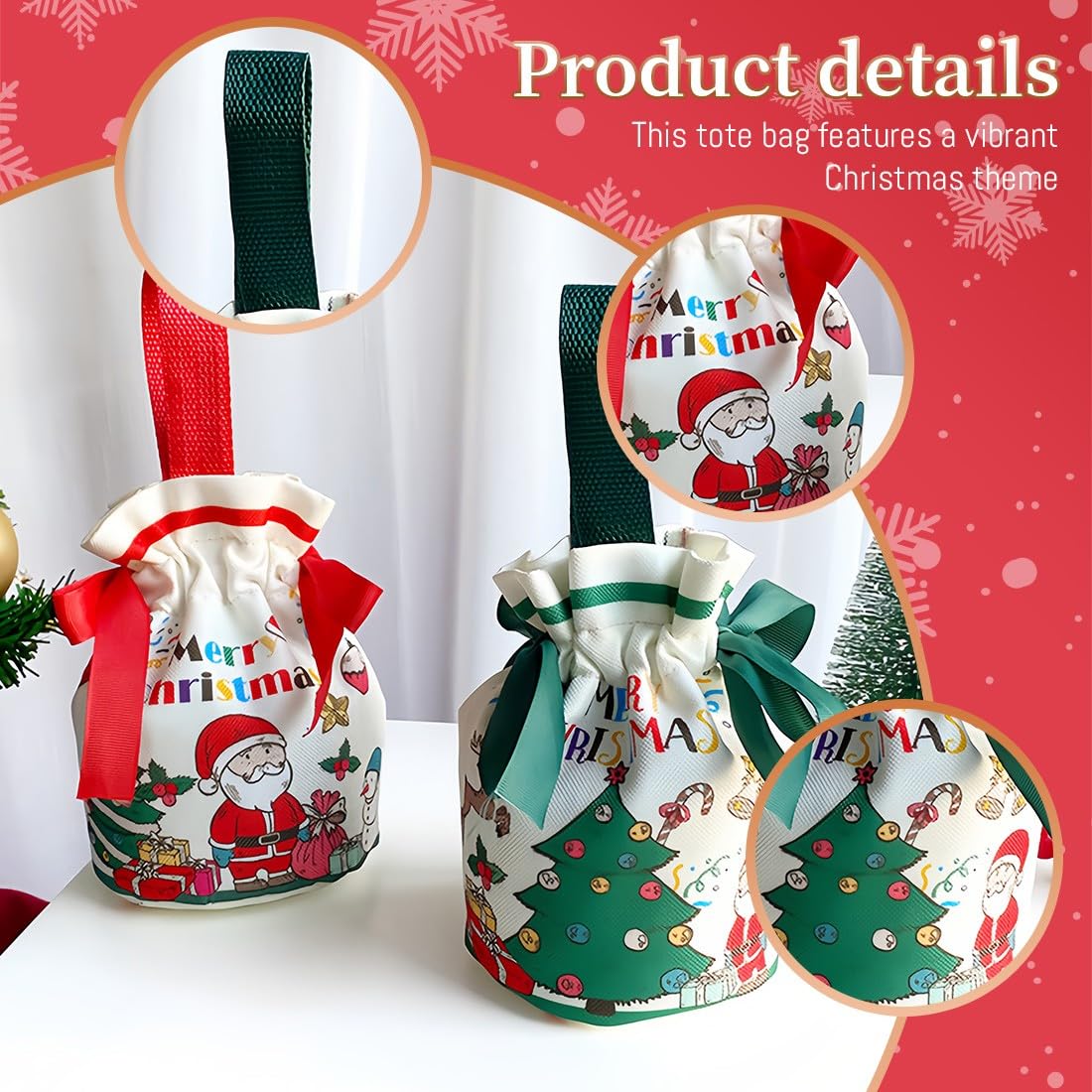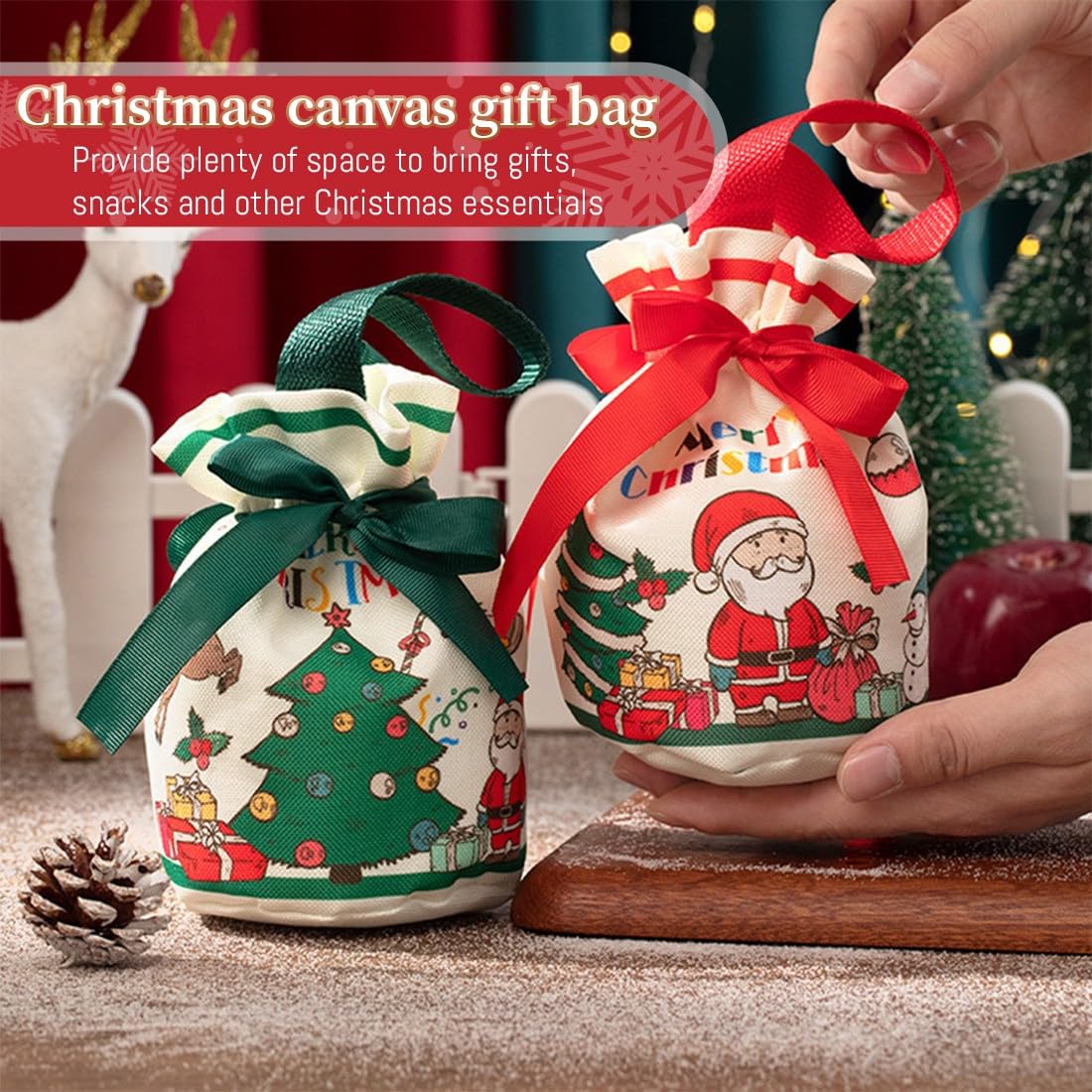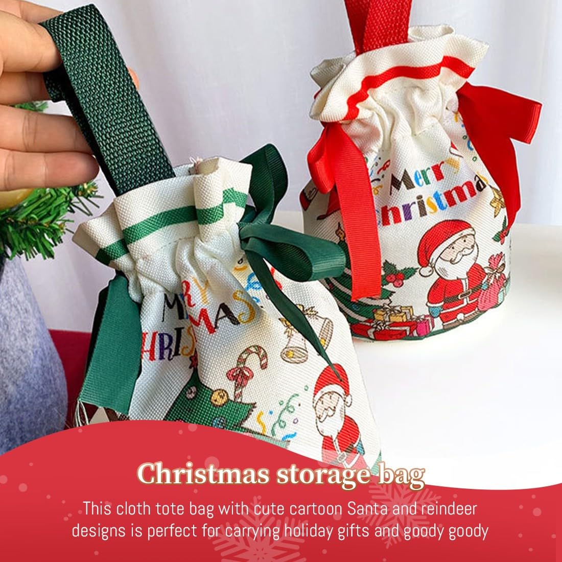 Decorazioni natalizie: sacchetto regalo di Natale squisito e creativo, decorato con graziosi motivi natalizi, elementi natalizi unici creano una forte atmosfera festosa Materiale di alta qualità: il sacchetto di mele di Natale è realizzato in tessuto di alta qualità, pregevole fattura e peso leggero, garantendo una lunga durata MANIGLIA PORTATILE La borsa della spesa con maniglia portatile lo rende facile da trasportare. Borsa regalo con coulisse, facile da aprire e chiudere. Ideale per Natale, Capodanno, feste e altri articoli festivi Dimensioni del prodotto: sacchetto regalo di Natale, H 11 cm x 17 cm / 4,33 x 6,69 pollici Ampia applicazione: i sacchetti regalo di Natale multifunzionali sono adatti per conservare dolci, mele, cioccolatini, caramelle, biscotti, snack, cartoline di Natale e altri piccoli oggetti