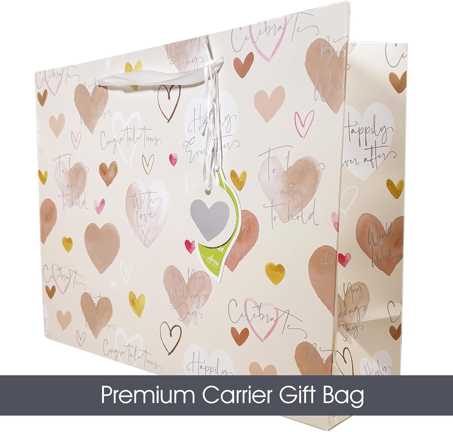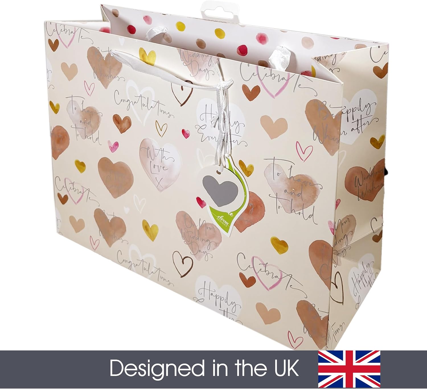 Borsa regalo di nozze di alta qualità - 35 cm di larghezza x 28 cm di altezza x 14 cm di profondità - Interno stampato - Progettato nel Regno Unito - Borsa regalo riciclabile e sostenibile