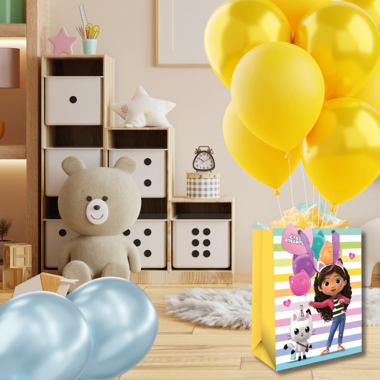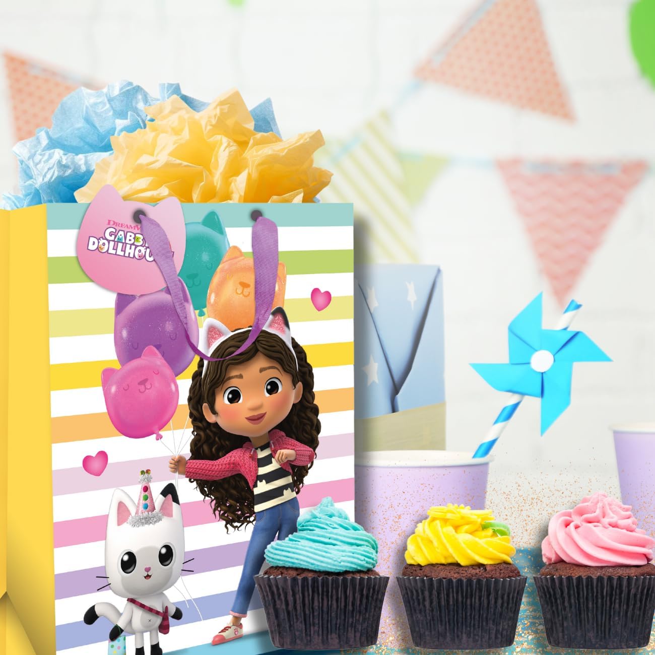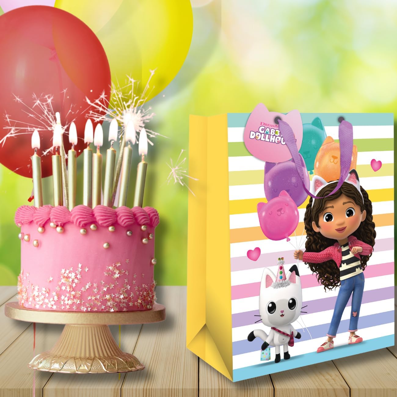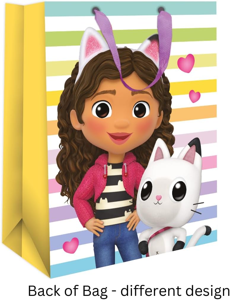 La casa delle bambole di Gabby è una serie Netflix colorata e interattiva in cui Gabby e i suoi amici felini esplorano una magica casa delle bambole. Ogni episodio fonde l'animazione con l'azione dal vivo, piena di creatività, risoluzione di problemi e deliziose sorprese, rendendolo perfetto per i giovani avventurieri. Metti un sorriso sul volto del destinatario. La nostra gamma di sacchetti regalo con licenza completa è un'aggiunta brillante e memorabile a qualsiasi regalo per un amico o un familiare speciale. Con il design più attuale sul mercato, questa borsa regalo Gabbys Dollhouse è il regalo perfetto per quella persona speciale. 【Ottimo per l'ambiente】 I nostri sacchetti regalo sono realizzati con prodotti certificati FSC che hanno superato le più severe normative ambientali. La confezione regalo è completamente riciclabile. Realizzato dall'editore autorizzato numero uno in Europa: ogni prodotto Danilo ha una licenza ufficiale al 100%. Ciò garantisce che il prodotto è stato approvato dalle leggi stesse e presenta i design più recenti e attuali sui nostri sacchetti regalo. Le dimensioni di questa borsa regalo sono 33 cm x 26 cm x 13,5 cm di larghezza e si adattano a una varietà di regali