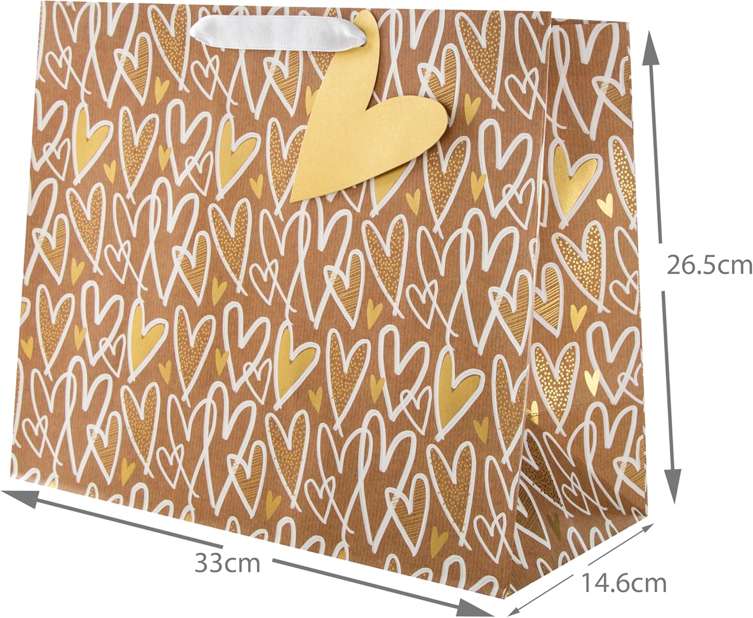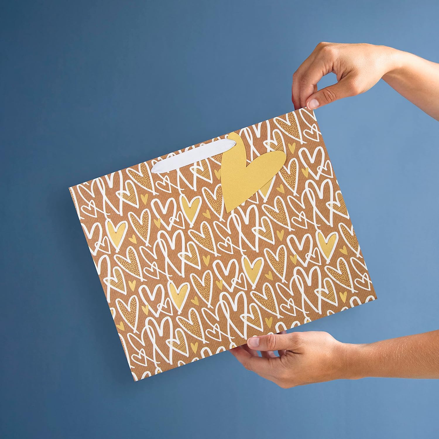 Regala loro tutto l'amore del mondo e anche tutti i regali, con questa bellissima borsa regalo con stampa a cuore di Hallmark Borsa regalo e targhetta con dettagli in lamina d'oro e manici in nastro gros grain bianco Questo prodotto è realizzato con materiale proveniente da foreste ben gestite, certificate FSC e altre fonti controllate Viene fornito completo di targhetta regalo stampata a forma di cuore abbinata Dimensioni della borsa regalo: 26,5 x 33 x 14,6 cm