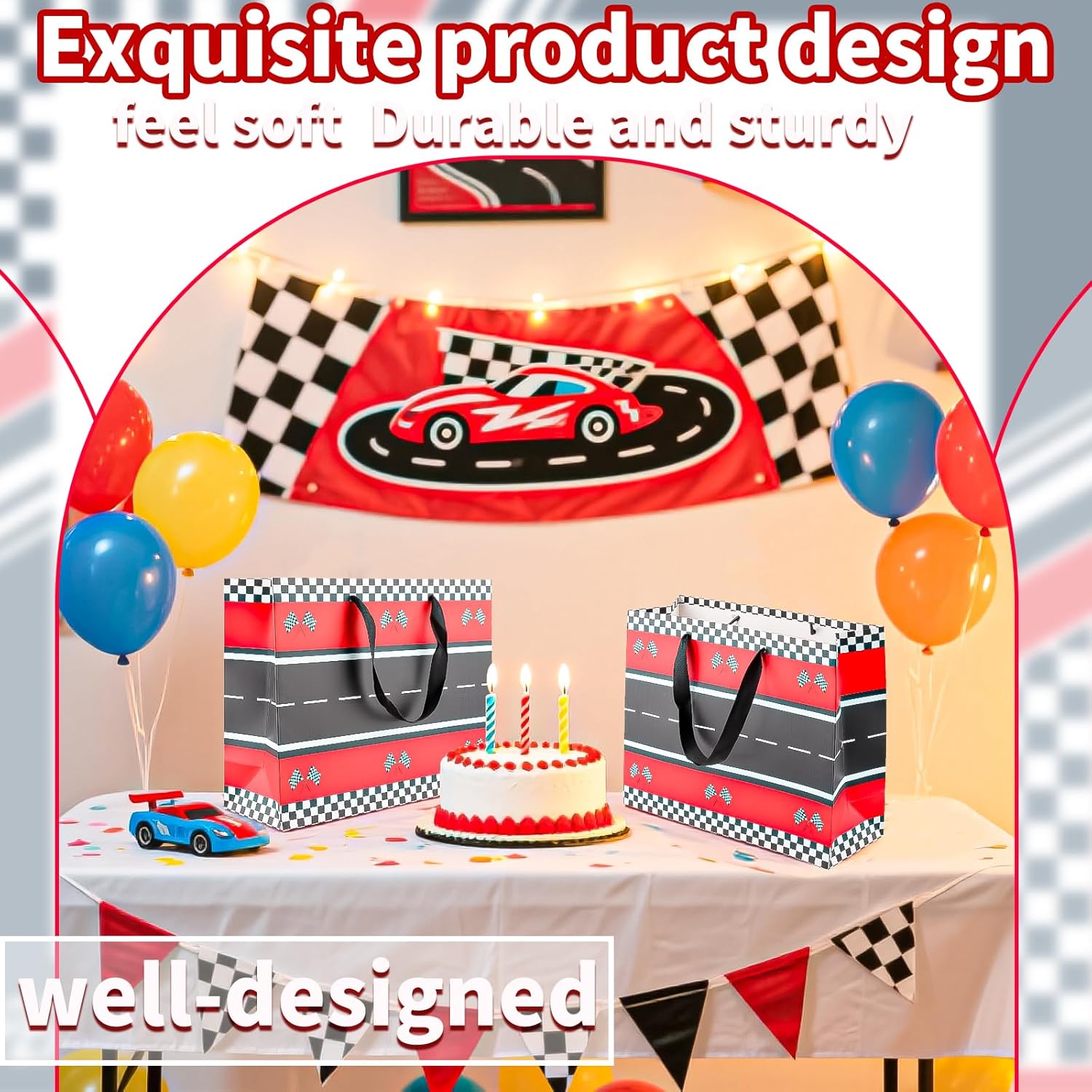 Informazioni sui sacchetti regalo: viene fornito con 2 sacchetti regalo per auto da corsa grandi con 1 nastro rosso. Le dimensioni del sacchetto regalo sono 33x25,9x14 cm/12,99x10,19x5,51 pollici. Questa borsa regalo di compleanno rosa è una delle confezioni regalo più adatte, sufficiente per soddisfare le tue esigenze. 【BORSE REGALO COMPLEANNO】: Le borse regalo con manici sono abbastanza robuste e resistenti e possono essere utilizzate per trasportare regali per ridurre il rischio di strappi. Realizzato in cartone di alta qualità, il manico è fissato con colla di alta qualità, riutilizzabile ed ecologico. Puoi sostituire i tuoi sacchetti di plastica puzzolenti con questi sacchetti di carta per compleanno super ecologici. 【IDEALE PER CONFEZIONARE REGALO DURANTE】: Queste borse per feste di compleanno sono molto adatte per la maggior parte delle confezioni regalo, possono contenere qualsiasi regalo per bambini, adolescenti e adulti. Puoi usarlo per feste di compleanno, regali di compleanno, confezioni regalo di compleanno, decorazioni di compleanno, confezioni regalo. 【CONFEZIONE REGALO DELICATA D'ASPETTO】: le borse di compleanno nere e rosse sono significative per festeggiare il tuo compleanno. Bellissimi nastri, biglietti d'auguri e carta velina per sacchetti regalo e regali di compleanno, creano un'atmosfera romantica e aggiungono un tocco di eleganza. 【MODELLI A TEMA ACCATTIVANTI】: Le nostre borse per feste di compleanno di Race Car colori vivaci e motivi a tema rosso nero le rendono accattivanti, perfette per bambini, adolescenti e adulti, ragazze, ragazzi, donne e uomini. In caso di problemi, contattaci liberamente. Faremo del nostro meglio per renderti soddisfatto.