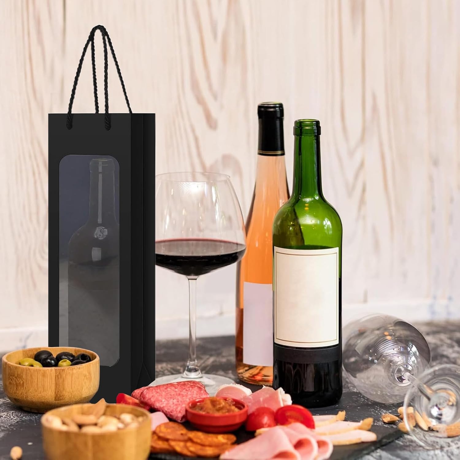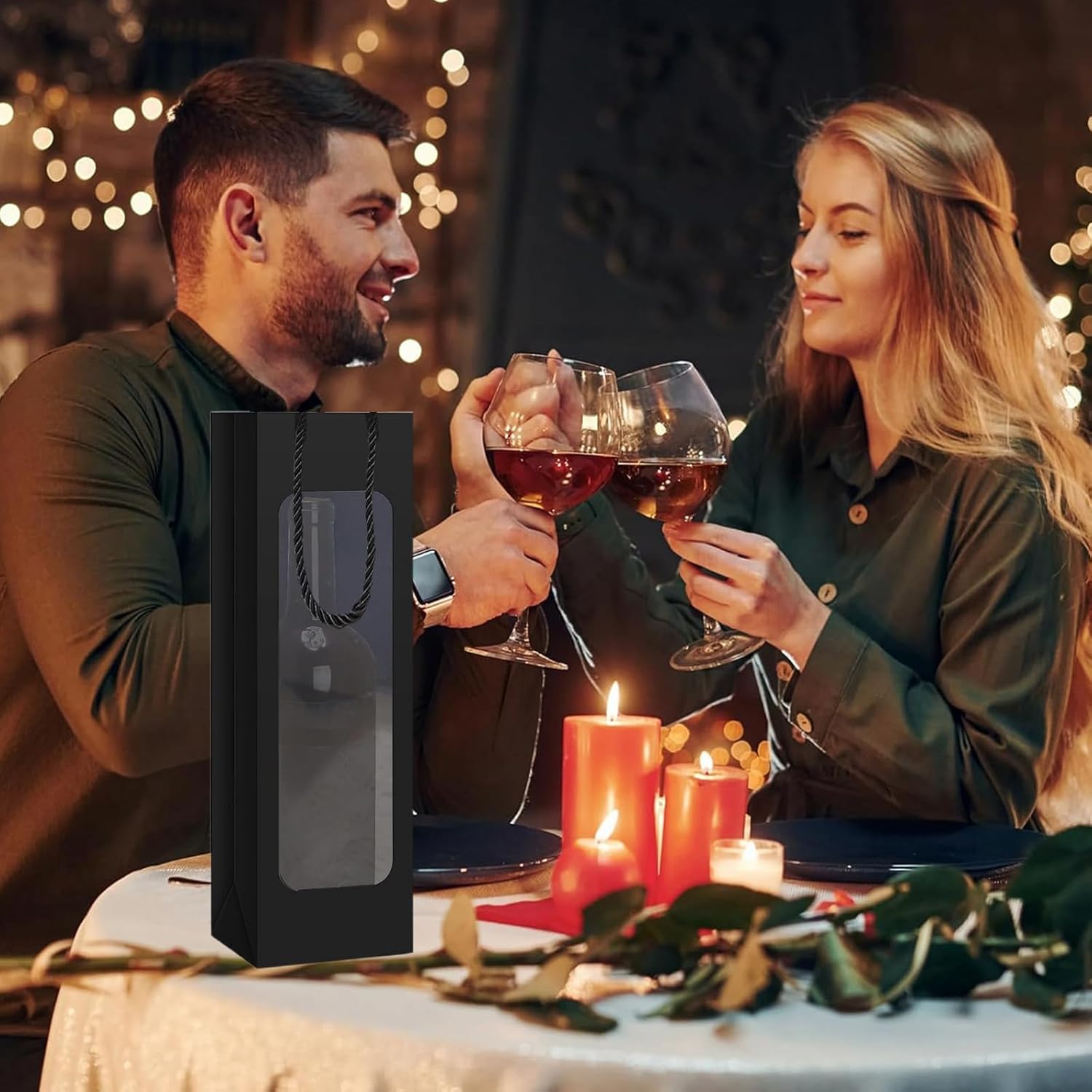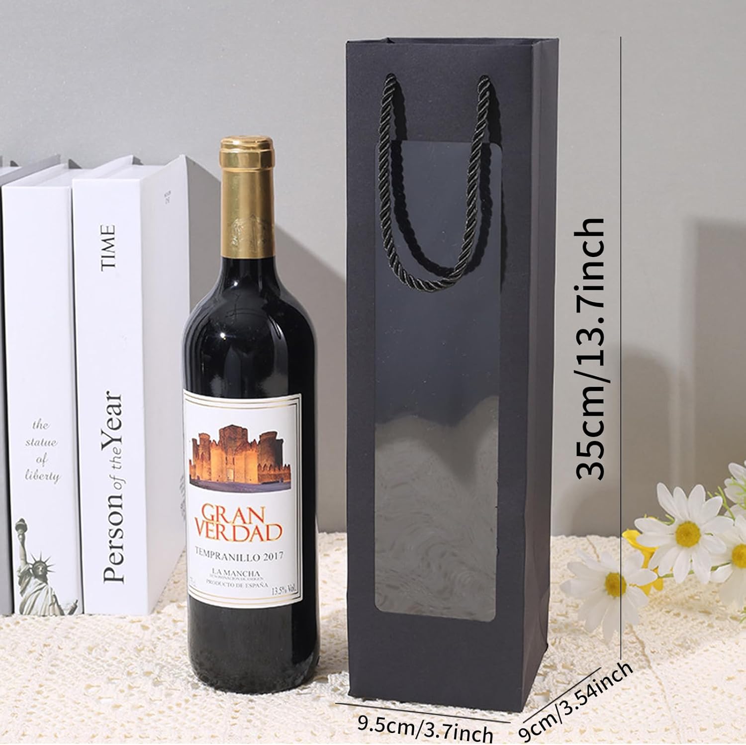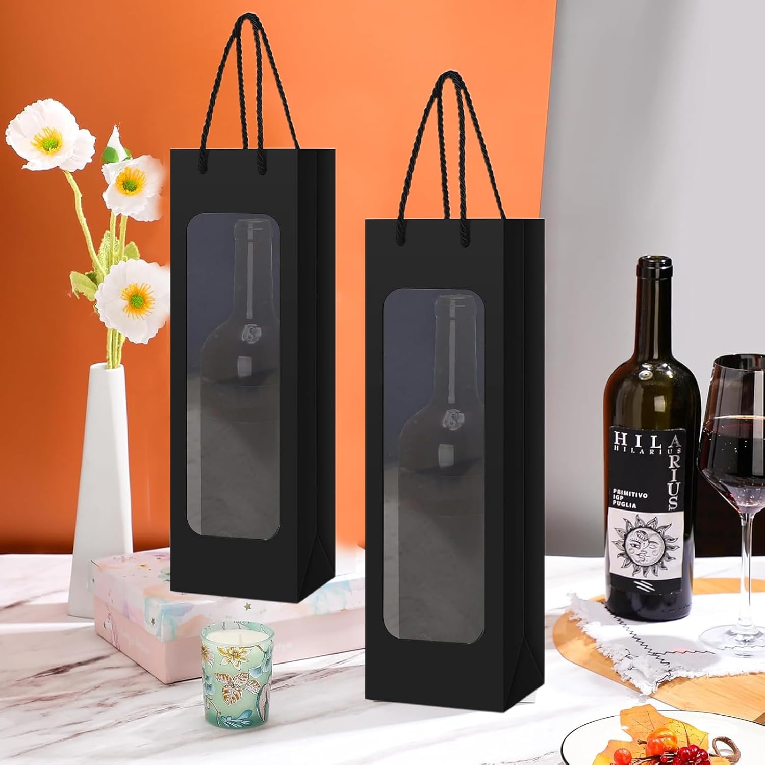 MATERIALE DI ALTA QUALITÀ: i nostri sacchetti regalo per bottiglie di vino sono realizzati in resistente carta kraft che garantisce che la borsa non si strappi o si rompa facilmente. Il materiale garantisce un utilizzo affidabile e duraturo e protegge in modo ottimale ogni bottiglia di vino durante il trasporto e durante il regalo. DESIGN SEMPLICE ED ELEGANTE: i nostri sacchetti regalo per vino sono rifiniti in un nero classico ed elegante che aggiungerà un tocco speciale al tuo regalo. Il colore neutro è adatto sia per uomini che per donne ed è ideale per la maggior parte delle occasioni, che si tratti di un compleanno, di un anniversario o di Natale. Design trasparente: i nostri sacchetti regalo per vino sono dotati di una finestra trasparente che consente una visione chiara del contenuto del sacchetto. Oltre alle bottiglie di vino strette, sono adatte anche per bottiglie di champagne e spumanti. DIMENSIONE PERFETTA: la confezione include 12 sacchetti regalo per vino con lacci. La dimensione dei sacchetti di carta è 9,5 x 9 x 35 cm, ideale per confezionare una bottiglia di vino. I sacchetti di carta kraft sono facili da piegare e riporre, occupano poco spazio, rendendoli perfetti per la conservazione e l'uso. MULTIUSO - Le buste per vino possono essere utilizzate per diversi tipi di bottiglie di vino. Queste borse resistenti sono riutilizzabili e perfette per ogni occasione e festività come Natale, Ringraziamento, anniversari e regali di compleanno.