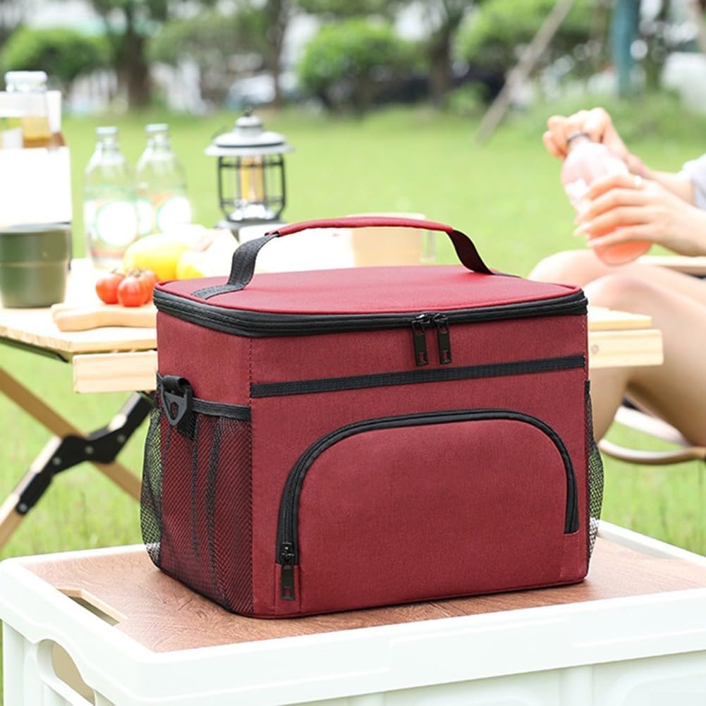 [Eccellente isolamento termico] La borsa termica per il pranzo presenta un design di isolamento termico a tre strati che mantiene efficacemente il cibo caldo o freddo per ore, rendendolo perfetto per pranzi, picnic e viaggi su strada. Struttura a prova di perdite: realizzata con fodera in PEVA ultra spessa e cuciture saldate a caldo, questa borsa assicura che non si verifichino perdite, proteggendo il cibo da fuoriuscite pur essendo facile da pulire con una semplice salvietta. [Spazioso e organizzato] Misura 20,3 x 20,8 x 21,8 cm, offre ampio spazio con uno scomparto principale per cibo e bevande, una tasca frontale per oggetti essenziali come chiavi e caricabatterie, oltre a due tasche in rete per bottiglie. Opzioni di trasporto: progettata con un manico robusto e una tracolla regolabile, questa borsa consente una comoda portabilità a mano o fissandola saldamente a uno zaino o una valigetta. Elegante e funzionale: con il suo design moderno e leggero adatto sia per uomini che per donne, questa borsa per il pranzo riutilizzabile funge da borsa per il pranzo, borsa da picnic o accessorio per la spesa, rendendola essenziale per la vita quotidiana.