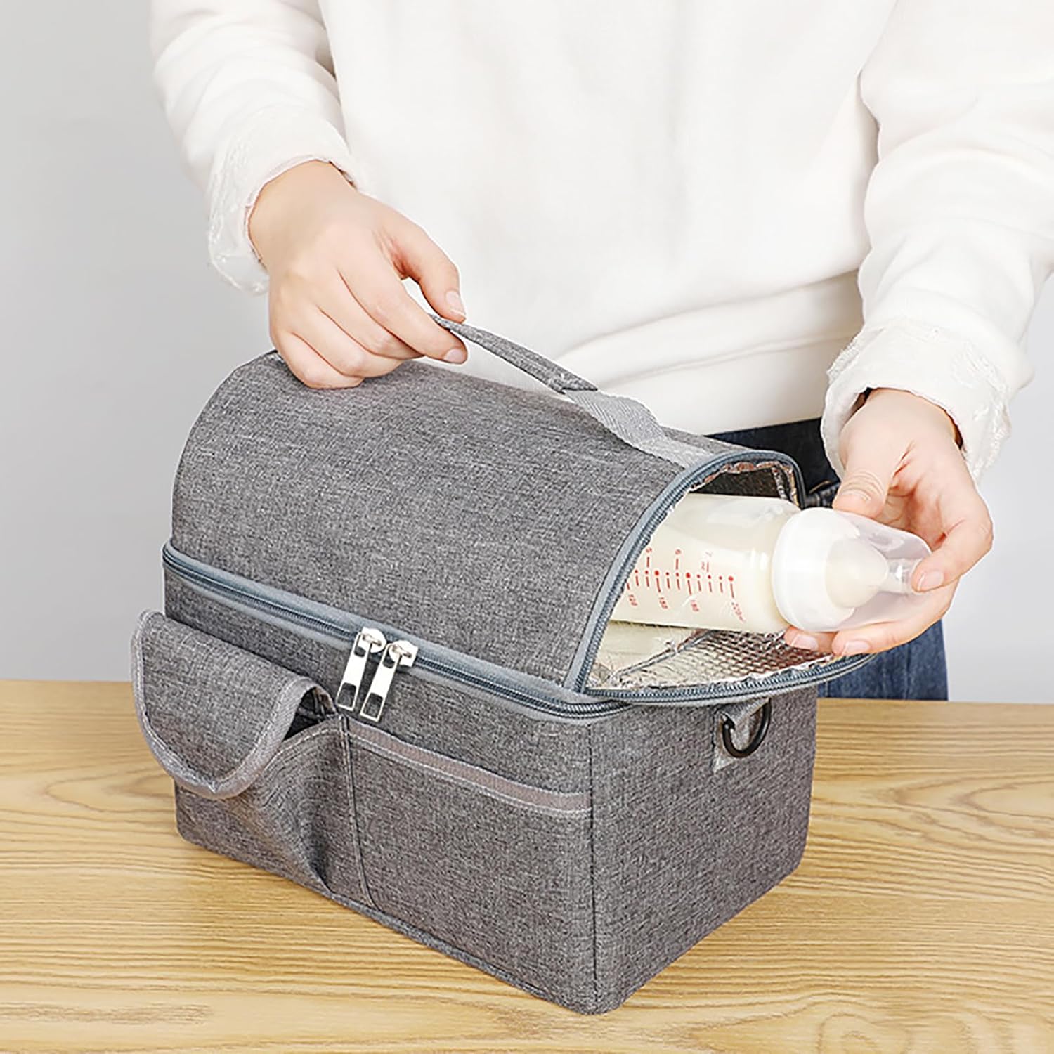 [Presto spazioso] Questa borsa termica presenta una capacità eccezionalmente grande che soddisfa tutte le tue esigenze di cibo e bevande in un unico comodo pacchetto. Che tu stia preparando un pranzo per il lavoro, la scuola o un picnic in famiglia, questa borsa ti garantirà spazio sufficiente per tutto e manterrà i tuoi pasti freschi e organizzati. [Controllo della temperatura] Con uno strato isolante di alta qualità tra gli strati interno ed esterno, questa borsa termica mantiene efficacemente la temperatura desiderata per cibi e bevande. Che tu abbia bisogno di mantenere gli oggetti caldi o freddi, questa borsa garantisce che i tuoi pasti rimangano alla stessa temperatura per ore. [Conservazione organizzata] Con la sua innovativa struttura a doppio strato, questa borsa termica offre opzioni di conservazione versatili. Puoi separare facilmente cibo e bevande o mantenere gli oggetti ordinatamente organizzati. Questa funzionalità è particolarmente utile per i genitori che hanno bisogno di portare con sé più biberon e pasti mentre sono in movimento. [Adatto alle famiglie] Progettata pensando ai genitori impegnati, questa borsa termica è adatta a mamme e papà che hanno bisogno di trasportare biberon e cibo. Il suo interno spazioso può ospitare più bottiglie e pasti, rendendolo un accessorio essenziale per le famiglie sempre in movimento. [Facile da trasportare] Dotata di una maniglia robusta e comoda, questa borsa termica è incredibilmente facile da trasportare e trasportare. Il design leggero e la comodità portatile lo rendono ideale per picnic, lavoro, scuola o attività all'aperto. Goditi la libertà di consumare i tuoi pasti con facilità.
