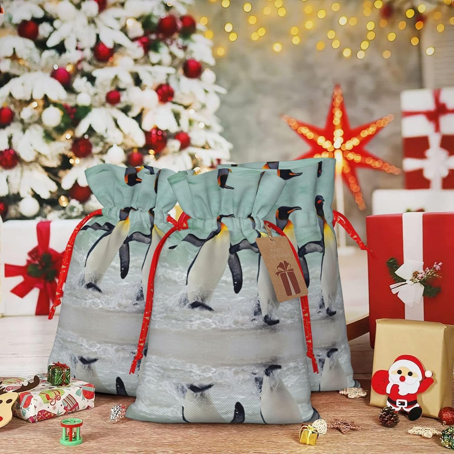 BORSE REGALO DI ALTO VALORE: la graziosa borsa a forma di pinguino è dotata di sacchetti regalo con cordoncini colorati ed etichette. I sacchetti regalo sono aggiornati con un design con chiusura a coulisse, sacchetti regalo realizzati in poliestere, resistenti e riutilizzabili. Non si strappano come la carta, ottimi per incartare i regali. 10 secondi per incartare un regalo: il simpatico sacchetto del pinguino per confezionare facilmente i regali, è facile da usare, basta inserire il regalo nei sacchetti, far scorrere l'etichetta regalo attraverso il nastro, tirare il nastro, annodare un fiocco e il gioco è fatto. Puoi evitare il fastidio associato a carta da imballaggio, forbici, nastro adesivo e nastro, risparmiare tempo e molto conveniente. Dimensioni del sacchetto regalo: i sacchetti regalo in 2 dimensioni possono soddisfare le preferenze di diverse persone e sono sufficienti per l'uso quotidiano e la festa di Natale. La S misura 12 x 17,5 cm e la M misura 12 x 30 cm. Sacchetti regalo in formati assortiti sfusi, perfetti per confezionare regali di diverse dimensioni. REGALO NEL REGALO: questi adorabili sacchetti regalo con pinguini possono essere riutilizzati molte volte. Un set di sacchetti regalo riutilizzabili sarà un'aggiunta meravigliosa a qualsiasi regalo e migliorerà l'esperienza complessiva del regalo. Inoltre, abbiamo rinforzato il fondo per una maggiore stabilità e una struttura robusta con carichi pesanti. Non facile da rompere per un uso durevole e duraturo. Sacchetti regalo multifunzionali: questi simpatici sacchetti natalizi con pinguini possono essere utilizzati per conservare regali di Natale, giocattoli, bambole, cappelli natalizi, caramelle e regali durante una festa di Natale. Conservare i regali in questa borsa darà ai bambini più sorprese perché non sanno cosa c'è dentro.