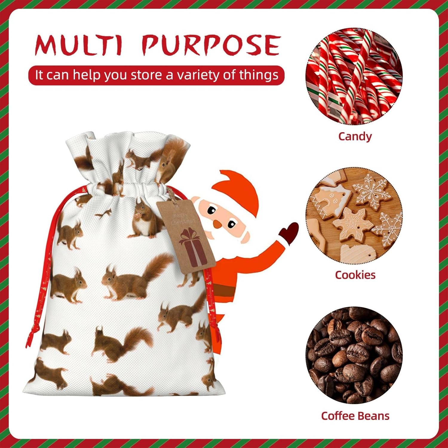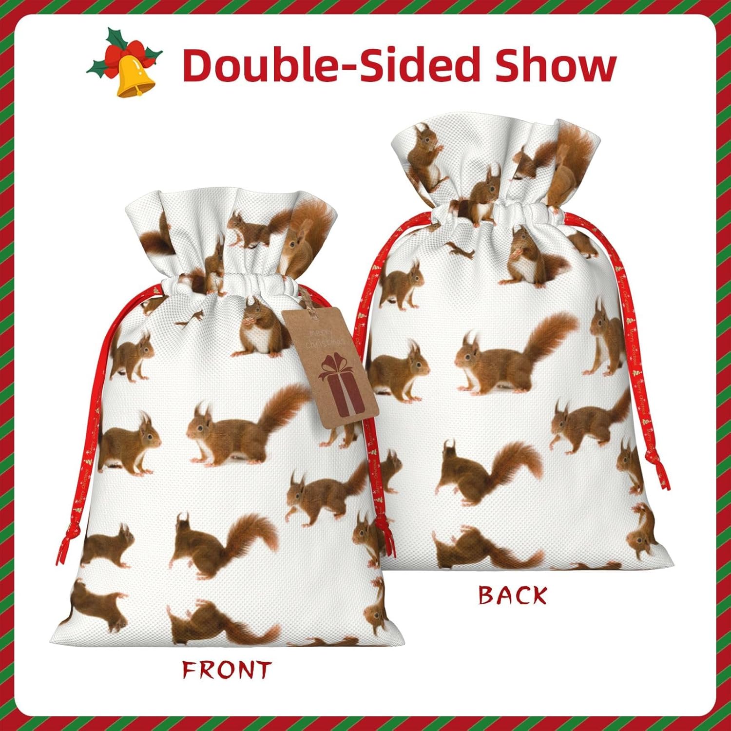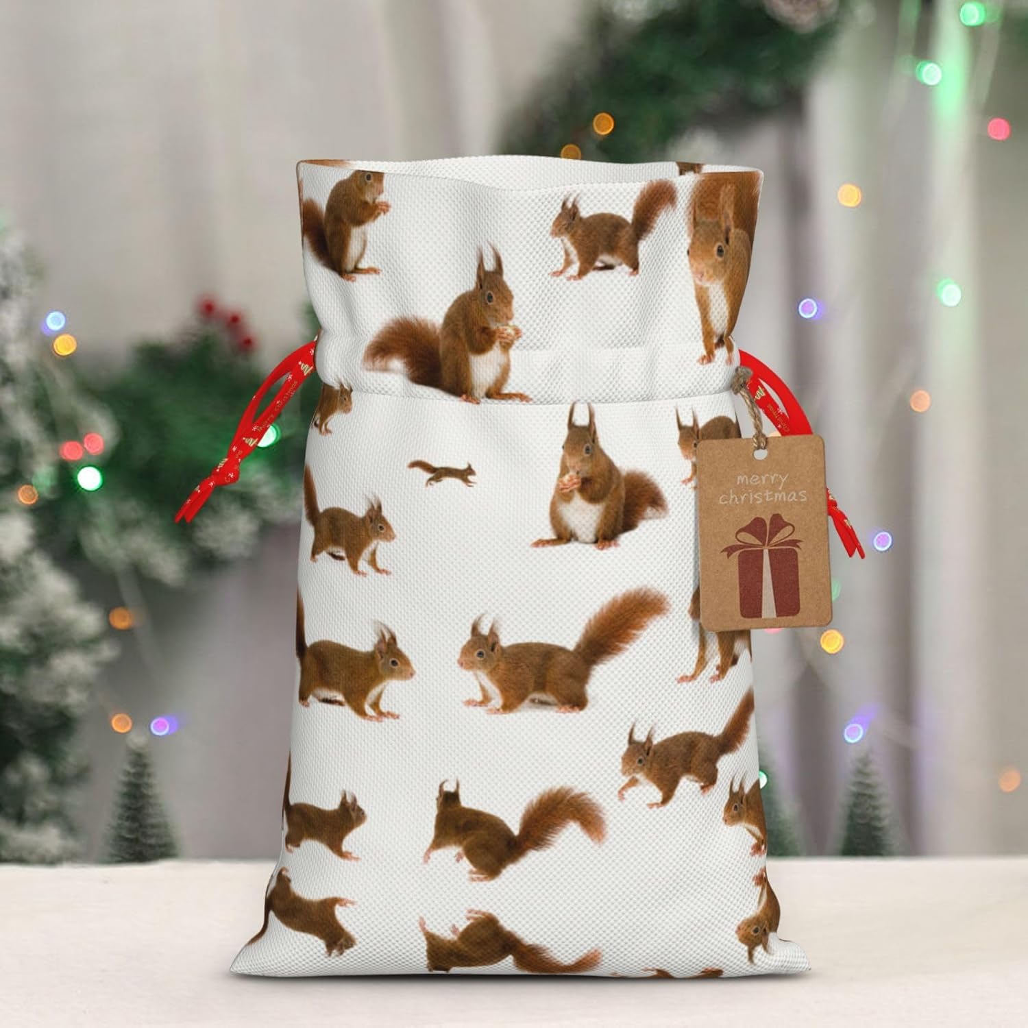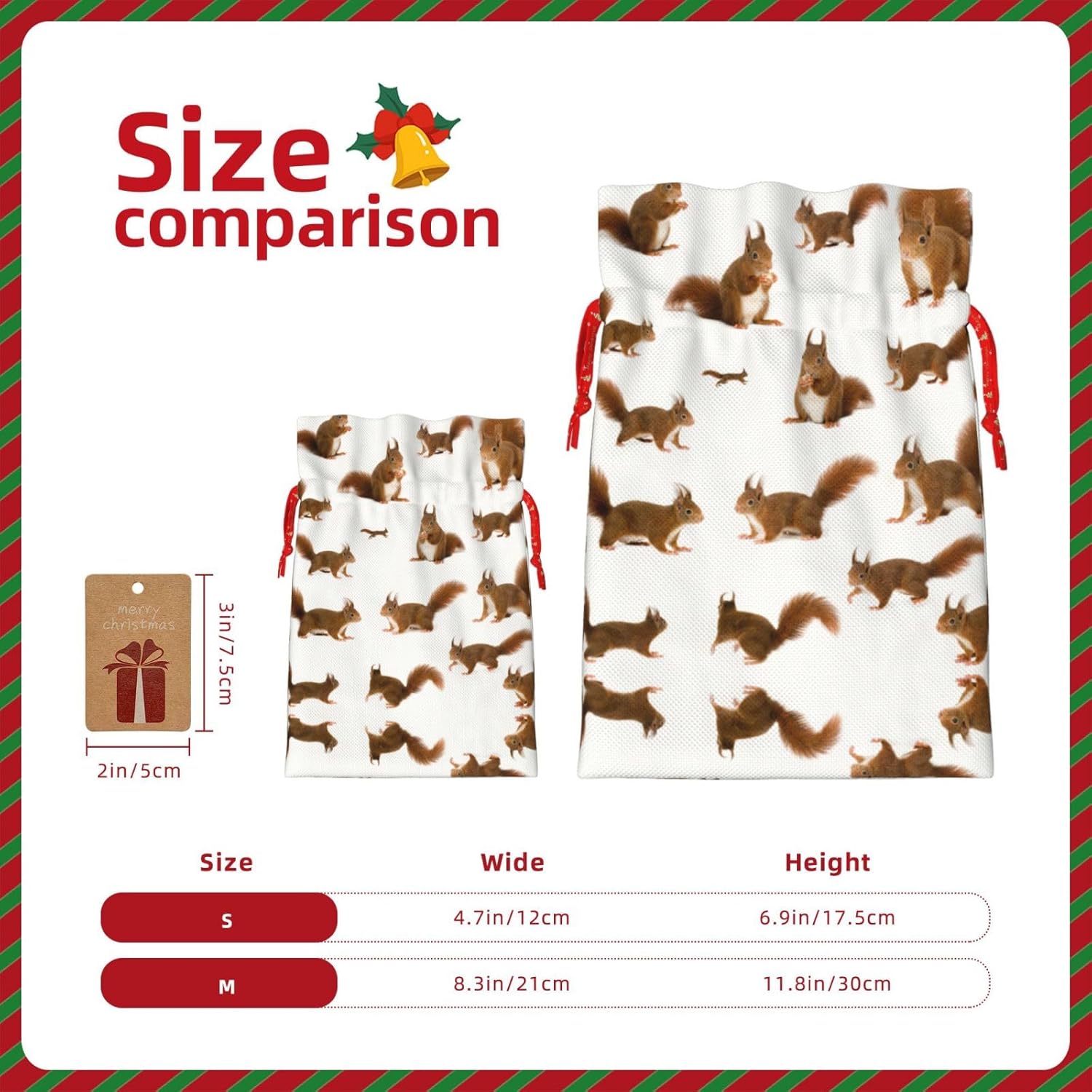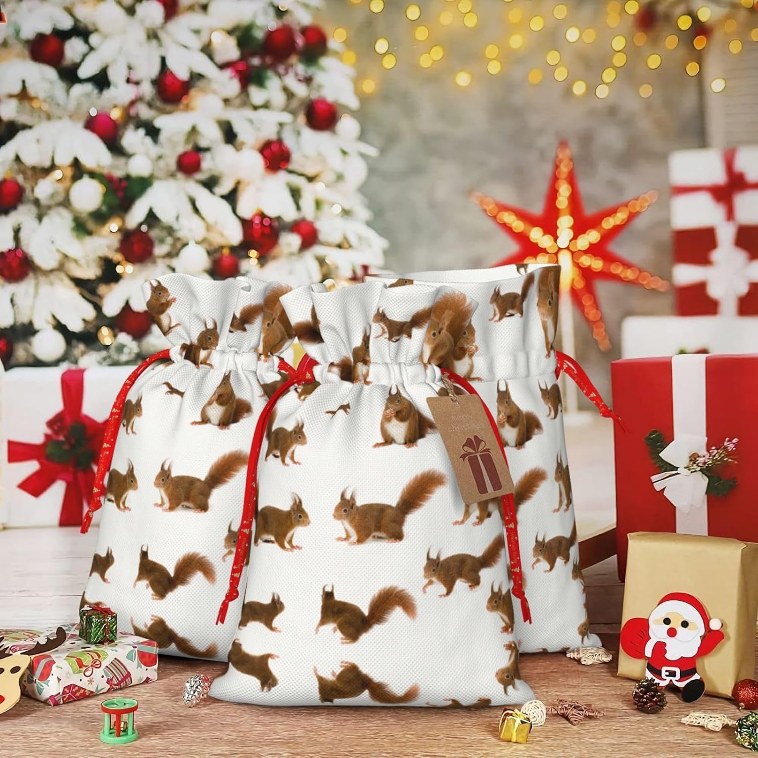 BORSE REGALO DI ALTO VALORE: la graziosa borsa scoiattolo è dotata di sacchetti regalo con cordoncini colorati ed etichette. I sacchetti regalo sono aggiornati con un design con chiusura a coulisse, sacchetti regalo realizzati in poliestere, resistenti e riutilizzabili. Non si strappano come la carta, ottimi per incartare i regali. 10 secondi per incartare un regalo: il simpatico sacchetto di scoiattolo per confezionare facilmente i regali, è facile da usare, basta inserire il regalo nei sacchetti, far scorrere l'etichetta regalo attraverso il nastro, tirare il nastro, annodare un fiocco e il gioco è fatto. Puoi evitare il fastidio associato a carta da imballaggio, forbici, nastro adesivo e nastro, risparmiare tempo e molto conveniente. Dimensioni del sacchetto regalo: i sacchetti regalo in 2 dimensioni possono soddisfare le preferenze di diverse persone e sono sufficienti per l'uso quotidiano e la festa di Natale. La S misura 12 x 17,5 cm e la M misura 12 x 30 cm. Sacchetti regalo in formati assortiti sfusi, perfetti per confezionare regali di diverse dimensioni. REGALO NEL REGALO: questi adorabili sacchetti regalo a forma di scoiattolo possono essere riutilizzati molte volte. Un set di sacchetti regalo riutilizzabili sarà un'aggiunta meravigliosa a qualsiasi regalo e migliorerà l'esperienza complessiva del regalo. Inoltre, abbiamo rinforzato il fondo per una maggiore stabilità e una struttura robusta con carichi pesanti. Non facile da rompere per un uso durevole e duraturo. Sacchetti regalo multifunzionali: questi graziosi sacchetti a forma di scoiattolo possono essere utilizzati per conservare regali di Natale, giocattoli, bambole, cappelli di Natale, caramelle e regali durante la festa di Natale. Conservare i regali in questa borsa darà ai bambini più sorprese perché non sanno cosa c'è dentro.