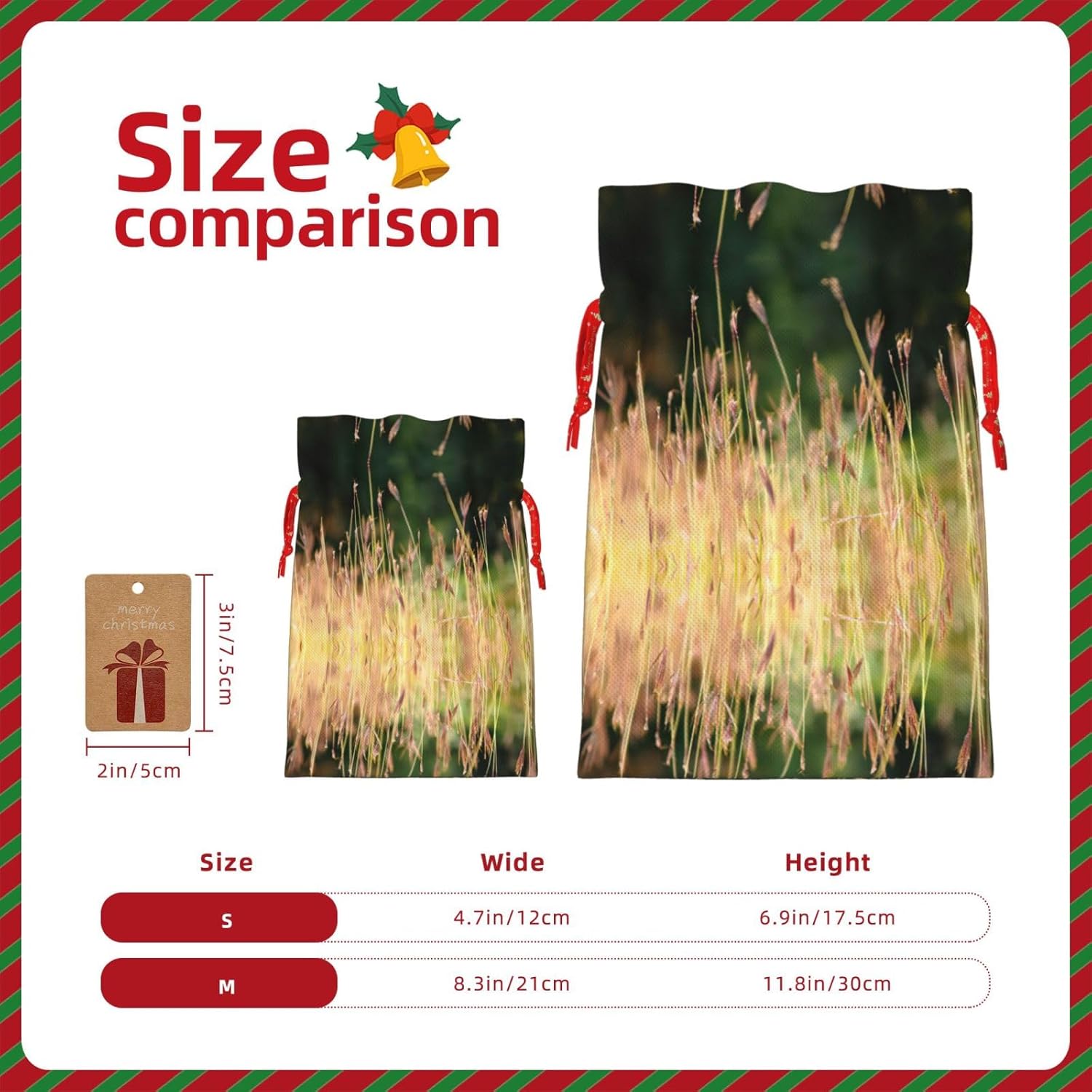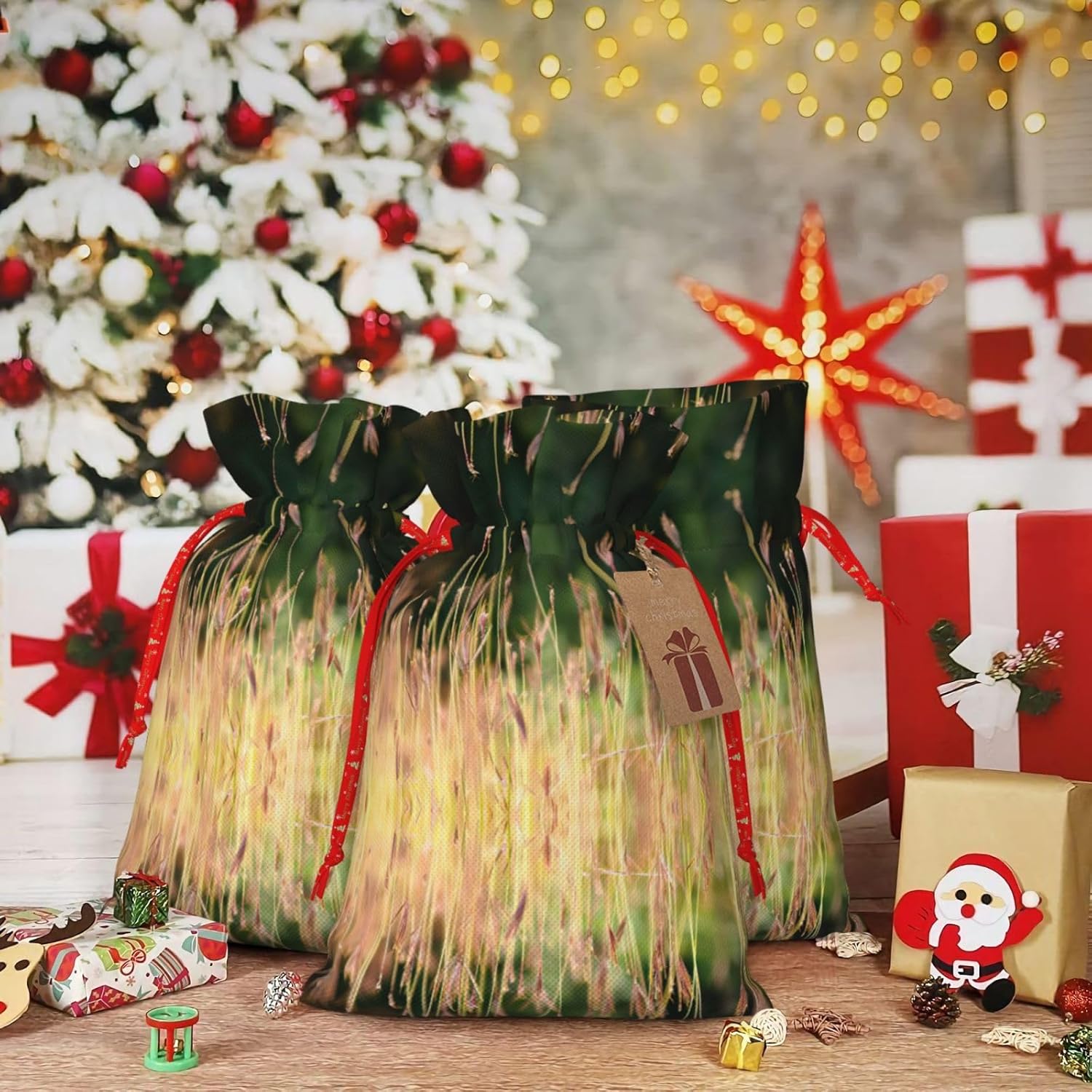 BORSE REGALO DI ALTO VALORE: la borsa Grasses View è dotata di sacchetti regalo con cordoncini colorati ed etichette. I sacchetti regalo sono aggiornati con un design con chiusura a coulisse, sacchetti regalo realizzati in poliestere, resistenti e riutilizzabili. Non si strappano come la carta, ottimi per incartare i regali. 10 secondi per incartare un regalo: borsa Grasses View per confezionare facilmente i regali, è facile da usare, basta inserire il regalo nelle buste, far scorrere l'etichetta regalo attraverso il nastro, tirare il nastro, annodare un fiocco e il gioco è fatto. Puoi evitare il fastidio associato a carta da imballaggio, forbici, nastro adesivo e nastro, risparmiare tempo e molto conveniente. Dimensioni del sacchetto regalo: i sacchetti regalo in 2 dimensioni possono soddisfare le preferenze di diverse persone e sono sufficienti per l'uso quotidiano e la festa di Natale. La S misura 12 x 17,5 cm e la M misura 12 x 30 cm. Sacchetti regalo in formati assortiti sfusi, perfetti per confezionare regali di diverse dimensioni. Un regalo nel regalo: questi sacchetti regalo Grasses View possono essere riutilizzati più volte. Un set di sacchetti regalo riutilizzabili sarà un'aggiunta meravigliosa a qualsiasi regalo e migliorerà l'esperienza complessiva del regalo. Inoltre, abbiamo rinforzato il fondo per una maggiore stabilità e una struttura robusta con carichi pesanti. Non facile da rompere per un uso durevole e duraturo. Sacchetti regalo multifunzionali: questi sacchetti regalo di Natale possono essere utilizzati per conservare regali di Natale, giocattoli, bambole, cappelli di Natale, caramelle e regali durante una festa di Natale. Conservare i regali in questa borsa darà ai bambini più sorprese perché non sanno cosa c'è dentro.