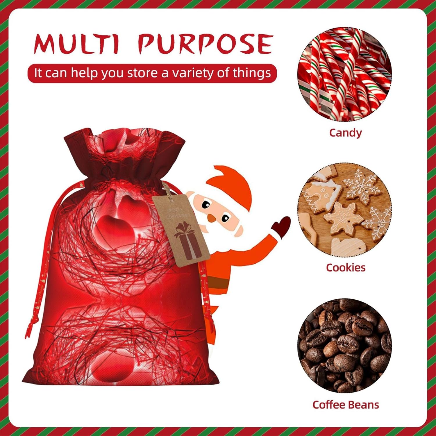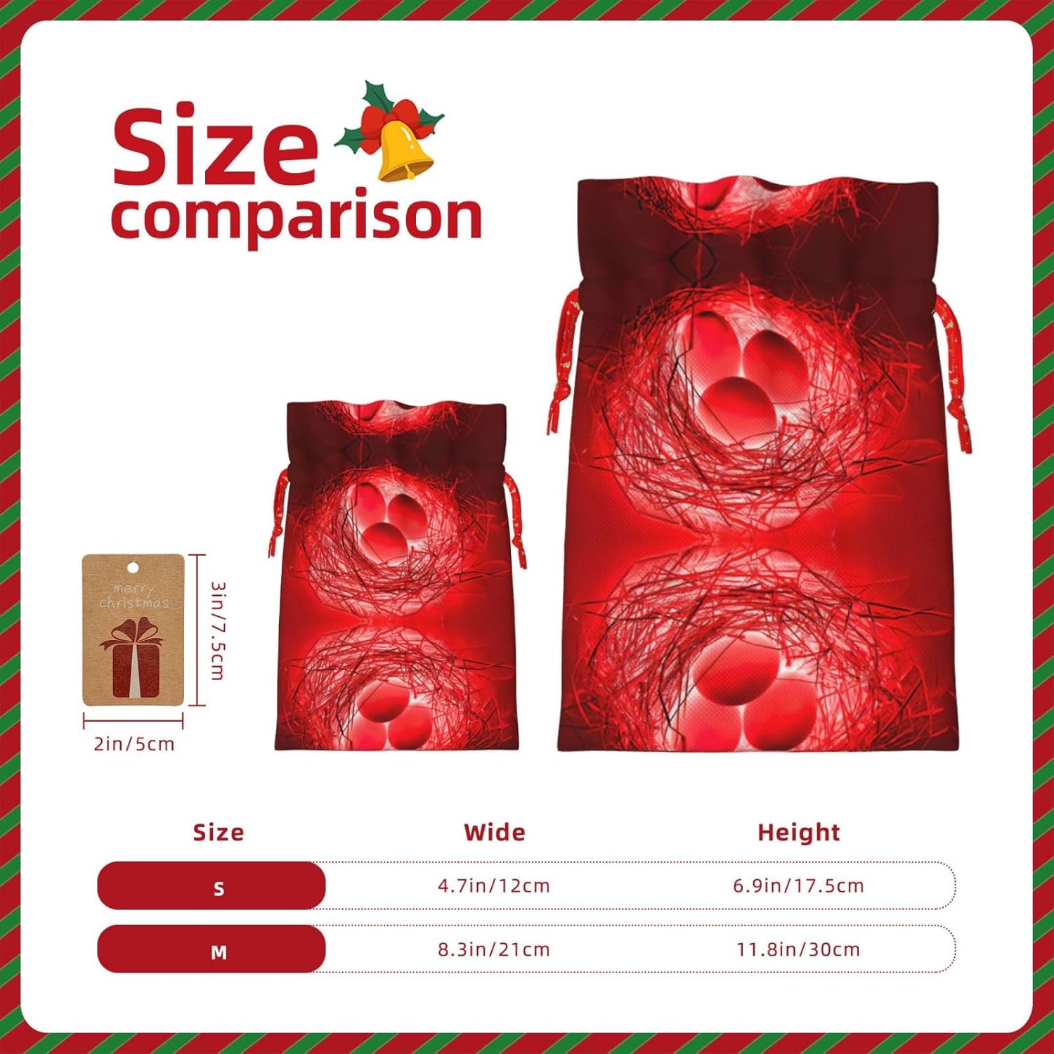 BORSE REGALO DI ALTO VALORE: la borsa Red Eggs è dotata di sacchetti regalo con cordoncini colorati ed etichette. I sacchetti regalo sono aggiornati con un design con chiusura a coulisse, sacchetti regalo realizzati in poliestere, resistenti e riutilizzabili. Non si strappano come la carta, ottimi per incartare i regali. 10 secondi per incartare un regalo: sacchetto Red Eggs per confezionare facilmente i regali, è facile da usare, basta inserire il regalo nei sacchetti, far scorrere l'etichetta regalo attraverso il nastro, tirare il nastro, annodare un fiocco e il gioco è fatto. Puoi evitare il fastidio associato a carta da imballaggio, forbici, nastro adesivo e nastro, risparmiare tempo e molto conveniente. Dimensioni del sacchetto regalo: i sacchetti regalo in 2 dimensioni possono soddisfare le preferenze di diverse persone e sono sufficienti per l'uso quotidiano e la festa di Natale. La S misura 12 x 17,5 cm e la M misura 12 x 30 cm. Sacchetti regalo in formati assortiti sfusi, perfetti per confezionare regali di diverse dimensioni. REGALO NEL REGALO: questi sacchetti regalo con uova rosse possono essere riutilizzati molte volte. Un set di sacchetti regalo riutilizzabili sarà un'aggiunta meravigliosa a qualsiasi regalo e migliorerà l'esperienza complessiva del regalo. Inoltre, abbiamo rinforzato il fondo per una maggiore stabilità e una struttura robusta con carichi pesanti. Non facile da rompere per un uso durevole e duraturo. Sacchetti regalo multifunzionali: questi sacchetti per uova rosse possono essere utilizzati per conservare regali di Natale, giocattoli, bambole, cappelli di Natale, caramelle e regali durante una festa di Natale. Conservare i regali in questa borsa darà ai bambini più sorprese perché non sanno cosa c'è dentro.