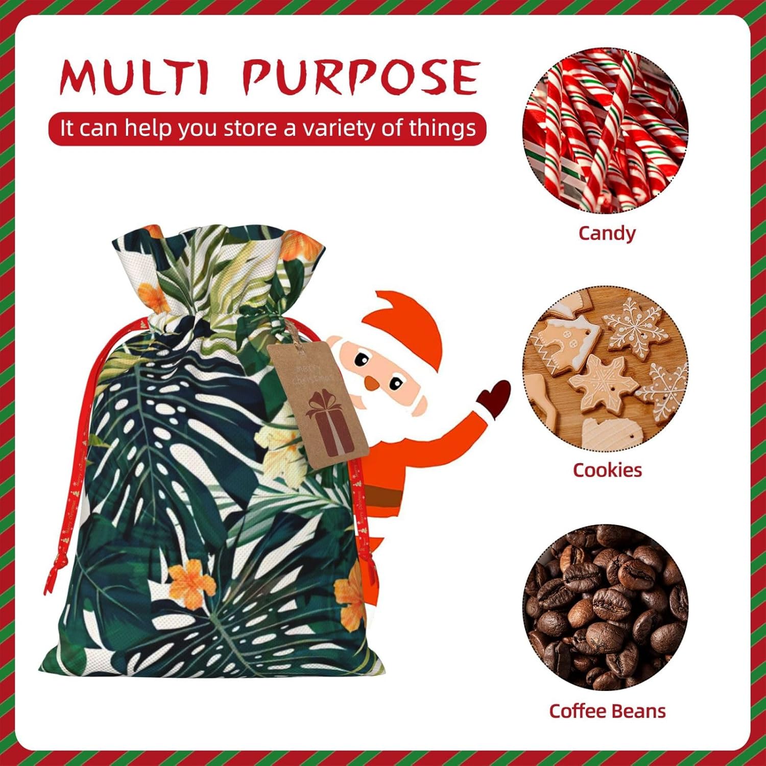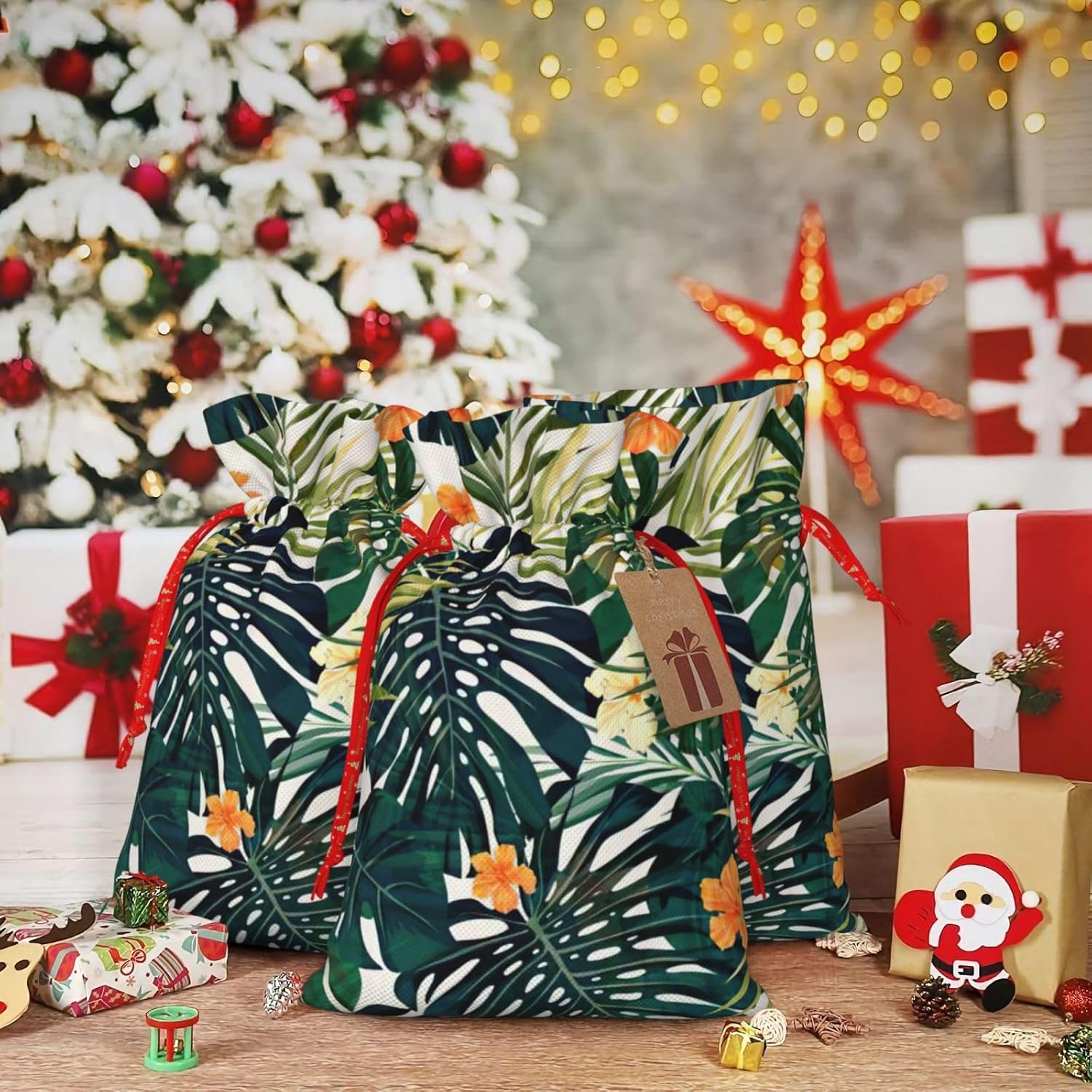 BORSE REGALO DI ALTO VALORE: la borsa estiva tropicale con fiori di palma hawaiana è dotata di sacchetti regalo con cordoncini colorati ed etichette. I sacchetti regalo sono aggiornati con un design con chiusura a coulisse, sacchetti regalo realizzati in poliestere, resistenti e riutilizzabili. Non si strappano come la carta, ottimi per incartare i regali. 10 secondi per incartare un regalo: borsa hawaiana tropicale estiva con fiori di palma per confezionare facilmente i regali, è facile da usare, basta inserire il regalo nelle borse, far scorrere l'etichetta regalo attraverso il nastro, tirare il nastro, annodare un fiocco e il gioco è fatto. Puoi evitare il fastidio associato a carta da imballaggio, forbici, nastro adesivo e nastro, risparmiare tempo e molto conveniente. Dimensioni del sacchetto regalo: i sacchetti regalo in 2 dimensioni possono soddisfare le preferenze di diverse persone e sono sufficienti per l'uso quotidiano e la festa di Natale. La S misura 12 x 17,5 cm e la M misura 12 x 30 cm. Sacchetti regalo in formati assortiti sfusi, perfetti per confezionare regali di diverse dimensioni. REGALO IDEALE: questi sacchetti regalo in foglie di palma hawaiane tropicali possono essere riutilizzati molte volte. Un set di sacchetti regalo riutilizzabili sarà un'aggiunta meravigliosa a qualsiasi regalo e migliorerà l'esperienza complessiva del regalo. Inoltre, abbiamo rinforzato il fondo per una maggiore stabilità e una struttura robusta con carichi pesanti. Non facile da rompere per un uso durevole e duraturo. Sacchetti regalo multifunzionali: questi sacchetti natalizi tropicali estivi hawaiani possono essere utilizzati per conservare regali di Natale, giocattoli, bambole, cappelli natalizi, caramelle e regali durante una festa di Natale. Conservare i regali in questa borsa darà ai bambini più sorprese perché non sanno cosa c'è dentro.