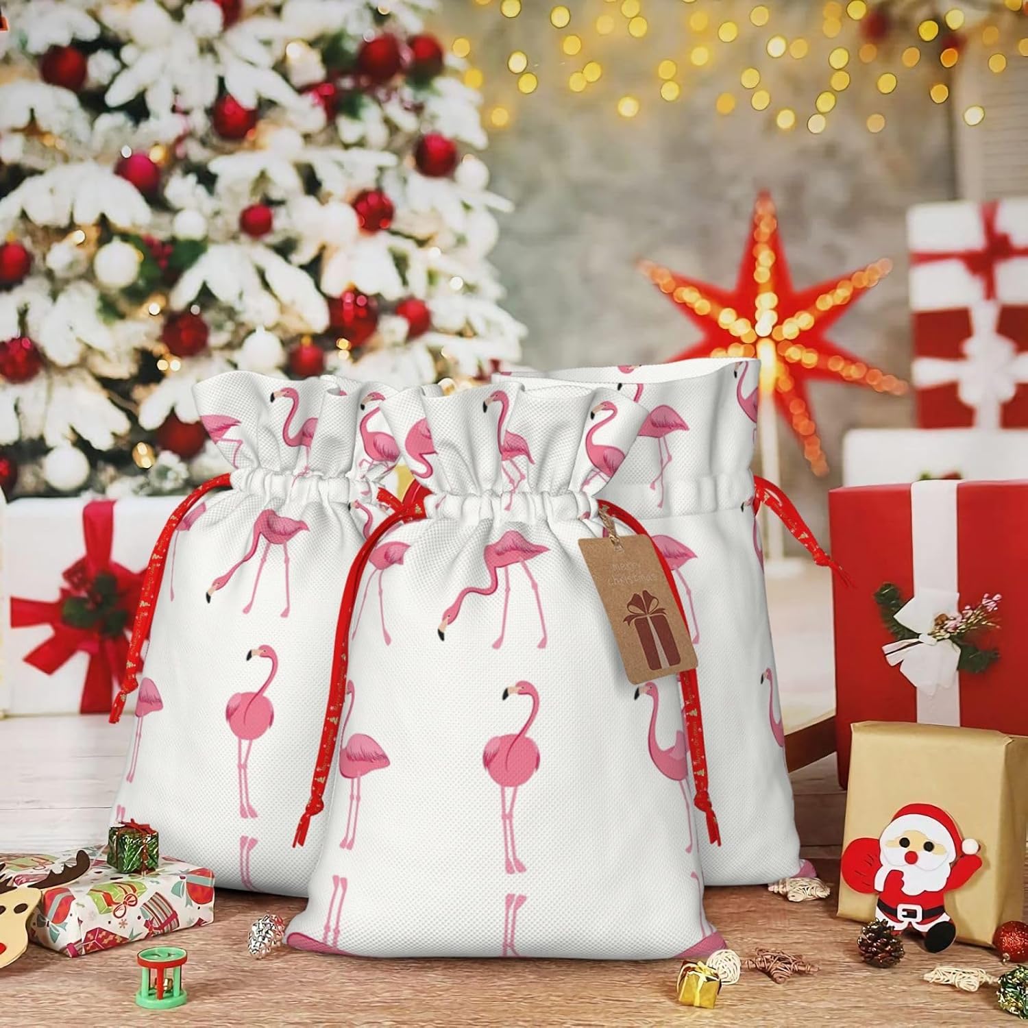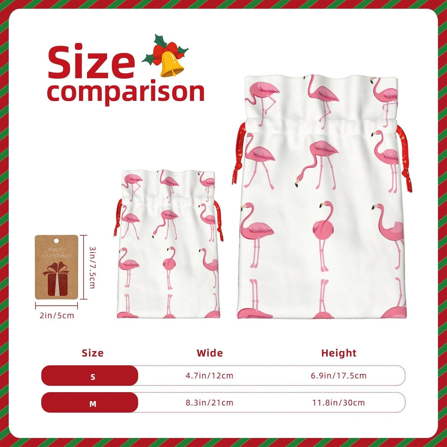 BORSE REGALO DI ALTO VALORE: i fenicotteri su borsa bianca sono dotati di sacchetti regalo con cordoncini colorati ed etichette. I sacchetti regalo sono aggiornati con un design con chiusura a coulisse, sacchetti regalo realizzati in poliestere, resistenti e riutilizzabili. Non si strappano come la carta, ottimi per incartare i regali. 10 secondi per incartare un regalo: fenicotteri su un sacchetto bianco per confezionare facilmente un regalo, è facile da usare, basta inserire il regalo nei sacchetti, far scorrere l'etichetta regalo attraverso il nastro, tirare il nastro, annodare un fiocco e il gioco è fatto. Puoi evitare il fastidio associato a carta da imballaggio, forbici, nastro adesivo e nastro, risparmiare tempo e molto conveniente. Dimensioni del sacchetto regalo: i sacchetti regalo in 2 dimensioni possono soddisfare le preferenze di diverse persone e sono sufficienti per l'uso quotidiano e la festa di Natale. La S misura 12 x 17,5 cm e la M misura 12 x 30 cm. Sacchetti regalo in formati assortiti sfusi, perfetti per confezionare regali di diverse dimensioni. Regalo nel regalo: questi fenicotteri su sacchetti regalo bianchi possono essere riutilizzati molte volte. Un set di sacchetti regalo riutilizzabili sarà un'aggiunta meravigliosa a qualsiasi regalo e migliorerà l'esperienza complessiva del regalo. Inoltre, abbiamo rinforzato il fondo per una maggiore stabilità e una struttura robusta con carichi pesanti. Non facile da rompere per un uso durevole e duraturo. Sacchetti regalo multifunzionali: questi fenicotteri su sacchetti bianchi possono essere utilizzati per conservare regali di Natale, giocattoli, bambole, cappelli di Natale, caramelle e regali durante una festa di Natale. Conservare i regali in questa borsa darà ai bambini più sorprese perché non sanno cosa c'è dentro.