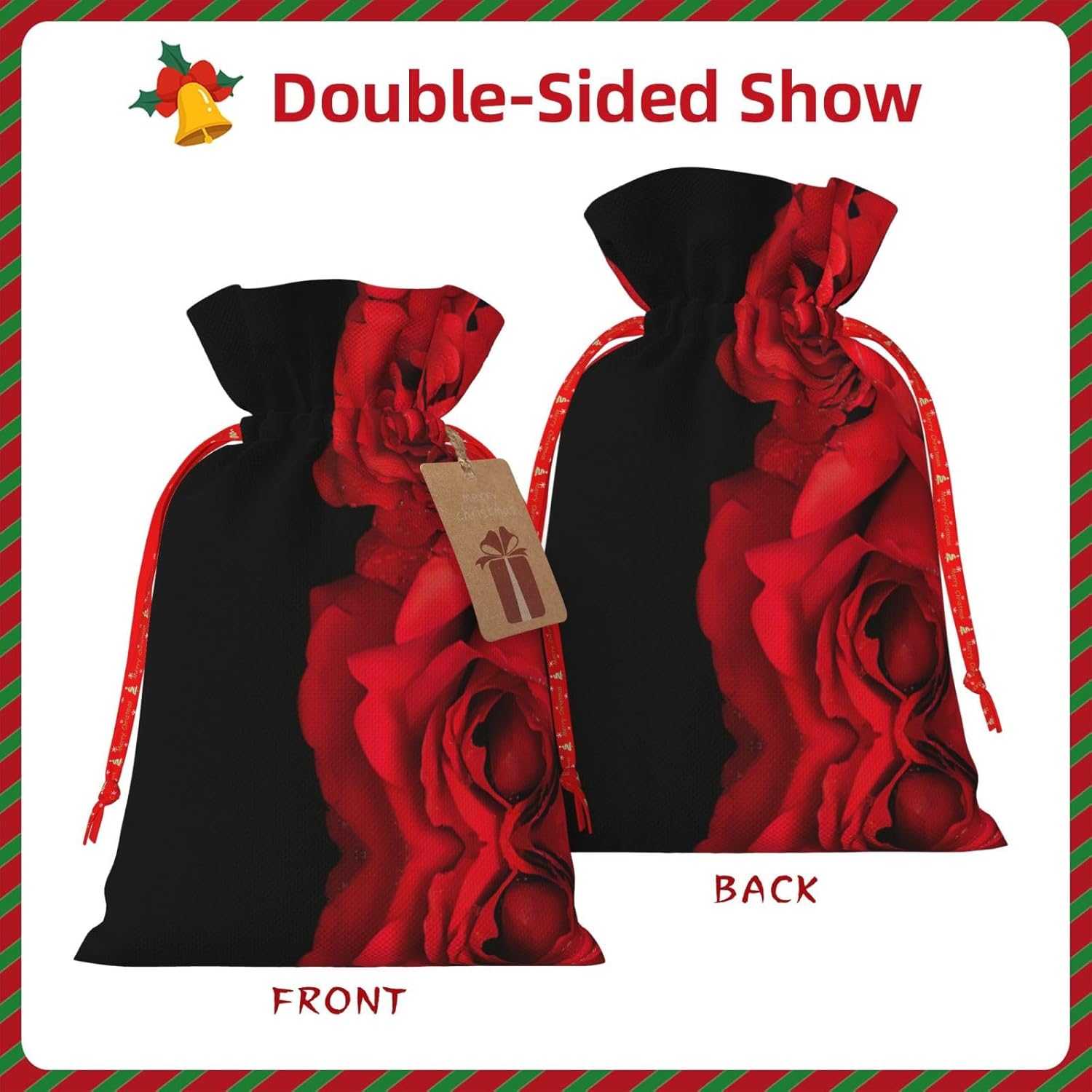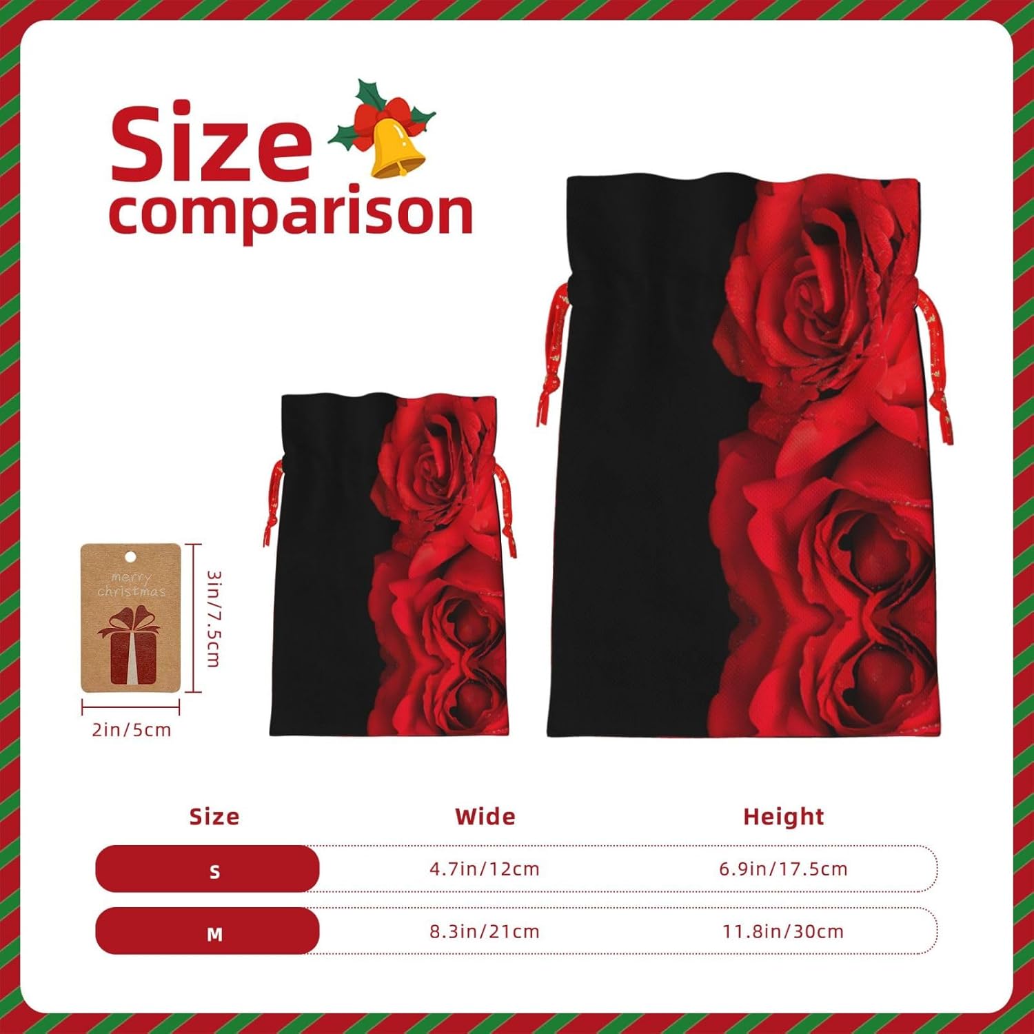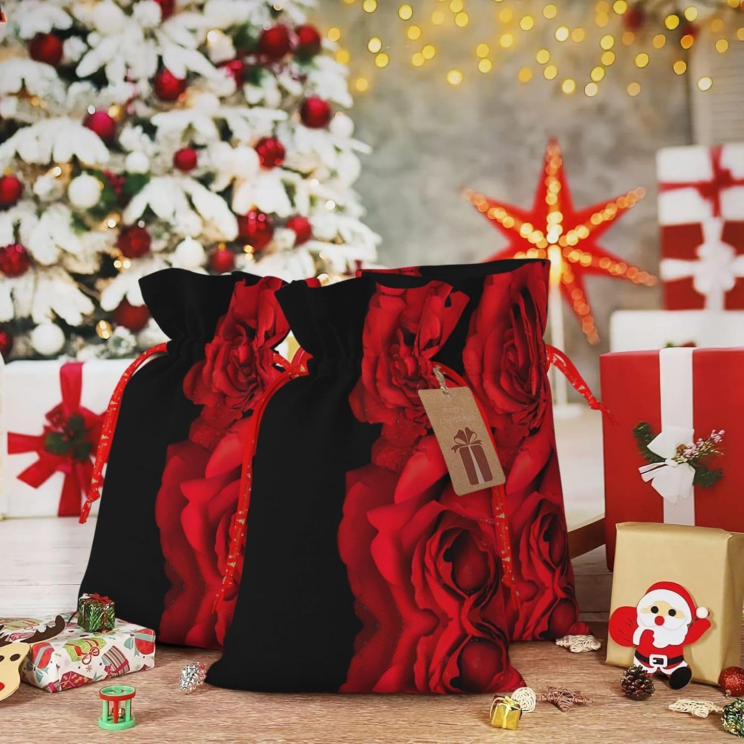 BORSE REGALO DI ALTO VALORE: la borsa rosa rossa è dotata di sacchetti regalo con cordoncini colorati ed etichette. I sacchetti regalo sono aggiornati con un design con chiusura a coulisse, sacchetti regalo realizzati in poliestere, resistenti e riutilizzabili. Non si strappano come la carta, ottimi per incartare i regali. 10 secondi per incartare un regalo: il sacchetto con rose rosse per incartare facilmente i regali, è facile da usare, basta inserire il regalo nei sacchetti, far scorrere l'etichetta regalo attraverso il nastro, tirare il nastro, annodare un fiocco e il gioco è fatto. Puoi evitare il fastidio associato a carta da imballaggio, forbici, nastro adesivo e nastro, risparmiare tempo e molto conveniente. Dimensioni del sacchetto regalo: i sacchetti regalo in 2 dimensioni possono soddisfare le preferenze di diverse persone e sono sufficienti per l'uso quotidiano e la festa di Natale. La S misura 12 x 17,5 cm e la M misura 12 x 30 cm. Sacchetti regalo in formati assortiti sfusi, perfetti per confezionare regali di diverse dimensioni. Regalo nel regalo: questi sacchetti regalo con rose rosse possono essere riutilizzati molte volte. Un set di sacchetti regalo riutilizzabili sarà un'aggiunta meravigliosa a qualsiasi regalo e migliorerà l'esperienza complessiva del regalo. Inoltre, abbiamo rinforzato il fondo per una maggiore stabilità e una struttura robusta con carichi pesanti. Non facile da rompere per un uso durevole e duraturo. Sacchetti regalo multifunzionali: questi sacchetti regalo natalizi con rose rosse possono essere utilizzati per conservare regali di Natale, giocattoli, bambole, cappelli natalizi, caramelle e regali durante una festa di Natale. Conservare i regali in questa borsa darà ai bambini più sorprese perché non sanno cosa c'è dentro.