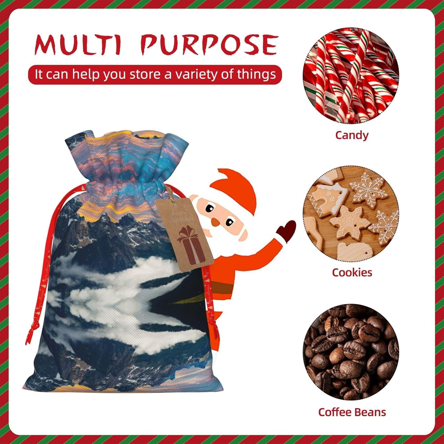 BORSE REGALO DI ALTO VALORE: il vivido scenario alpino sopra la borsa presenta sacchetti regalo con cordoncini ed etichette colorati. I sacchetti regalo sono aggiornati con un design con chiusura a coulisse, sacchetti regalo realizzati in poliestere, resistenti e riutilizzabili. Non si strappano come la carta, ottimi per incartare i regali. 10 secondi per incartare un regalo: il vivido scenario alpino sopra la borsa per confezionare facilmente i regali, è facile da usare, basta inserire il regalo nelle borse, far scorrere l'etichetta regalo attraverso il nastro, tirare il nastro, annodare un fiocco e il gioco è fatto. Puoi evitare il fastidio associato a carta da imballaggio, forbici, nastro adesivo e nastro, risparmiare tempo e molto conveniente. Dimensioni del sacchetto regalo: i sacchetti regalo in 2 dimensioni possono soddisfare le preferenze di diverse persone e sono sufficienti per l'uso quotidiano e la festa di Natale. La S misura 12 x 17,5 cm e la M misura 12 x 30 cm. Sacchetti regalo in formati assortiti sfusi, perfetti per confezionare regali di diverse dimensioni. REGALO COME REGALO: questi sacchetti regalo con un vivido paesaggio alpino sopra il cielo possono essere riutilizzati molte volte. Un set di sacchetti regalo riutilizzabili sarà un'aggiunta meravigliosa a qualsiasi regalo e migliorerà l'esperienza complessiva del regalo. Inoltre, abbiamo rinforzato il fondo per una maggiore stabilità e una struttura robusta con carichi pesanti. Non facile da rompere per un uso durevole e duraturo. Sacchetti regalo multifunzionali: questi sacchetti regalo natalizi con vivaci scenari alpini sopra il cielo possono essere utilizzati per conservare regali di Natale, giocattoli, bambole, cappelli natalizi, caramelle e regali durante una festa di Natale. Conservare i regali in questa borsa darà ai bambini più sorprese perché non sanno cosa c'è dentro.