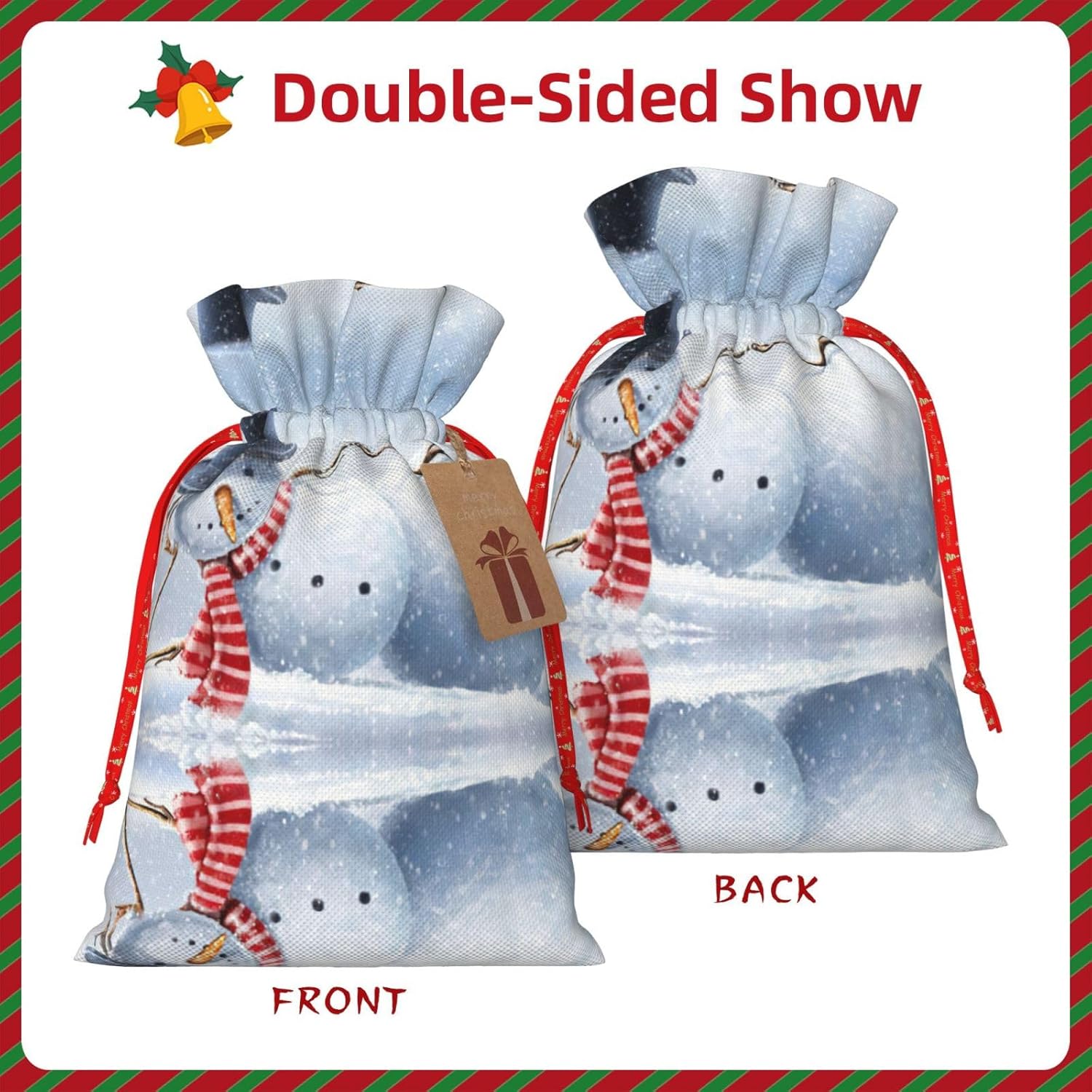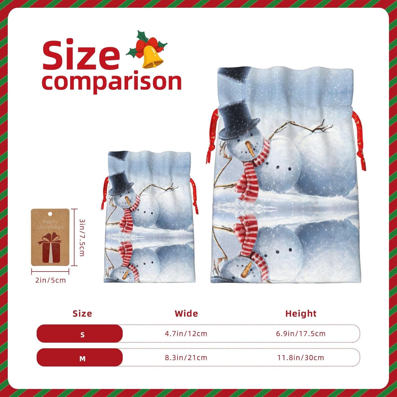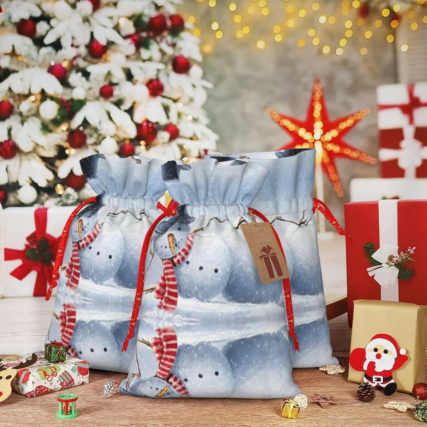 BORSE REGALO DI ALTO VALORE: la divertente borsa natalizia con pupazzo di neve è dotata di sacchetti regalo con cordoncini colorati ed etichette. I sacchetti regalo sono aggiornati con un design con chiusura a coulisse, sacchetti regalo realizzati in poliestere, resistenti e riutilizzabili. Non si strappano come la carta, ottimi per incartare i regali. 10 secondi per incartare un regalo: il divertente sacchetto natalizio con pupazzo di neve per confezionare facilmente i regali, è facile da usare, basta inserire il regalo nei sacchetti, far scorrere l'etichetta regalo attraverso il nastro, tirare il nastro, annodare un fiocco e il gioco è fatto. Puoi evitare il fastidio associato a carta da imballaggio, forbici, nastro adesivo e nastro, risparmiare tempo e molto conveniente. Dimensioni del sacchetto regalo: i sacchetti regalo in 2 dimensioni possono soddisfare le preferenze di diverse persone e sono sufficienti per l'uso quotidiano e la festa di Natale. La S misura 12 x 17,5 cm e la M misura 12 x 30 cm. Sacchetti regalo in formati assortiti sfusi, perfetti per confezionare regali di diverse dimensioni. REGALO NEL REGALO: questi divertenti sacchetti regalo natalizi con pupazzo di neve possono essere riutilizzati molte volte. Un set di sacchetti regalo riutilizzabili sarà un'aggiunta meravigliosa a qualsiasi regalo e migliorerà l'esperienza complessiva del regalo. Inoltre, abbiamo rinforzato il fondo per una maggiore stabilità e una struttura robusta con carichi pesanti. Non facile da rompere per un uso durevole e duraturo. Sacchetti regalo multifunzionali: questi divertenti sacchetti natalizi con pupazzo di neve possono essere utilizzati per conservare regali di Natale, giocattoli, bambole, cappelli natalizi, caramelle e regali durante una festa di Natale. Conservare i regali in questa borsa darà ai bambini più sorprese perché non sanno cosa c'è dentro.