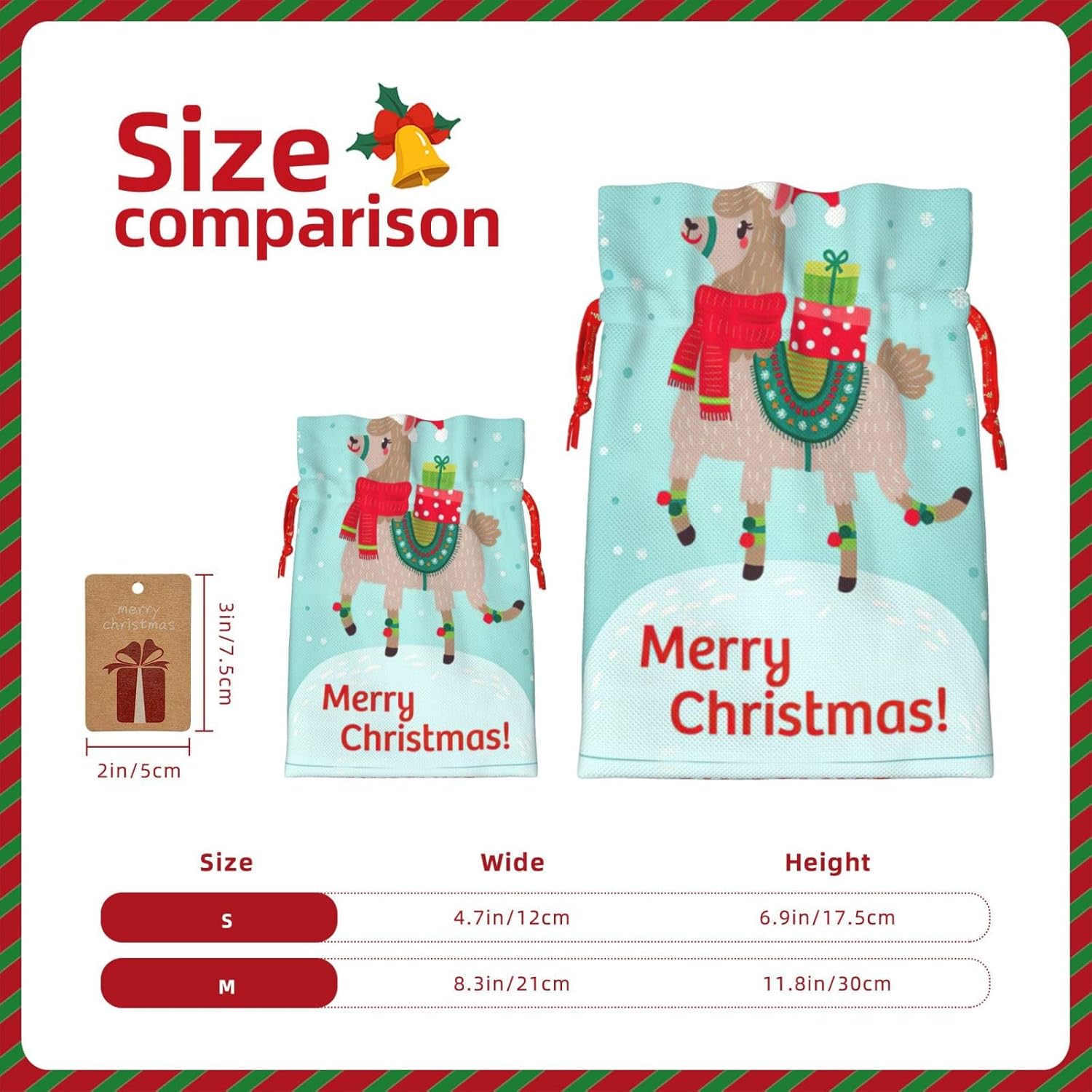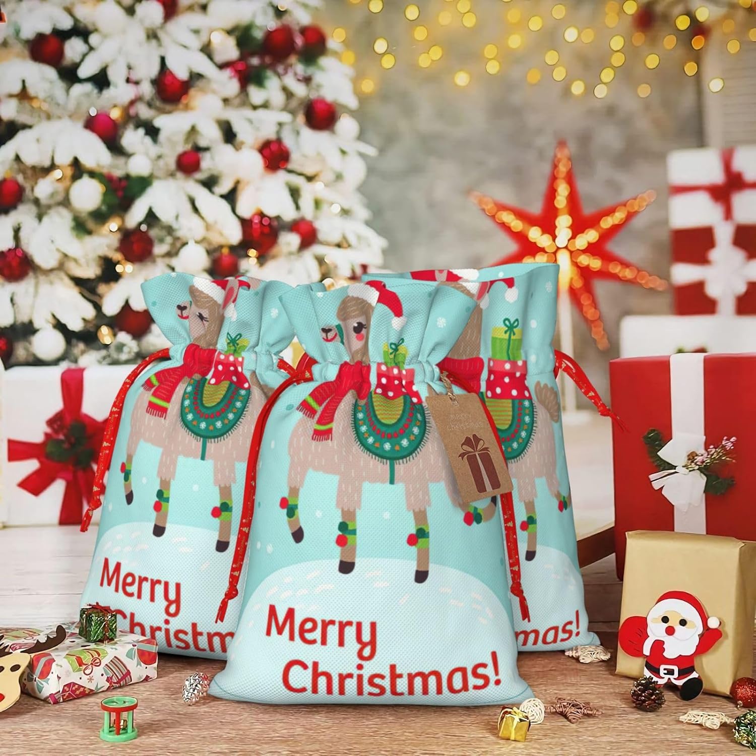 BORSE REGALO DI ALTO VALORE: la borsa natalizia con lama è dotata di sacchetti regalo con cordoncini colorati ed etichette. I sacchetti regalo sono aggiornati con un design con chiusura a coulisse, sacchetti regalo realizzati in poliestere, resistenti e riutilizzabili. Non si strappano come la carta, ottimi per incartare i regali. 10 secondi per incartare un regalo: sacchetto di lama di Natale per confezionare facilmente i regali, è facile da usare, basta inserire il regalo nei sacchetti, far scorrere l'etichetta regalo attraverso il nastro, tirare il nastro, annodare un fiocco e il gioco è fatto. Puoi evitare il fastidio associato a carta da imballaggio, forbici, nastro adesivo e nastro, risparmiare tempo e molto conveniente. Dimensioni del sacchetto regalo: i sacchetti regalo in 2 dimensioni possono soddisfare le preferenze di diverse persone e sono sufficienti per l'uso quotidiano e la festa di Natale. La S misura 12 x 17,5 cm e la M misura 12 x 30 cm. Sacchetti regalo in formati assortiti sfusi, perfetti per confezionare regali di diverse dimensioni. REGALO IDEALE: questi sacchetti regalo natalizi con lama possono essere riutilizzati molte volte. Un set di sacchetti regalo riutilizzabili sarà un'aggiunta meravigliosa a qualsiasi regalo e migliorerà l'esperienza complessiva del regalo. Inoltre, abbiamo rinforzato il fondo per una maggiore stabilità e una struttura robusta con carichi pesanti. Non facile da rompere per un uso durevole e duraturo. Sacchetti regalo multifunzionali: questi sacchetti natalizi a forma di lama possono essere utilizzati per conservare regali di Natale, giocattoli, bambole, cappelli natalizi, caramelle e regali durante una festa di Natale. Conservare i regali in questa borsa darà ai bambini più sorprese perché non sanno cosa c'è dentro.