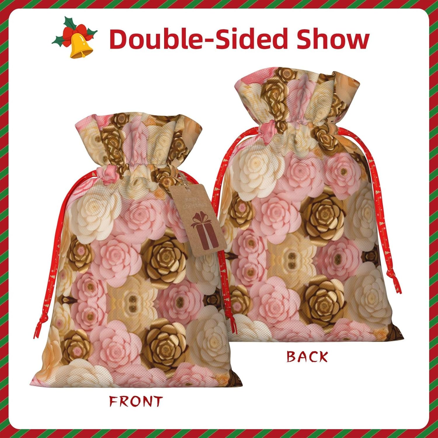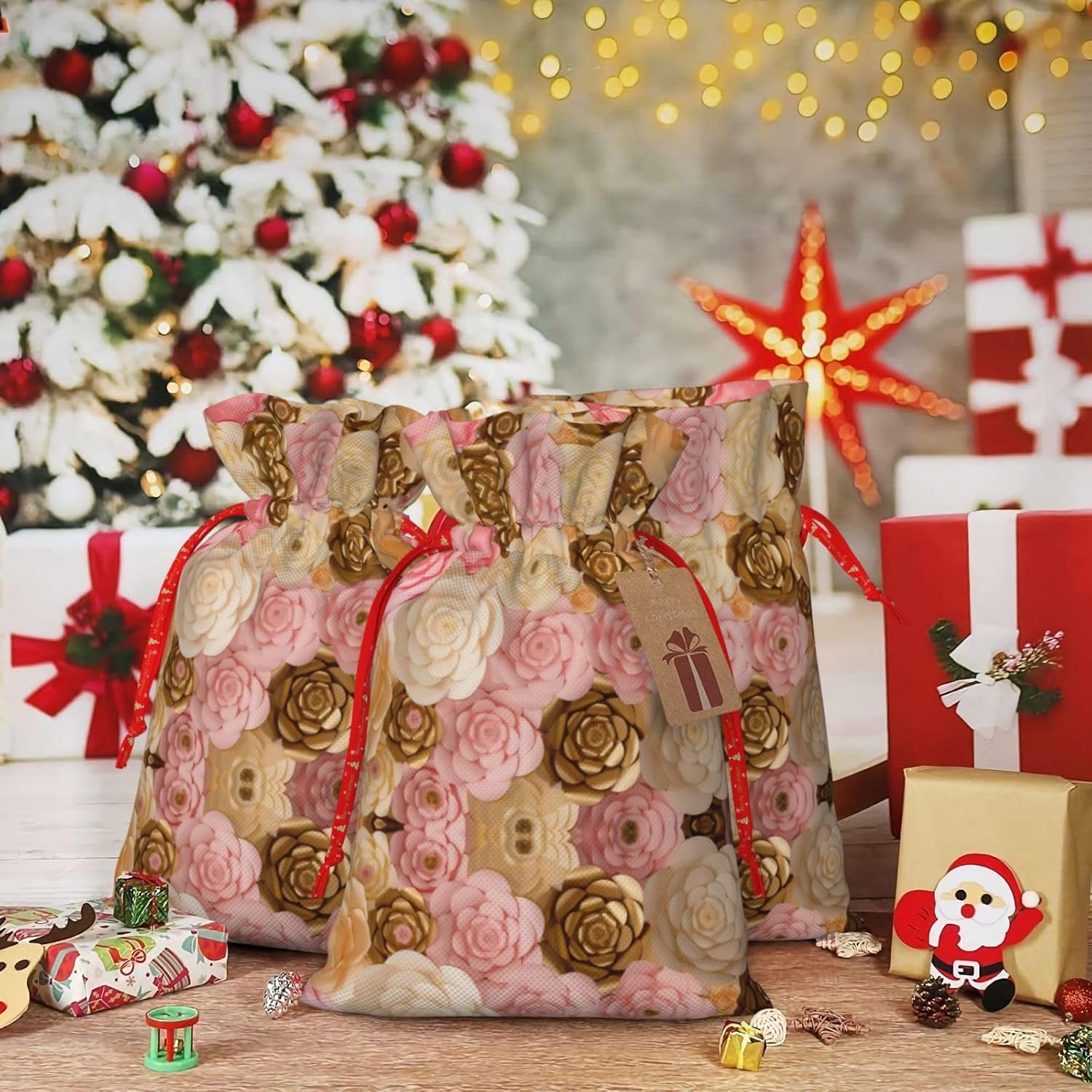 BORSE REGALO DI ALTO VALORE: la borsa a fiori rosa e bianca presenta sacchetti regalo con cordoncini colorati ed etichette. I sacchetti regalo sono aggiornati con un design con chiusura a coulisse, sacchetti regalo realizzati in poliestere, resistenti e riutilizzabili. Non si strappano come la carta, ottimi per incartare i regali. 10 secondi per incartare un regalo: il sacchetto con fiori rosa e oro bianco per confezionare facilmente i regali, è facile da usare, basta inserire il regalo nei sacchetti, far scorrere l'etichetta regalo attraverso il nastro, tirare il nastro, annodare un fiocco e il gioco è fatto. Puoi evitare il fastidio associato a carta da imballaggio, forbici, nastro adesivo e nastro, risparmiare tempo e molto conveniente. Dimensioni del sacchetto regalo: i sacchetti regalo in 2 dimensioni possono soddisfare le preferenze di diverse persone e sono sufficienti per l'uso quotidiano e la festa di Natale. La S misura 12 x 17,5 cm e la M misura 12 x 30 cm. Sacchetti regalo in formati assortiti sfusi, perfetti per confezionare regali di diverse dimensioni. REGALO NEL REGALO: questi sacchetti regalo in oro rosa e bianco possono essere riutilizzati molte volte. Un set di sacchetti regalo riutilizzabili sarà un'aggiunta meravigliosa a qualsiasi regalo e migliorerà l'esperienza complessiva del regalo. Inoltre, abbiamo rinforzato il fondo per una maggiore stabilità e una struttura robusta con carichi pesanti. Non facile da rompere per un uso durevole e duraturo. Sacchetti regalo multifunzionali: questi sacchetti di fiori in oro rosa e bianco possono essere utilizzati per conservare regali di Natale, giocattoli, bambole, cappelli natalizi, caramelle e regali durante una festa di Natale. Conservare i regali in questa borsa darà ai bambini più sorprese perché non sanno cosa c'è dentro.