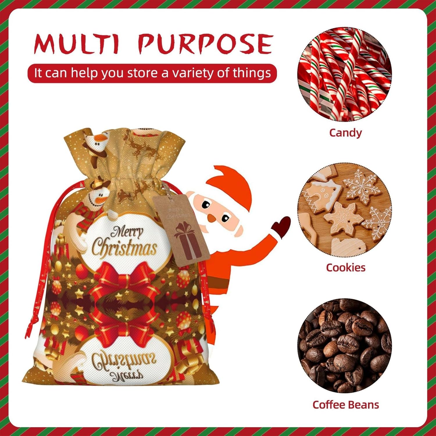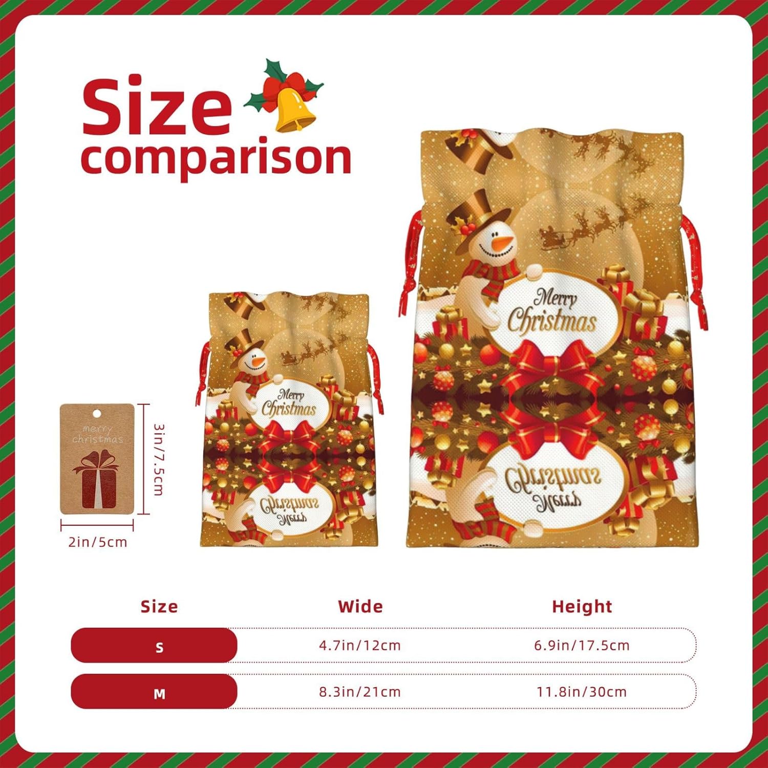 BORSE REGALO DI ALTO VALORE: la borsa natalizia con pupazzo di neve è dotata di sacchetti regalo con cordoncini colorati ed etichette. I sacchetti regalo sono aggiornati con un design con chiusura a coulisse, sacchetti regalo realizzati in poliestere, resistenti e riutilizzabili. Non si strappano come la carta, ottimi per incartare i regali. 10 secondi per incartare un regalo: il sacchetto del pupazzo di neve di Natale per confezionare facilmente i regali, è facile da usare, basta inserire il regalo nei sacchetti, far scorrere l'etichetta regalo attraverso il nastro, tirare il nastro, annodare un fiocco e il gioco è fatto. Puoi evitare il fastidio associato a carta da imballaggio, forbici, nastro adesivo e nastro, risparmiare tempo e molto conveniente. Dimensioni del sacchetto regalo: i sacchetti regalo in 2 dimensioni possono soddisfare le preferenze di diverse persone e sono sufficienti per l'uso quotidiano e la festa di Natale. La S misura 12 x 17,5 cm e la M misura 12 x 30 cm. Sacchetti regalo in formati assortiti sfusi, perfetti per confezionare regali di diverse dimensioni. Regalo nel regalo: questi sacchetti regalo natalizi con pupazzo di neve possono essere riutilizzati molte volte. Un set di sacchetti regalo riutilizzabili sarà un'aggiunta meravigliosa a qualsiasi regalo e migliorerà l'esperienza complessiva del regalo. Inoltre, abbiamo rinforzato il fondo per una maggiore stabilità e una struttura robusta con carichi pesanti. Non facile da rompere per un uso durevole e duraturo. Sacchetti regalo multifunzionali: questi sacchetti natalizi con pupazzo di neve possono essere utilizzati per conservare regali di Natale, giocattoli, bambole, cappelli natalizi, caramelle e regali durante una festa di Natale. Conservare i regali in questa borsa darà ai bambini più sorprese perché non sanno cosa c'è dentro.