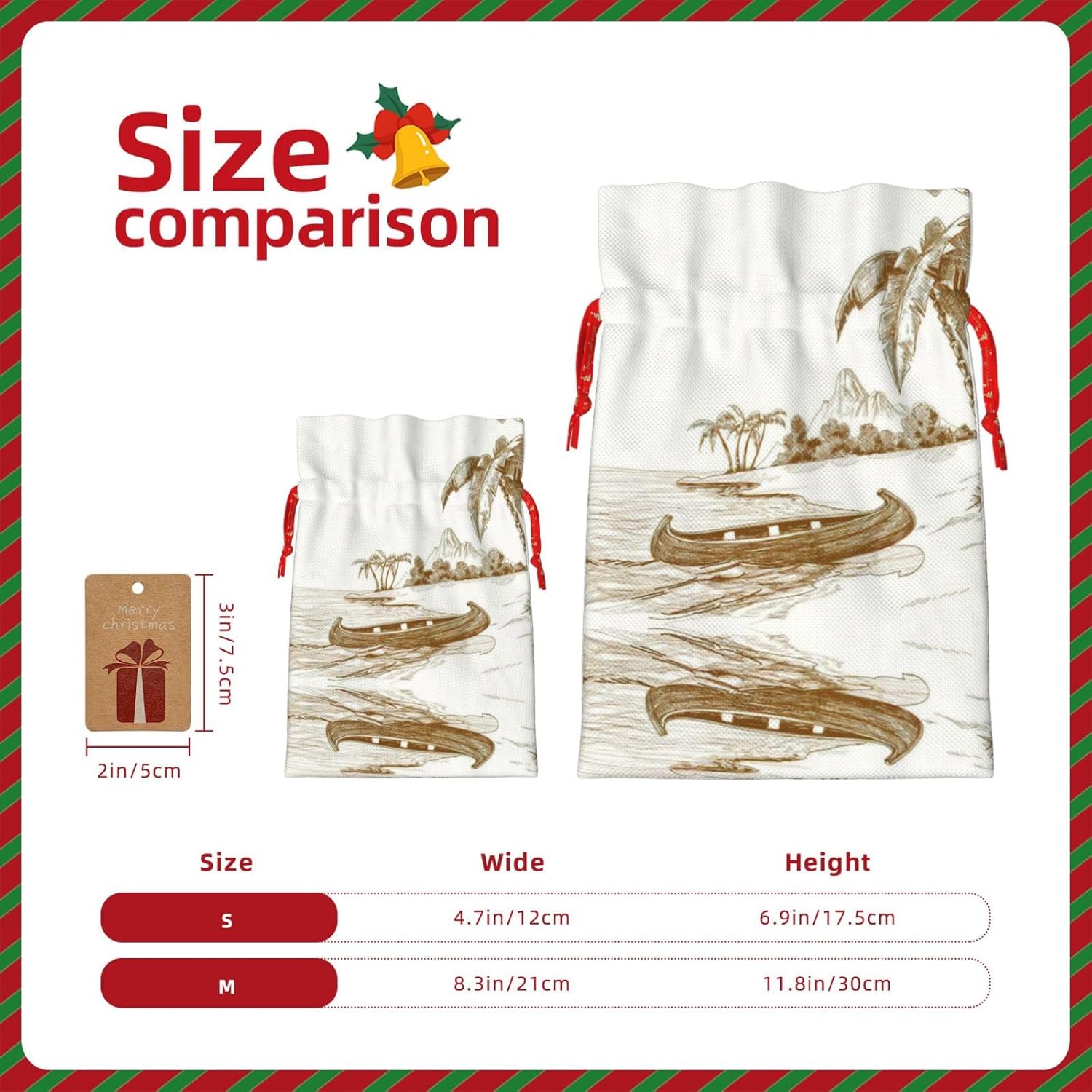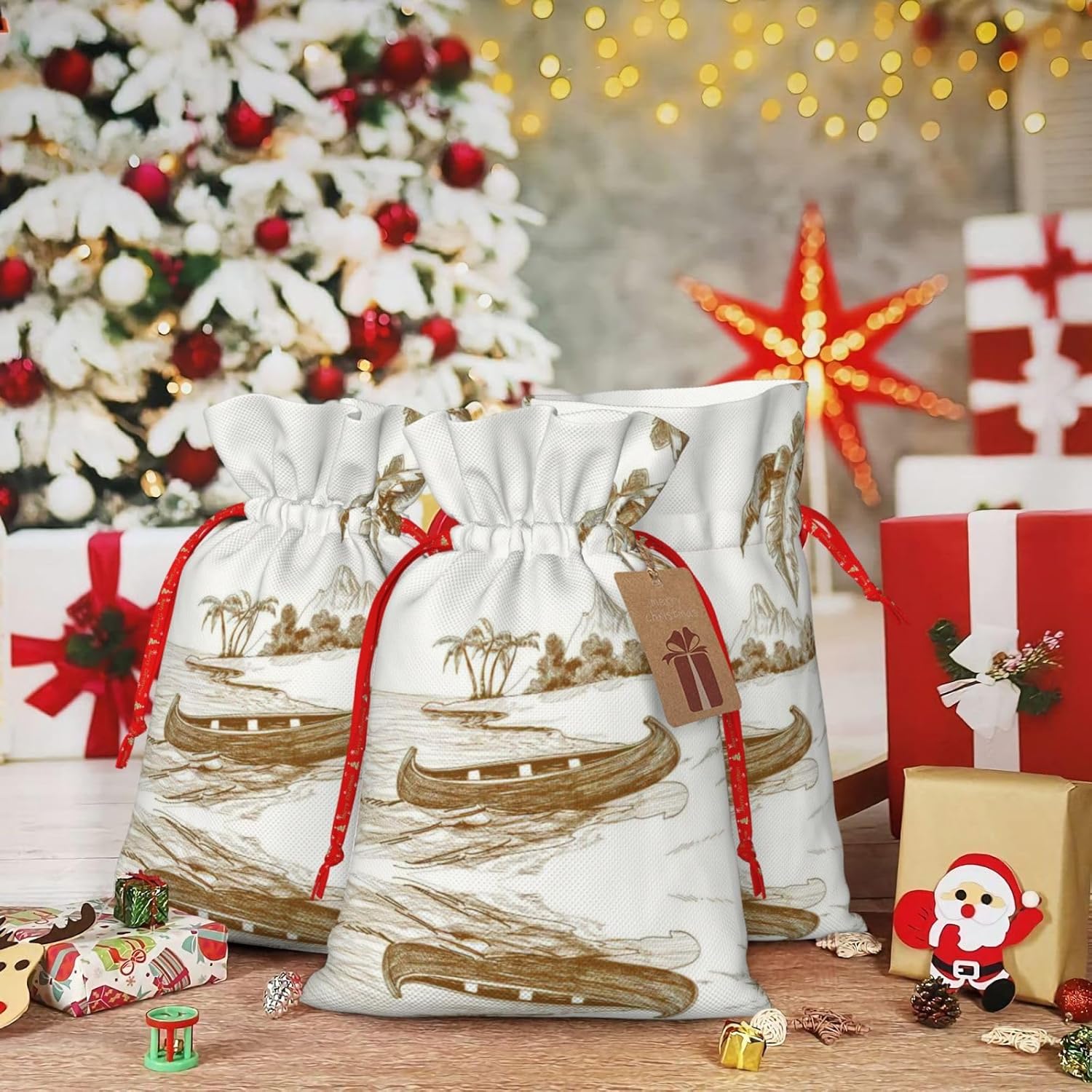 BORSE REGALO DI ALTO VALORE: la borsa da barca con disegno da spiaggia è dotata di sacchetti regalo con cordoncini colorati ed etichette. I sacchetti regalo sono aggiornati con un design con chiusura a coulisse, sacchetti regalo realizzati in poliestere, resistenti e riutilizzabili. Non si strappano come la carta, ottimi per incartare i regali. 10 secondi per incartare un regalo: la borsa da barca con disegno da spiaggia per confezionare facilmente i regali, è facile da usare, basta inserire il regalo nelle borse, far scorrere l'etichetta regalo attraverso il nastro, tirare il nastro, annodare un fiocco e il gioco è fatto. Puoi evitare il fastidio associato a carta da imballaggio, forbici, nastro adesivo e nastro, risparmiare tempo e molto conveniente. Dimensioni del sacchetto regalo: i sacchetti regalo in 2 dimensioni possono soddisfare le preferenze di diverse persone e sono sufficienti per l'uso quotidiano e la festa di Natale. La S misura 12 x 17,5 cm e la M misura 12 x 30 cm. Sacchetti regalo in formati assortiti sfusi, perfetti per confezionare regali di diverse dimensioni. REGALO NEL REGALO: questi sacchetti regalo per barche da spiaggia possono essere riutilizzati molte volte. Un set di sacchetti regalo riutilizzabili sarà un'aggiunta meravigliosa a qualsiasi regalo e migliorerà l'esperienza complessiva del regalo. Inoltre, abbiamo rinforzato il fondo per una maggiore stabilità e una struttura robusta con carichi pesanti. Non facile da rompere per un uso durevole e duraturo. Sacchetti regalo multifunzionali: queste borse da barca da spiaggia possono essere utilizzate per conservare regali di Natale, giocattoli, bambole, cappelli di Natale, caramelle e regali durante una festa di Natale. Conservare i regali in questa borsa darà ai bambini più sorprese perché non sanno cosa c'è dentro.