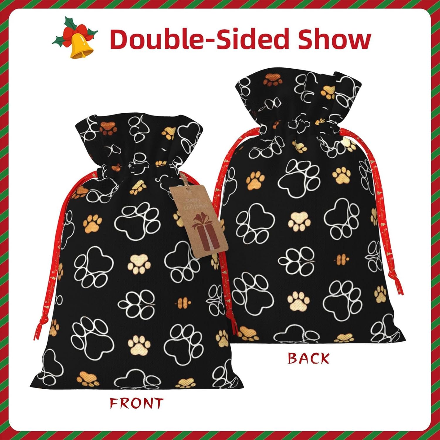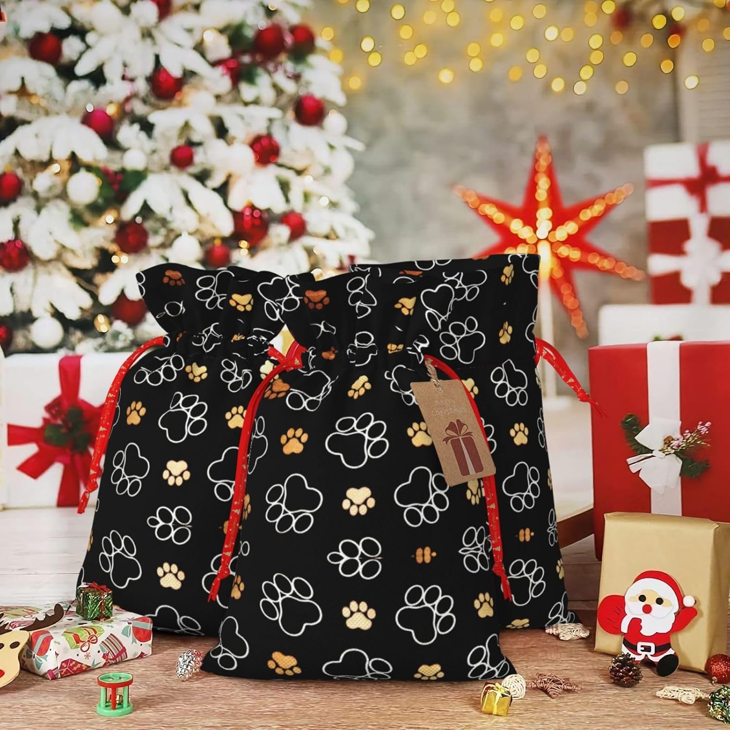 BORSE REGALO DI ALTO VALORE: la borsa con stampa di zampe di cane è dotata di sacchetti regalo con cordoncini colorati ed etichette. I sacchetti regalo sono aggiornati con un design con chiusura a coulisse, sacchetti regalo realizzati in poliestere, resistenti e riutilizzabili. Non si strappano come la carta, ottimi per incartare i regali. 10 secondi per incartare un regalo: il sacchetto con stampa della zampa di cane per confezionare facilmente i regali, è facile da usare, basta inserire il regalo nei sacchetti, far scorrere l'etichetta regalo attraverso il nastro, tirare il nastro, annodare un fiocco e il gioco è fatto. Puoi evitare il fastidio associato a carta da imballaggio, forbici, nastro adesivo e nastro, risparmiare tempo e molto conveniente. Dimensioni del sacchetto regalo: i sacchetti regalo in 2 dimensioni possono soddisfare le preferenze di diverse persone e sono sufficienti per l'uso quotidiano e la festa di Natale. La S misura 12 x 17,5 cm e la M misura 12 x 30 cm. Sacchetti regalo in formati assortiti sfusi, perfetti per confezionare regali di diverse dimensioni. REGALO IDEALE: questi sacchetti regalo con stampa di zampe di cane possono essere riutilizzati più volte. Un set di sacchetti regalo riutilizzabili sarà un'aggiunta meravigliosa a qualsiasi regalo e migliorerà l'esperienza complessiva del regalo. Inoltre, abbiamo rinforzato il fondo per una maggiore stabilità e una struttura robusta con carichi pesanti. Non facile da rompere per un uso durevole e duraturo. Sacchetti regalo multifunzionali: questi sacchetti con stampa di zampe di cane possono essere utilizzati per conservare regali di Natale, giocattoli, bambole, cappelli natalizi, caramelle e regali durante una festa di Natale. Conservare i regali in questa borsa darà ai bambini più sorprese perché non sanno cosa c'è dentro.