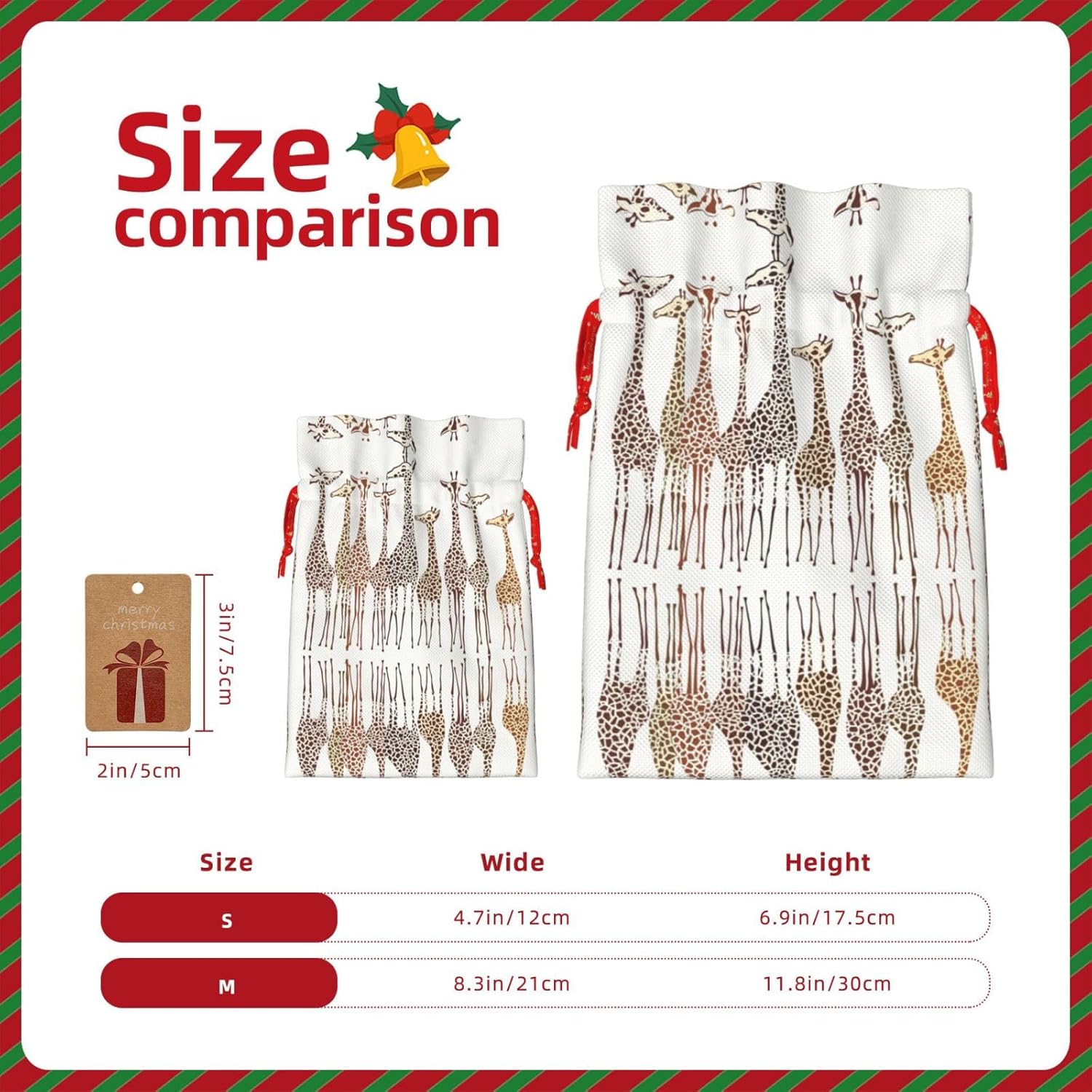 BORSE REGALO DI ALTO VALORE: la simpatica borsa con giraffe dei cartoni animati è dotata di sacchetti regalo con cordoncini colorati ed etichette. I sacchetti regalo sono aggiornati con un design con chiusura a coulisse, sacchetti regalo realizzati in poliestere, resistenti e riutilizzabili. Non si strappano come la carta, ottimi per incartare i regali. 10 secondi per incartare un regalo: la simpatica e divertente borsa con giraffe dei cartoni animati per confezionare facilmente i regali, è facile da usare, basta inserire il regalo nelle buste, far scorrere l'etichetta regalo attraverso il nastro, tirare il nastro, annodare un fiocco e il gioco è fatto. Puoi evitare il fastidio associato a carta da imballaggio, forbici, nastro adesivo e nastro, risparmiare tempo e molto conveniente. Dimensioni del sacchetto regalo: i sacchetti regalo in 2 dimensioni possono soddisfare le preferenze di diverse persone e sono sufficienti per l'uso quotidiano e la festa di Natale. La S misura 12 x 17,5 cm e la M misura 12 x 30 cm. Sacchetti regalo in formati assortiti sfusi, perfetti per confezionare regali di diverse dimensioni. REGALO NEL REGALO: questi adorabili e divertenti sacchetti regalo a forma di giraffa possono essere riutilizzati molte volte. Un set di sacchetti regalo riutilizzabili sarà un'aggiunta meravigliosa a qualsiasi regalo e migliorerà l'esperienza complessiva del regalo. Inoltre, abbiamo rinforzato il fondo per una maggiore stabilità e una struttura robusta con carichi pesanti. Non facile da rompere per un uso durevole e duraturo. Sacchetti regalo multifunzionali: questi graziosi sacchetti natalizi a forma di giraffa possono essere utilizzati per conservare regali di Natale, giocattoli, bambole, cappelli natalizi, caramelle e regali durante una festa di Natale. Conservare i regali in questa borsa darà ai bambini più sorprese perché non sanno cosa c'è dentro.