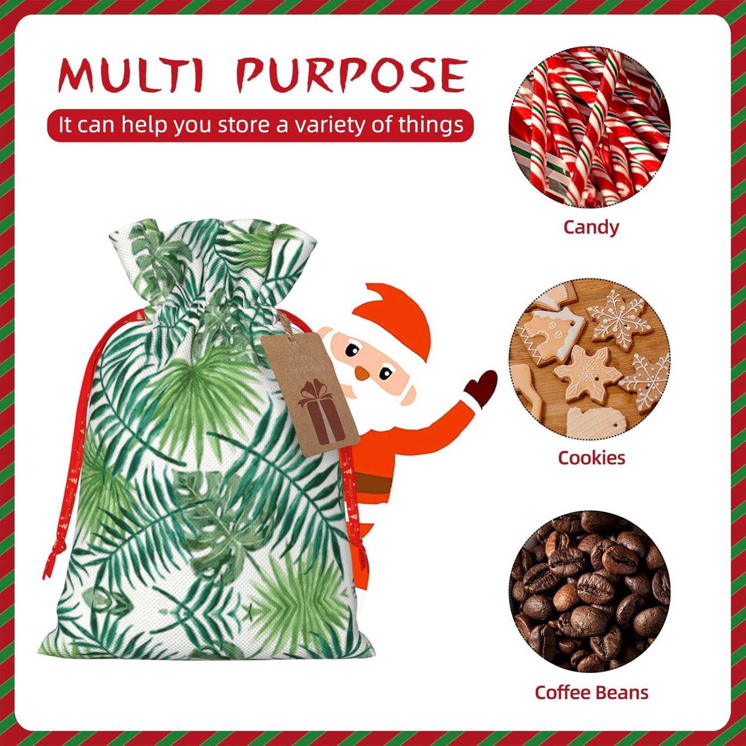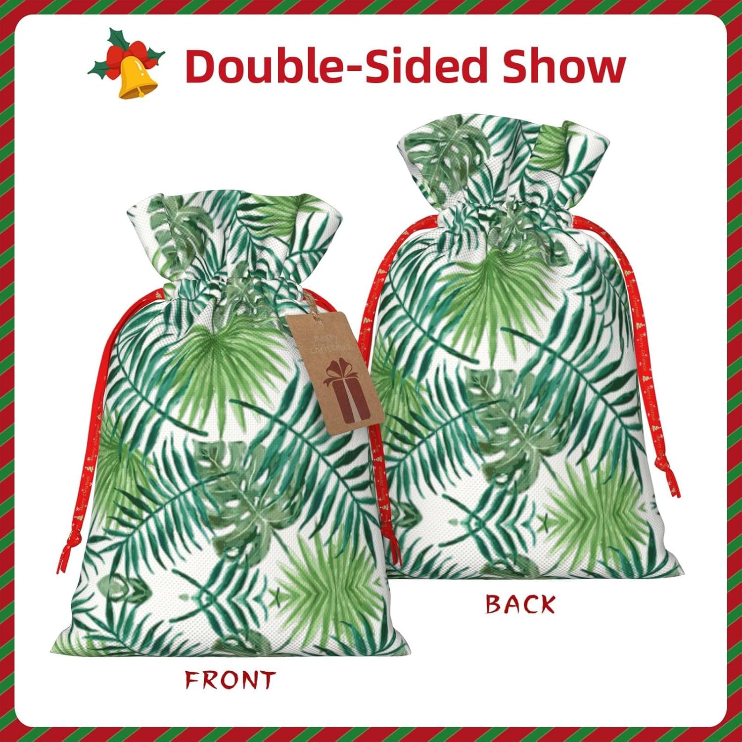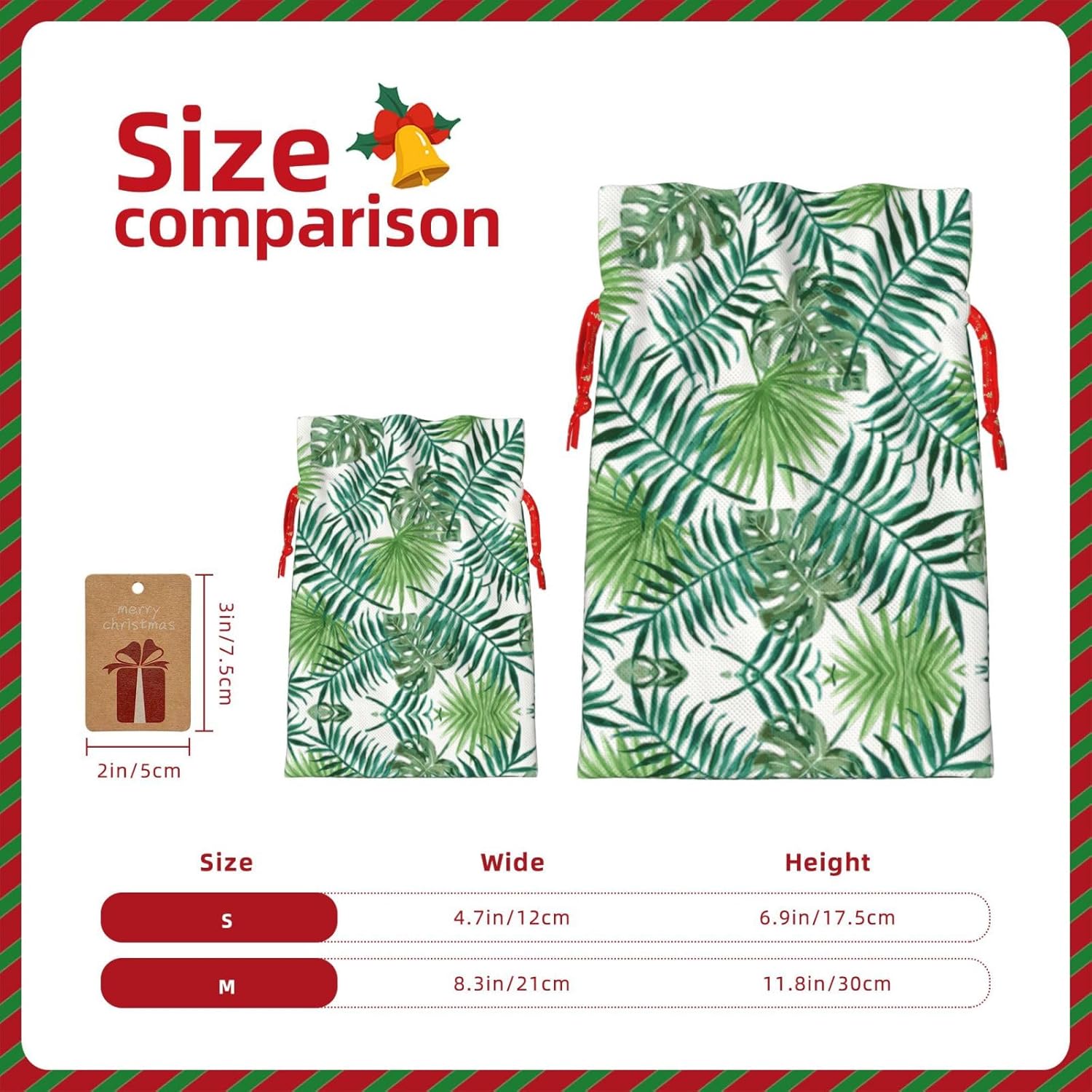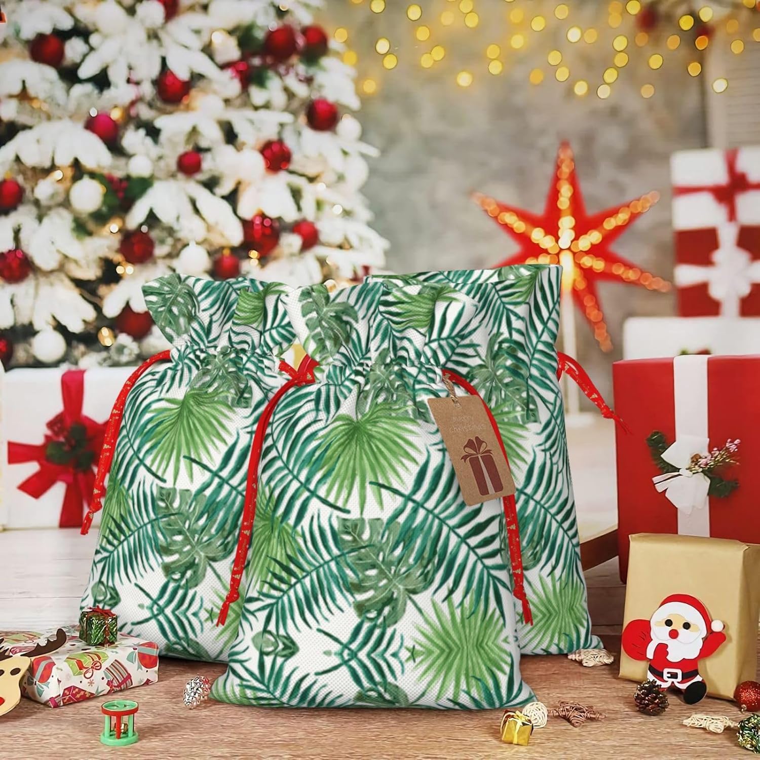 BORSE REGALO DI ALTO VALORE: la borsa trasparente con motivo a foglie di palma è dotata di sacchetti regalo con cordoncini colorati ed etichette. I sacchetti regalo sono aggiornati con un design con chiusura a coulisse, sacchetti regalo realizzati in poliestere, resistenti e riutilizzabili. Non si strappano come la carta, ottimi per incartare i regali. 10 secondi per incartare un regalo: il sacchetto trasparente con motivo a foglie di palma per confezionare facilmente i regali, è facile da usare, basta inserire il regalo nei sacchetti, far scorrere l'etichetta regalo attraverso il nastro, tirare il nastro, annodare un fiocco e il gioco è fatto. Puoi evitare il fastidio associato a carta da imballaggio, forbici, nastro adesivo e nastro, risparmiare tempo e molto conveniente. Dimensioni del sacchetto regalo: i sacchetti regalo in 2 dimensioni possono soddisfare le preferenze di diverse persone e sono sufficienti per l'uso quotidiano e la festa di Natale. La S misura 12 x 17,5 cm e la M misura 12 x 30 cm. Sacchetti regalo in formati assortiti sfusi, perfetti per confezionare regali di diverse dimensioni. REGALO NEL REGALO: questi sacchetti regalo trasparenti in foglia di palma possono essere riutilizzati molte volte. Un set di sacchetti regalo riutilizzabili sarà un'aggiunta meravigliosa a qualsiasi regalo e migliorerà l'esperienza complessiva del regalo. Inoltre, abbiamo rinforzato il fondo per una maggiore stabilità e una struttura robusta con carichi pesanti. Non facile da rompere per un uso durevole e duraturo. Sacchetti regalo multifunzionali: questi sacchetti trasparenti con motivo a foglia di palma possono essere utilizzati per conservare regali di Natale, giocattoli, bambole, cappelli natalizi, caramelle e regali durante una festa di Natale. Conservare i regali in questa borsa darà ai bambini più sorprese perché non sanno cosa c'è dentro.