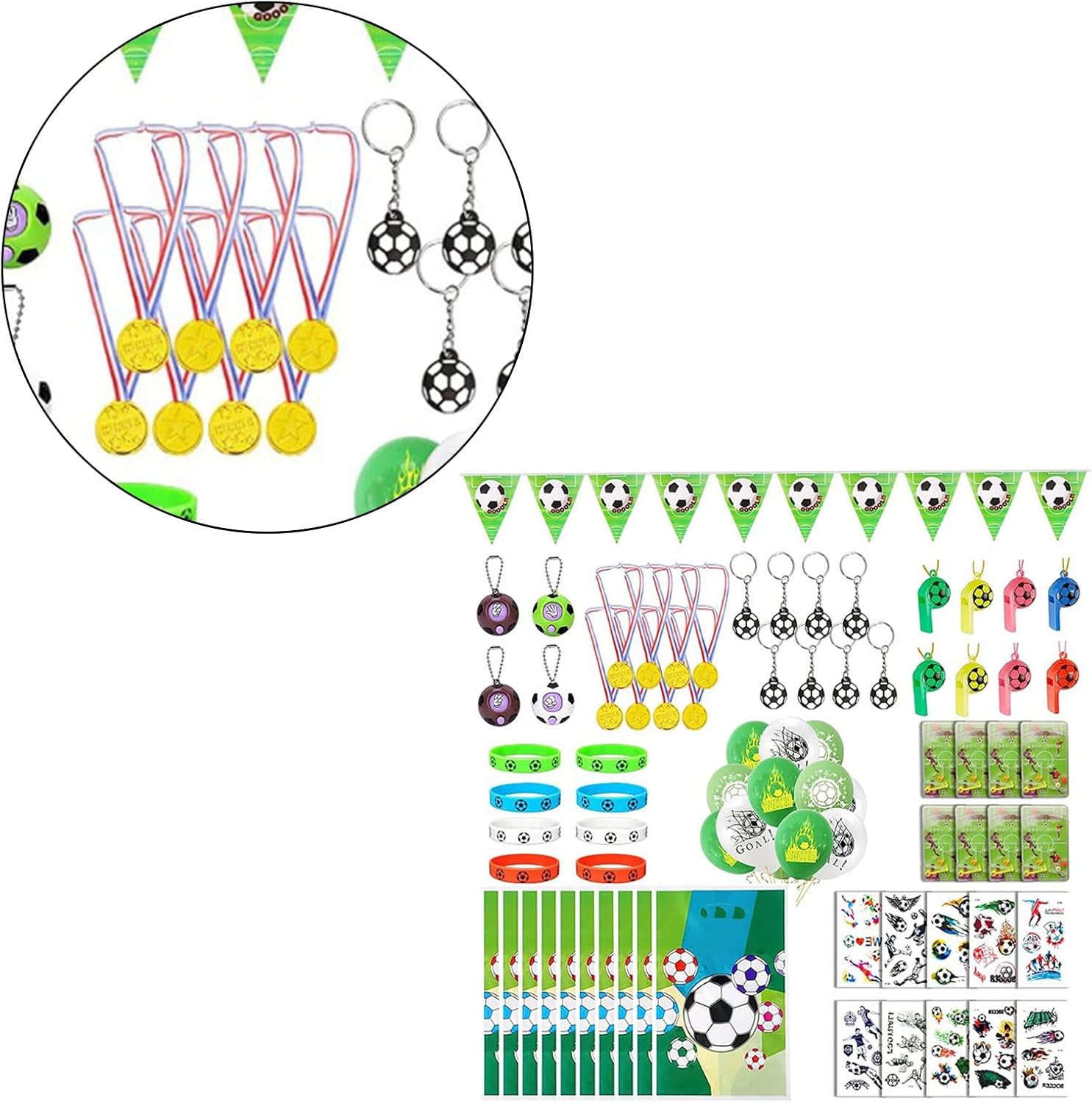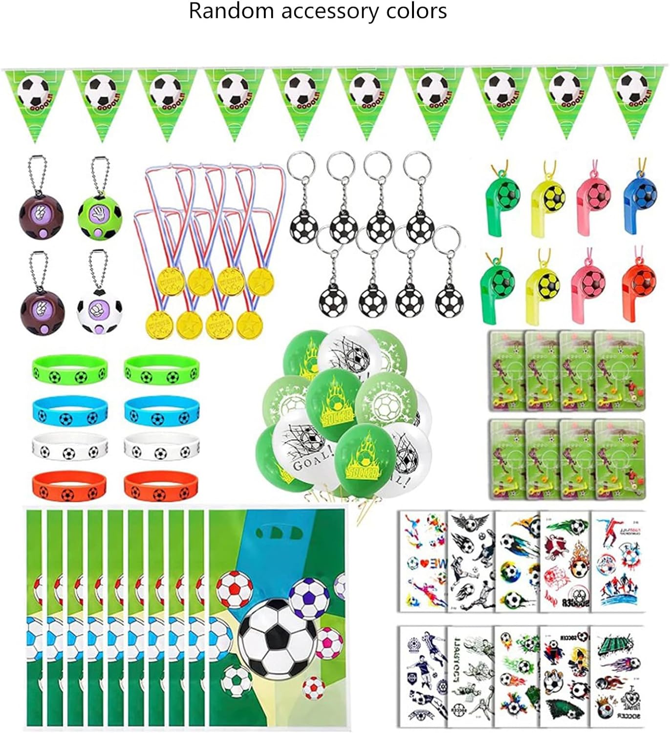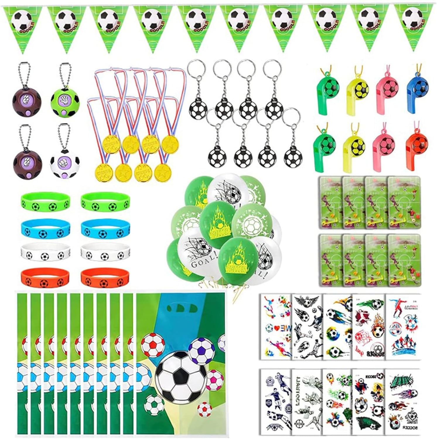 Questo pacchetto completo include biglietti d'invito per calcio, sacchetti regalo, nastri, fischietti, adesivi e decorazioni da calcio. Che si tratti di un compleanno o di un'occasione speciale, questo set sarà un regalo fantastico. Questo set adatto per coppie, feste e workshop, porta eccitazione e gioia a qualsiasi evento. Esprimi il tuo stile con l'accessorio da calcio. SET offre un'ampia scelta per dare libero sfogo alla tua creatività. Ideale per appassionati di calcio, bambini e adolescenti che amano personalizzare il loro look.