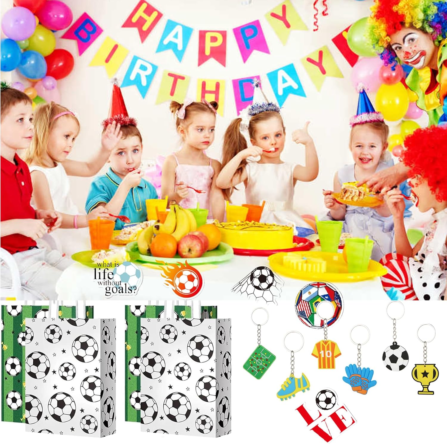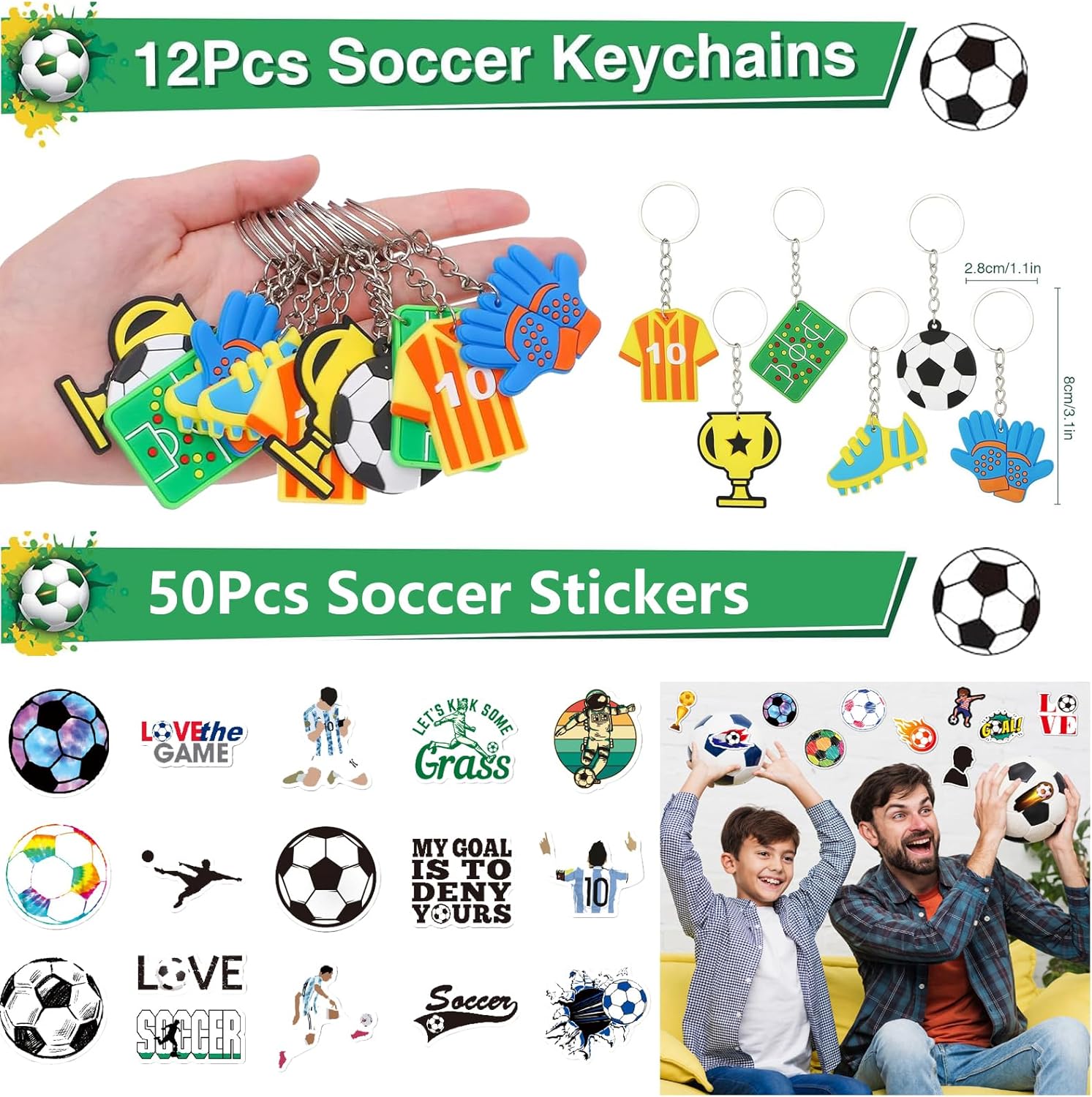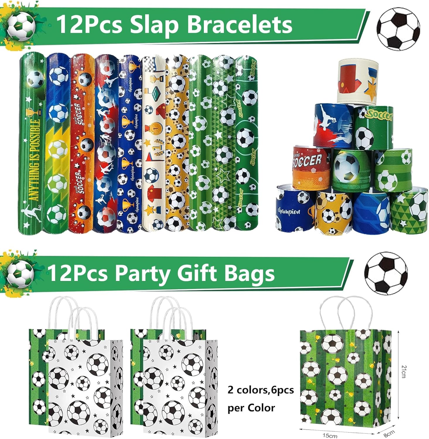 【Set di borse da festa da calcio da 94 pezzi】 Il set di regali di calcio per il compleanno dei bambini contiene 12 sacchetti regalo di calcio, 12 portachiavi da calcio, 10 braccialetti a scatto da calcio, 10 medaglie da calcio e 50 adesivi da calcio. per soddisfare tutte le tue esigenze per una festa a tema calcistico 【Materiale di alta qualità】 Queste decorazioni per il compleanno calcistico sono realizzate con materiali di alta qualità, non tossici, non irritano la pelle, sono comode da indossare e assolutamente sicure per i bambini. I sacchetti di carta da calcio sono molto stabili e riutilizzabili. sono molto amati dai bambini e sono molto adatti per le occasioni. 【Decorazioni per feste di calcio, compleanno per bambini】 Le borse da festa riempitive per borse da calcio contengono elementi classici del calcio e sono perfette per gli adolescenti amanti del calcio. Ogni gadget presenta motivi di elementi calcistici carini e squisiti con colori vivaci, pieni di vitalità e vari stili. I tatuaggi temporanei legati al calcio possono essere posizionati sul corpo o su una superficie liscia. Il portachiavi è piccolo, raffinato e anche molto pratico. 【Adatto a vari scenari】 Le nostre decorazioni calcistiche per bambini che festeggiano il compleanno sono adatte a molte occasioni. Non è adatto solo per feste a tema calcistico, partite di calcio, attività sportive, ma anche per attività in classe, carnevali scolastici, ecc. E può aiutare a suscitare l'interesse dei bambini per il calcio. Potrai goderti al massimo la tua festa