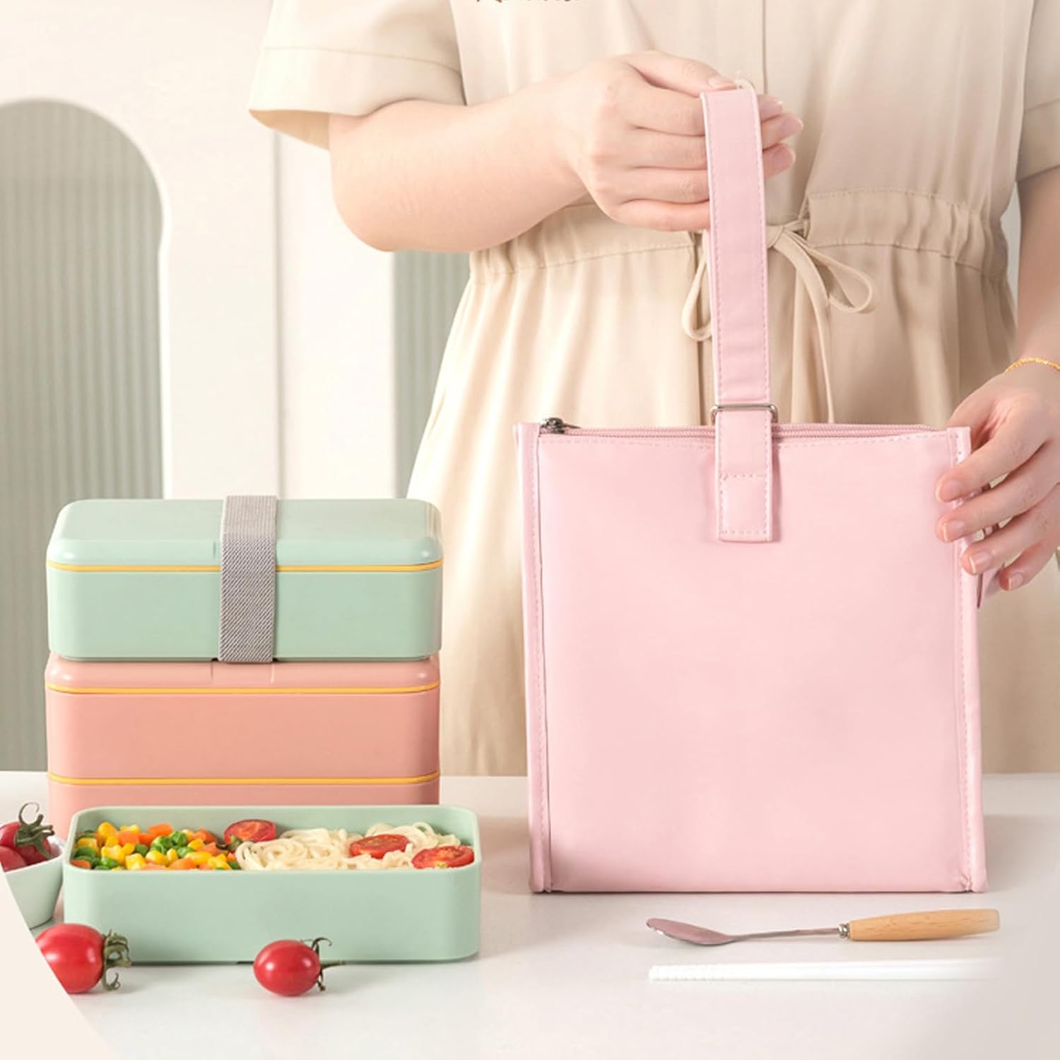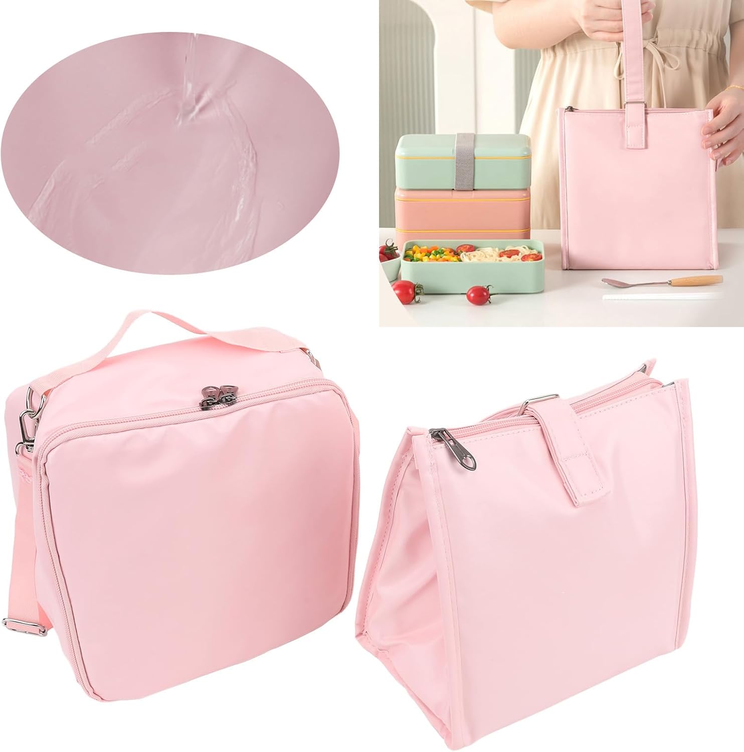[FODERA RESISTENTE ALL'OLIO E ALL'ACQUA] L'interno di questa borsa per il pranzo presenta una fodera appositamente realizzata che respinge l'olio e l'acqua, facilitando la pulizia con una semplice passata. L'avanzata tecnologia di pressatura garantisce uno strato interno che trattiene il calore, mantenendo i pasti alla temperatura perfetta e resistendo a macchie e schizzi. Questo design resistente è per i mangiatori disordinati o per coloro che preferiscono una facile manutenzione. [TECNOLOGIA DI ISOLAMENTO MIGLIORATA] Dotata di uno spesso strato isolante, questa borsa per il pranzo mantiene la freschezza del cibo fino a 5 ore. Se hai bisogno di mantenere la frutta fresca o i tuoi pasti abbondanti caldi, questa borsa offre un controllo eccezionale della temperatura. Ideale per pranzi in ufficio, picnic all'aperto o gite in campeggio, assicura che il tuo cibo rimanga fresco e delizioso ovunque tu vada. [TRACOLLA REGOLABILE E RIMOVIBILE] Progettata per la massima comodità, questa borsa per il pranzo è dotata di una tracolla flessibile e regolabile che può essere rimossa o personalizzata per adattarsi al tuo comfort. Il design inclusivo si adatta a tutte le taglie, rendendolo un accessorio versatile per tutti. Che tu preferisca portarla a mano o a tracolla, questa borsa si adatta senza sforzo alle tue esigenze. [COMODA TASCA PORTAOGGETTI IN RETE] Rimani organizzato con la tasca portaoggetti in rete integrata, perfetta per organizzare ordinatamente utensili pranzo, tovaglioli o piccoli oggetti. Questo design accurato elimina il fastidio di frugare nella borsa, rendendo l'organizzazione dell'ora di pranzo un gioco ragazzi. Grazie al pratico complemento tutto ciò di cui hai bisogno è a portata di mano. [MATERIALE IN PVC PU DUREVOLE] Realizzata in tessuto PU di alta qualità, questa borsa per il pranzo offre una resistenza all'acqua superiore e una lunga durata. Il vivace colore rosa aggiunge un tocco di stile alla tua routine quotidiana, mentre la struttura robusta garantisce che resista all'usura quotidiana. Perfetta per impiegati, studenti o appassionati di outdoor, questa borsa unisce funzionalità e moda.