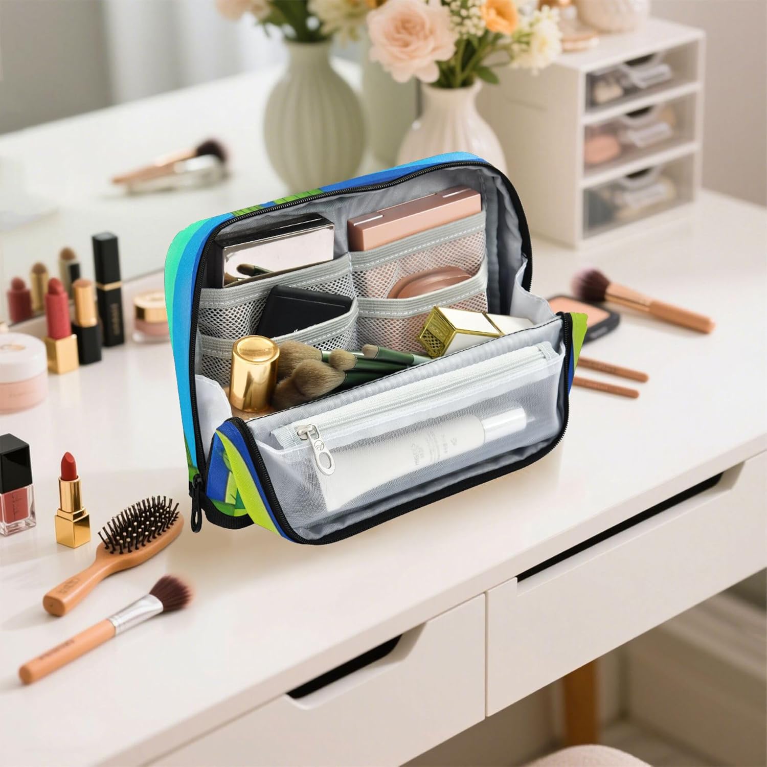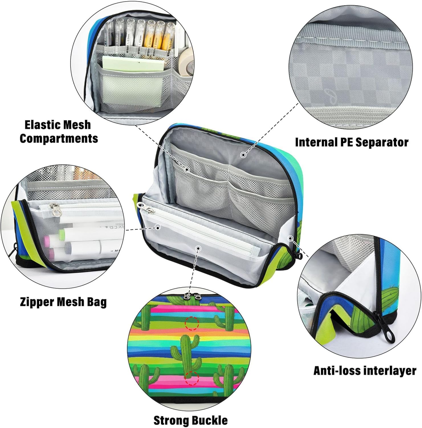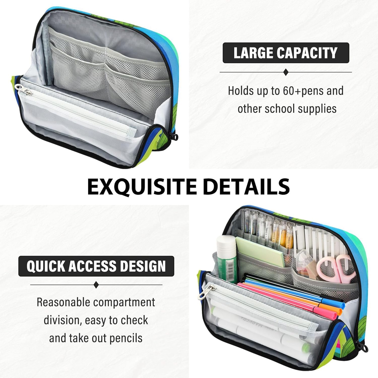 Versatile funzionalità in piedi: l'astuccio per matite si apre piatto e si ripiega saldamente per creare un contenitore autoportante, mescolando portabilità con comodità sulla scrivania Struttura in tessuto resistente: realizzato in nylon resistente, astuccio per cosmetici per matite resistente ai graffi, respinge lo sporco e mantiene il suo aspetto elegante attraverso l'uso quotidiano e la manipolazione frequente Interni multiscomparti: con una spaziosa tasca principale, una tasca in rete con cerniera e una tasca extra, l'astuccio mantiene penne, appunti e strumenti ordinatamente ordinati e a portata di mano Strumento versatile per tutti i giorni: dalle penne ai cosmetici, i sacchetti per penne per la scuola funzionano come astuccio, borsa da toilette o mini custodia per scuola, viaggi, ufficio o routine quotidiane Facile da personalizzare: l'astuccio con cerniera consente di aggiungere dettagli significativi come nomi o loghi, creando una custodia unica che funge anche da regalo elegante o dichiarazione personale
