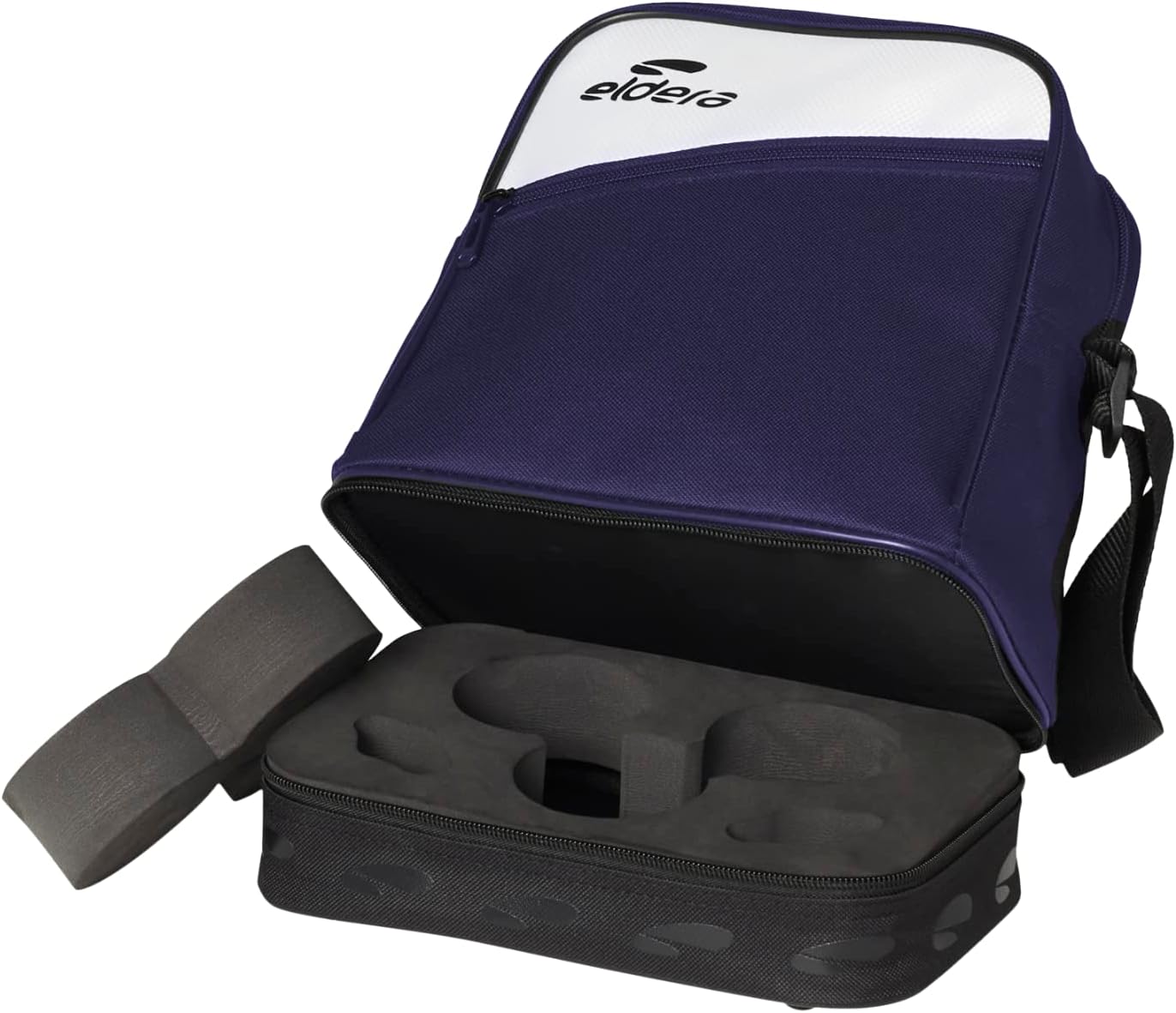 Eldera, borsa a 3 palline e 1 scopo, in schiuma di stoccaggio inclusa, in nylon molto resistente, tracolla molto resistente, tasche con cerniera, dimensioni: 26 x 23 x 14 cm
