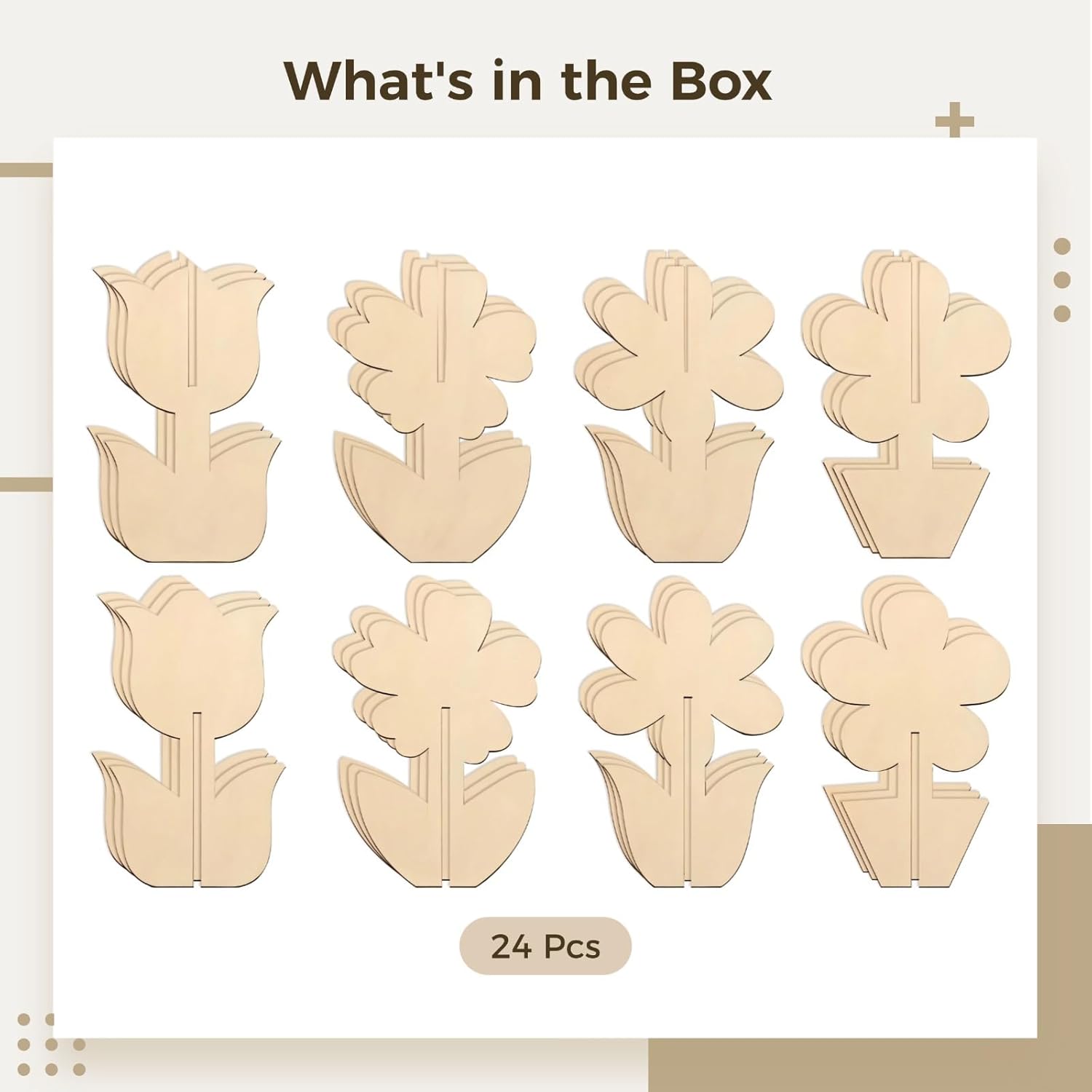 Perfetto per la creatività: stimola l'espressione artistica con ventiquattro ornamenti in legno a forma di fiore, ciascuno misura 10 cm di altezza e 5 cm di larghezza; progettato per bambini dai quattro agli otto anni per dipingere e adornare; migliora le capacità motorie e l'inventiva Kit fai da te coinvolgente: libera il potenziale fantasioso con tre disegni floreali unici, con otto pezzi in ogni modello; un'attività deliziosa e interattiva che promuove le abilità creative nei giovani Esperienza di pittura liscia: realizzato in legno di alta qualità, ogni pezzo presenta una superficie liscia su entrambi i lati per una facile pittura; facilita un'esperienza di lavorazione senza soluzione di continuità, ispirando i bambini a concentrarsi sulle loro opere d'arte Materiali durevoli: realizzati in legno sicuro e robusto, questi ornamenti sono adatti per i giovani avventurieri; la costruzione robusta assicura che i prodotti finiti resistano alla prova del tempo Tempo di creazione familiare: un'eccellente opportunità per creare con i bambini, progettare decorazioni floreali colorate insieme; fantastico per attività familiari, sessioni d'arte o celebrazioni; strumenti di pittura non inclusi