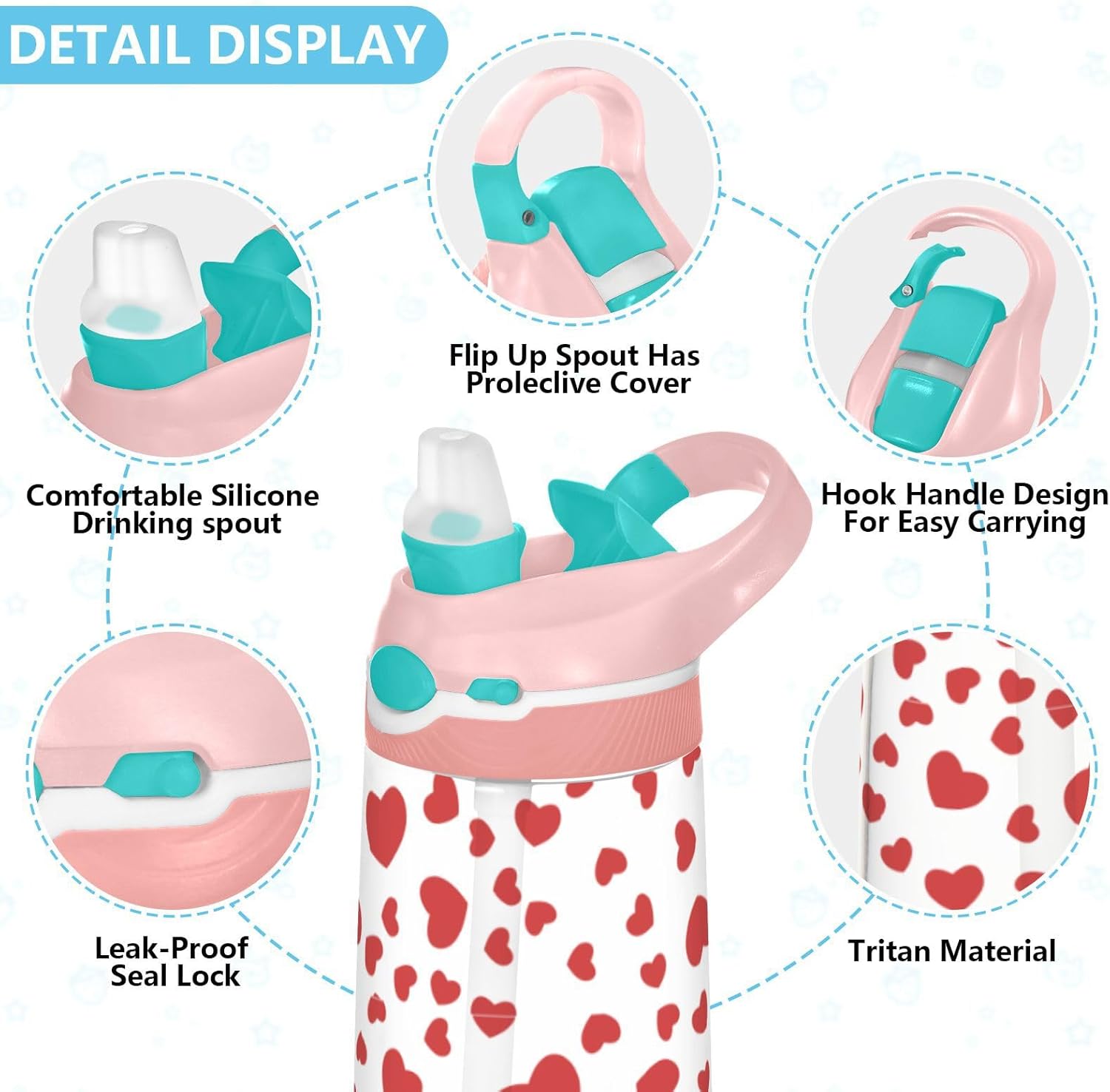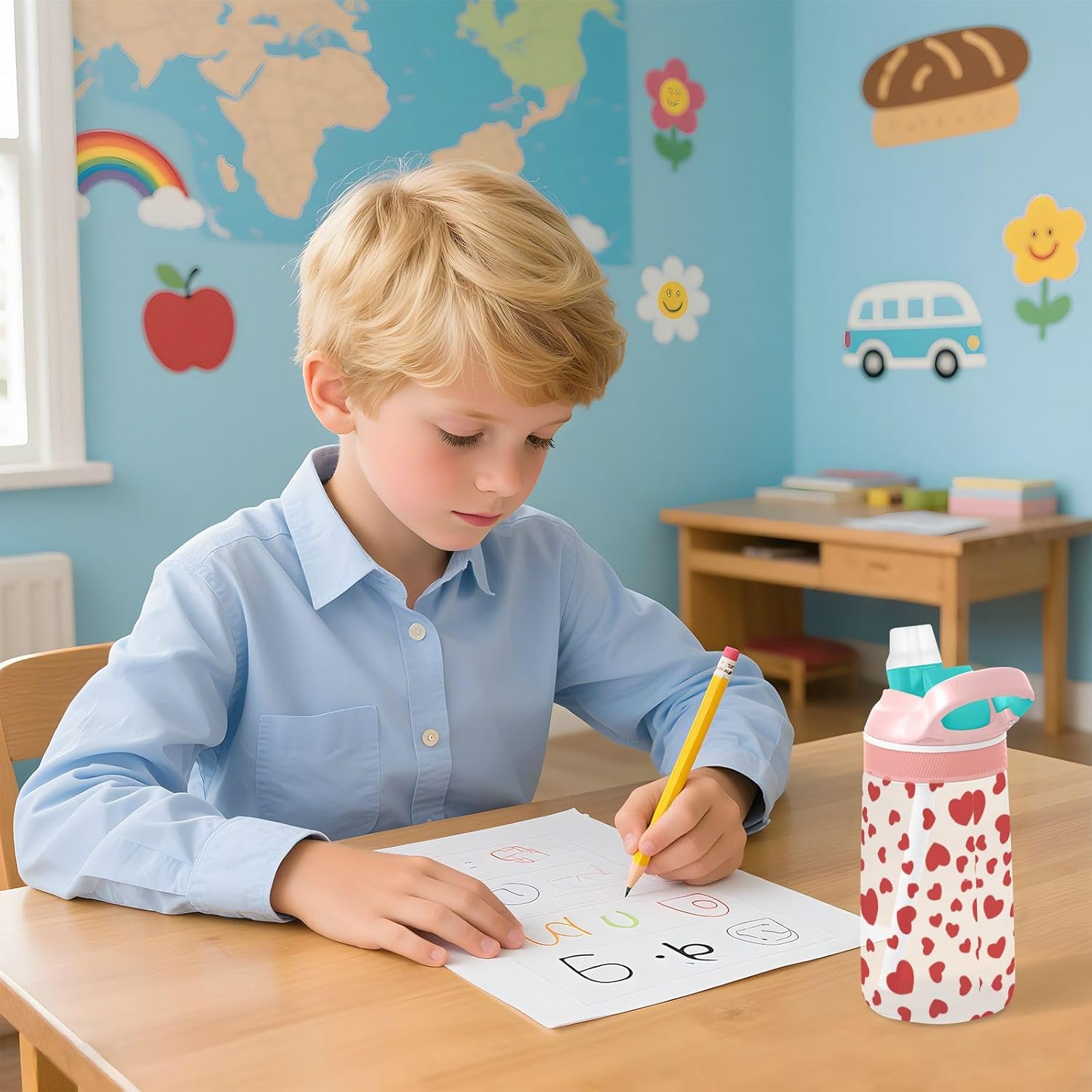 Materiali: questa borraccia sportiva da 480 ml (16 cm di lunghezza, 7,5 cm di larghezza) combina tritan e silicone alimentare. per la pratica sportiva o i giorni scolastici, è sicuro per i bambini da usare tutti i giorni. Non adatto a bambini di età inferiore ai 3 anni! Design portatile: l'ampio manico è facile da impugnare per i bambini e il gancio del coperchio consente di attaccare la borraccia sportiva agli zaini. Niente più bottiglie perse durante le gite sul campo o le attività dopo la scuola. Funzionamento con una sola mano: il becco d'anatra si adatta alla bocca dei bambini, con una copertura antipolvere. L'interruttore a pulsante della borraccia per bambini è semplice da usare con una sola mano, in modo che i bambini possano bere mentre tengono una palla o un notebook. Previene le perdite: il blocco a pulsante blocca l'apertura accidentale del becco d'anatra. Mantiene le bevande all'interno, proteggendo zaini e vestiti durante i pendolari o il gioco. Facile da pulire: tutte le parti della borraccia sono rimovibili per una pulizia accurata senza sporcare. Usa un detergente neutro e acqua calda: semplice per i genitori mantenere la pulizia per l'uso quotidiano.