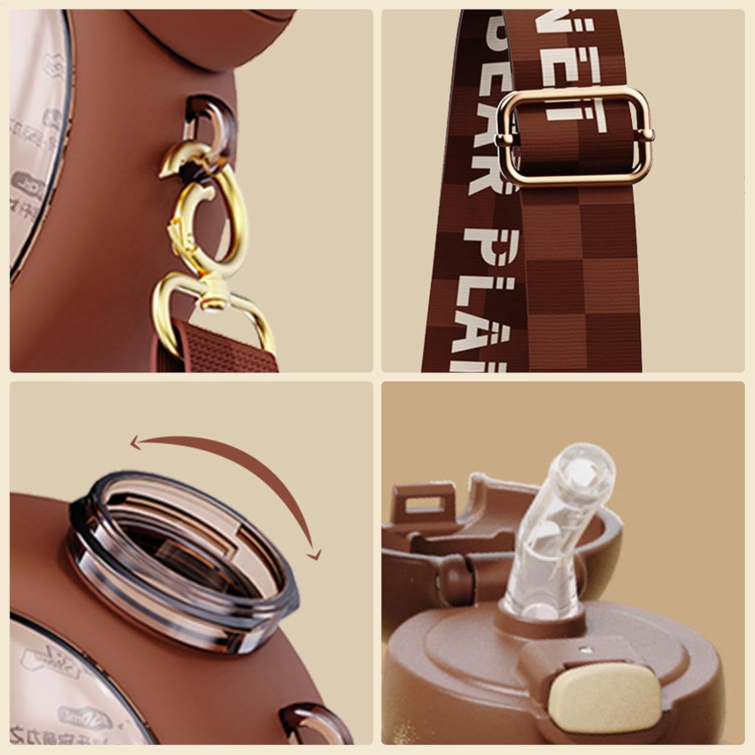 Esperienza di bere senza sforzo: questa bottiglia d'acqua presenta un design con apertura a un coperchio, che rende l'apertura e la chiusura facile e conveniente. Non devi preoccuparti della noiosa rotazione del coperchio. Basta premere e bere gustosamente. Indossalo a tuo piacimento: questa borraccia ha una cinghia che puoi regolare in base alle tue esigenze individuali. Puoi scegliere come indossarlo, ad es. sulla spalla, intorno al collo o allo zaino. È conveniente portarlo ovunque. Incantevole e creativa bottiglia di orso: questa bottiglia d'acqua ti incanterà con la sua forma creativa a forma di orso. Ha una forma tridimensionale che dovrebbe darti la sensazione di tenere un coccolone in mano. Corpo della coppa Tritans: è realizzato in Tritan inodore e silicone sicuro, che è sia durevole che ecologico. L'ugello e la cannuccia sono a prova di perdite e facili da pulire, rendendo la tua esperienza di bere ancora più piacevole. 750 ml Capacità: questa bottiglia d'acqua per orsi ha una capacità di 750 ml, abbastanza per placare la sete tutto il giorno. Per il riempimento, puoi scegliere l'acqua o la tua bevanda preferita. È compatto e facile da trasportare.